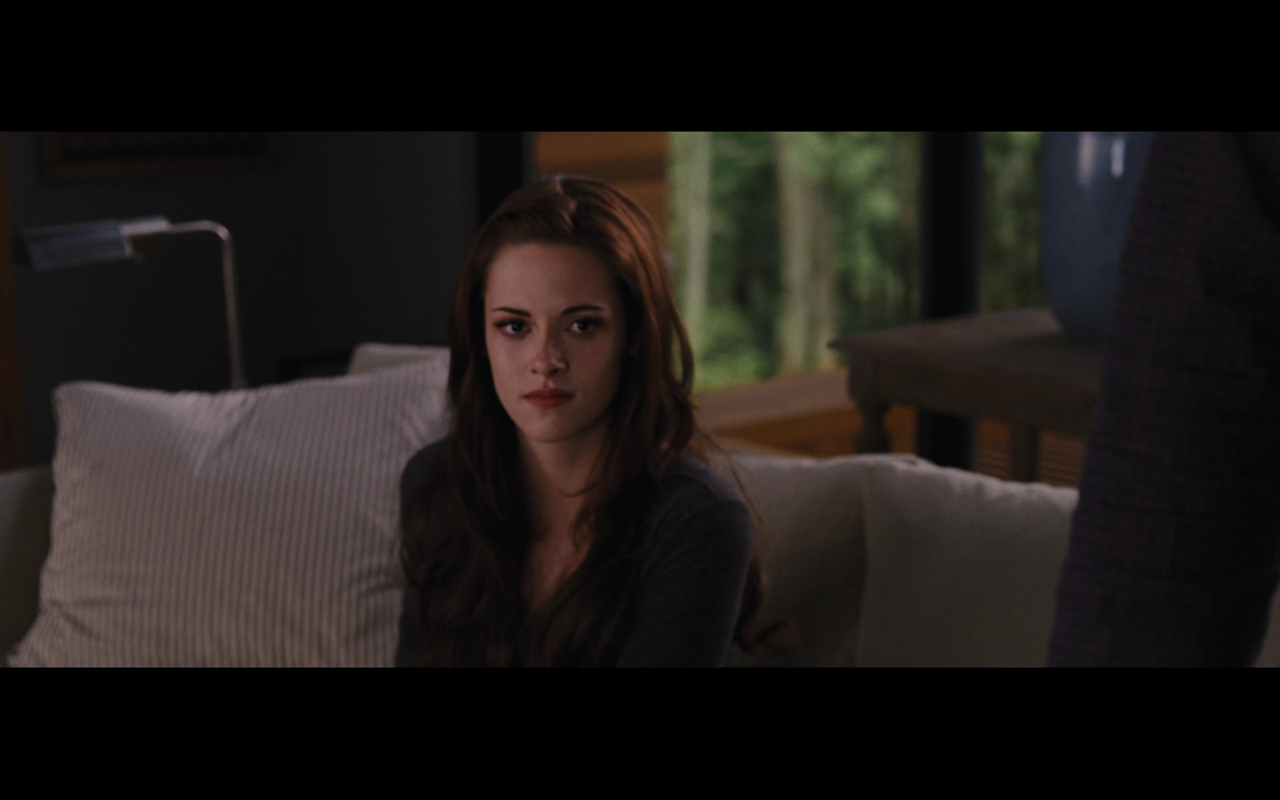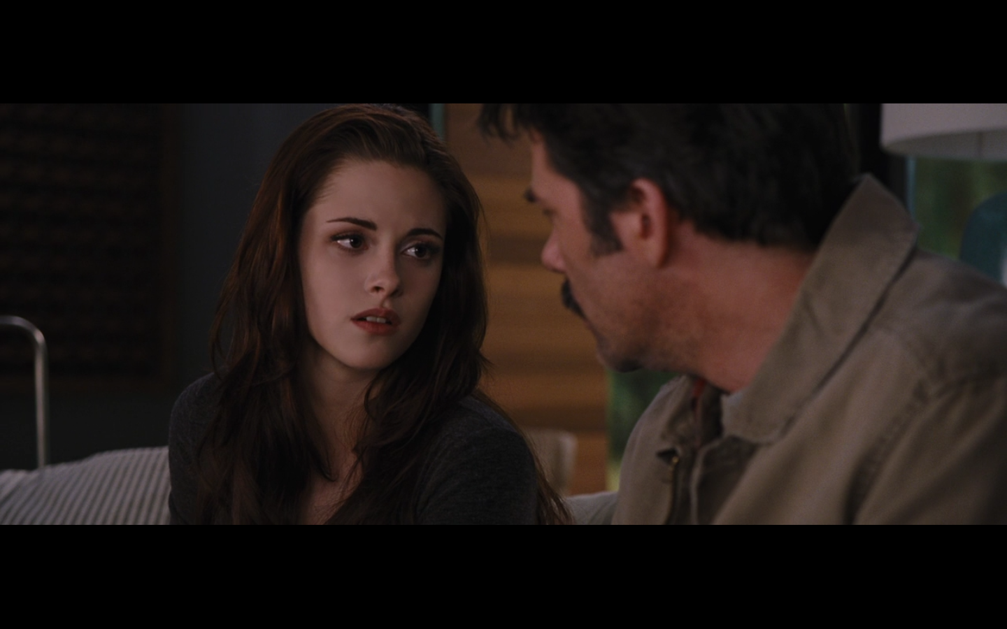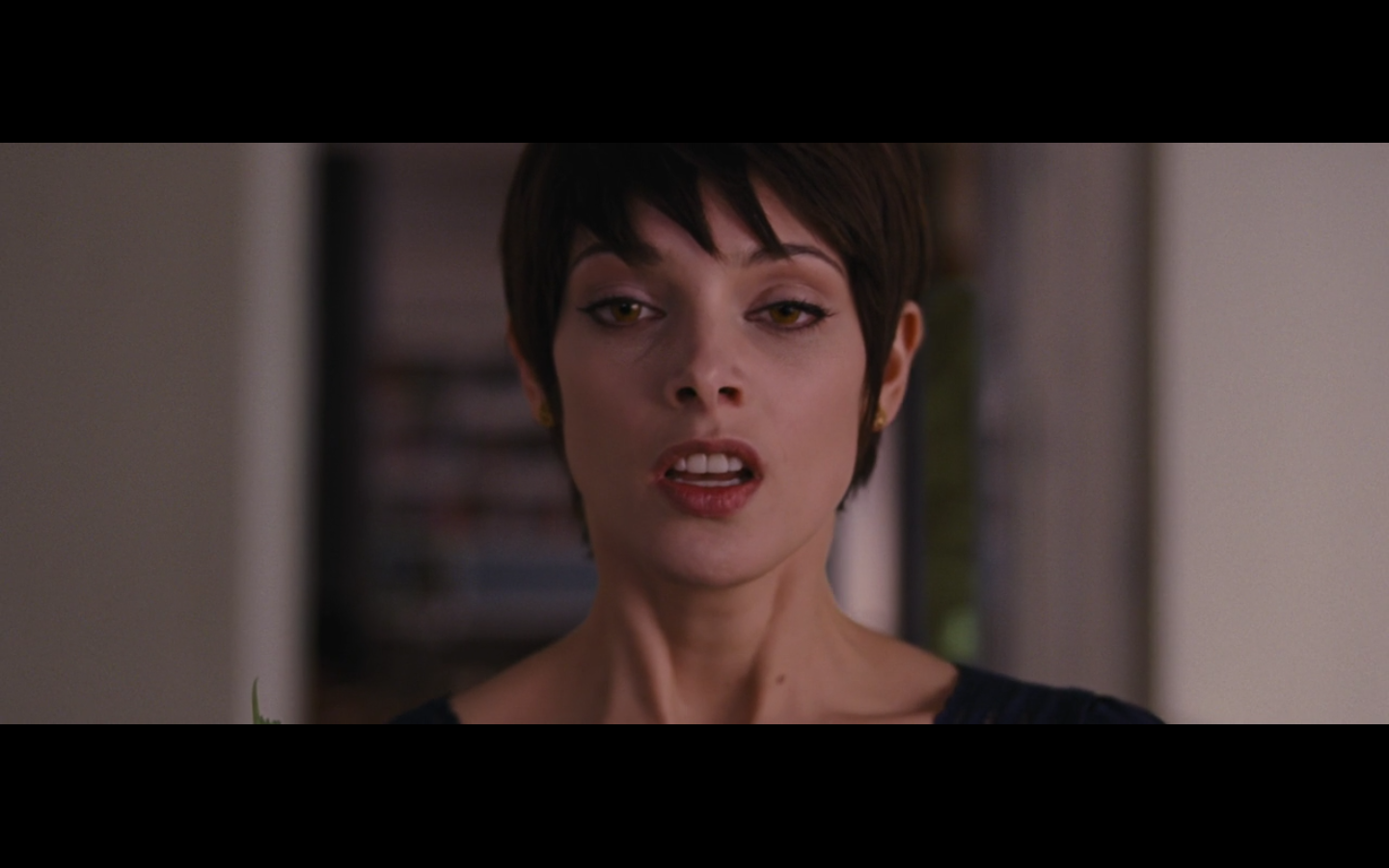There’s something interesting to be discussed here. When you change into a vampire, what decides your body makeup and all that shit? That is to say, what decides what shape you are, what your fat content is, and what your overall aesthetic ends up being? Because Bella was in rough shape when she was turned — she was emaciated and gaunt, pretty much on the verge of death. But when she changed, she got her muscle tone and fat back. Her hair got fixed and she ended up looking the way she does now. But it would be a little arbitrary to suggest that the transformation process makes you look the way you looked a little while BEFORE the transformation, so there’s really no reason why she shouldn’t have looked the way she was when she was changed.