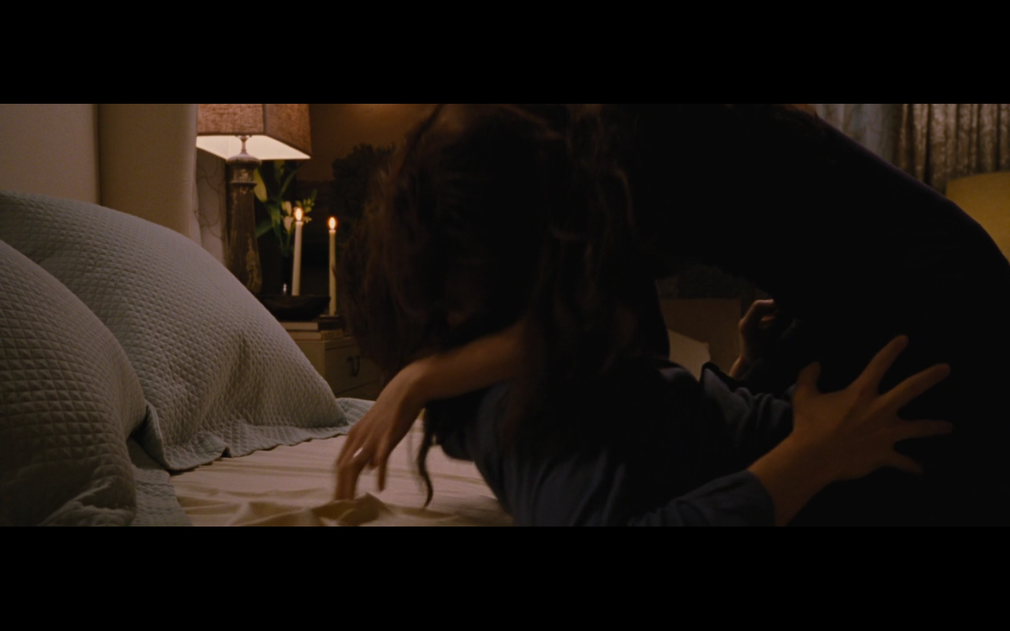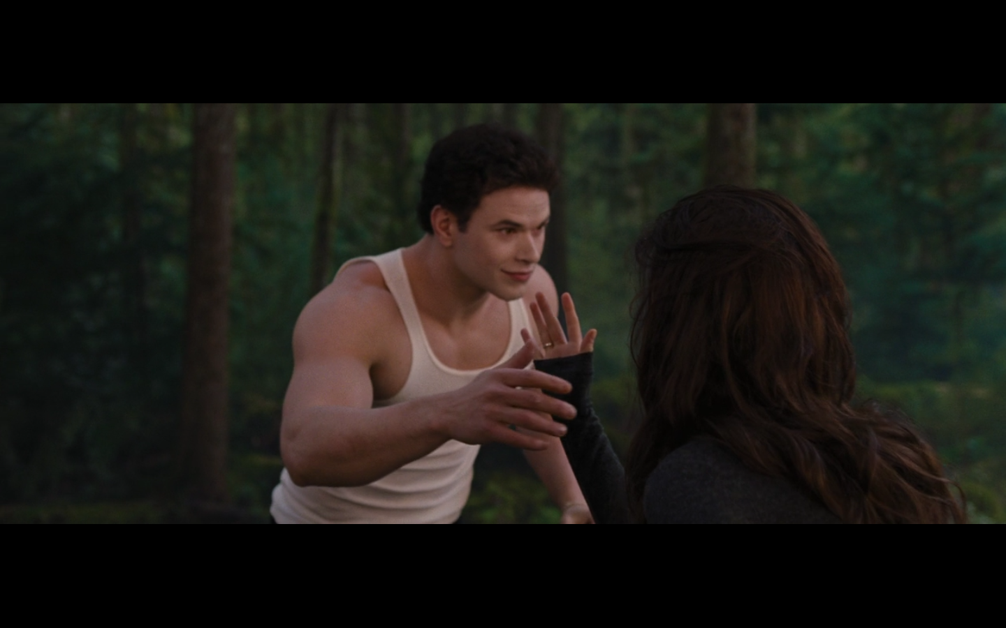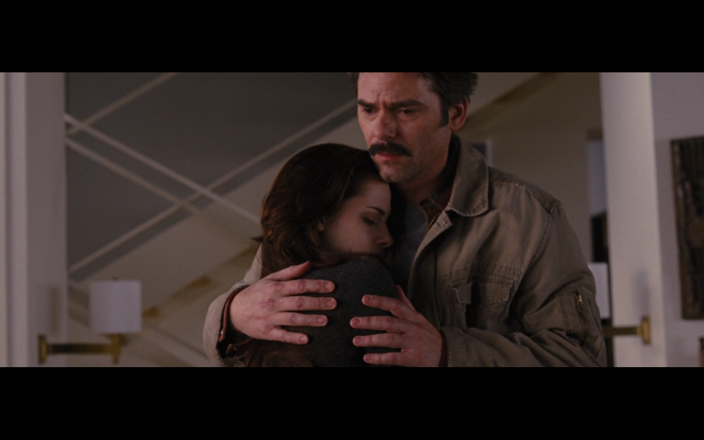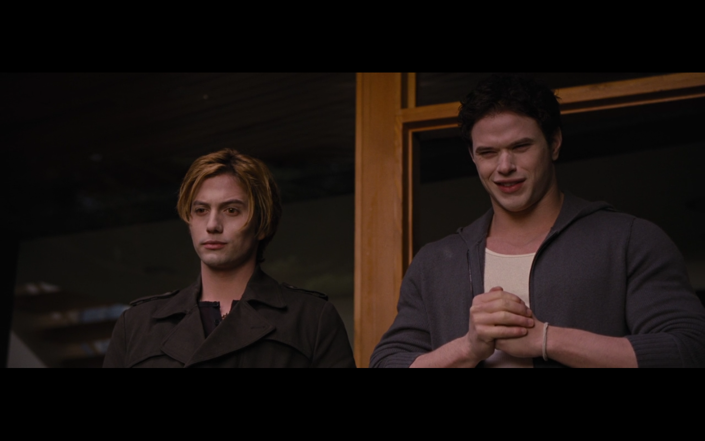 There’s something interesting to be discussed here. When you change into a vampire, what decides your body makeup and all that shit? That is to say, what decides what shape you are, what your fat content is, and what your overall aesthetic ends up being? Because Bella was in rough shape when she was turned — she was emaciated and gaunt, pretty much on the verge of death. But when she changed, she got her muscle tone and fat back. Her hair got fixed and she ended up looking the way she does now. But it would be a little arbitrary to suggest that the transformation process makes you look the way you looked a little while BEFORE the transformation, so there’s really no reason why she shouldn’t have looked the way she was when she was changed.
