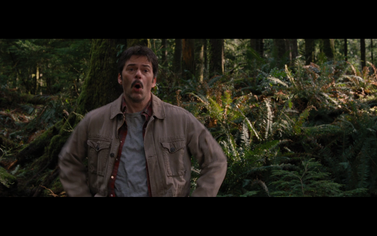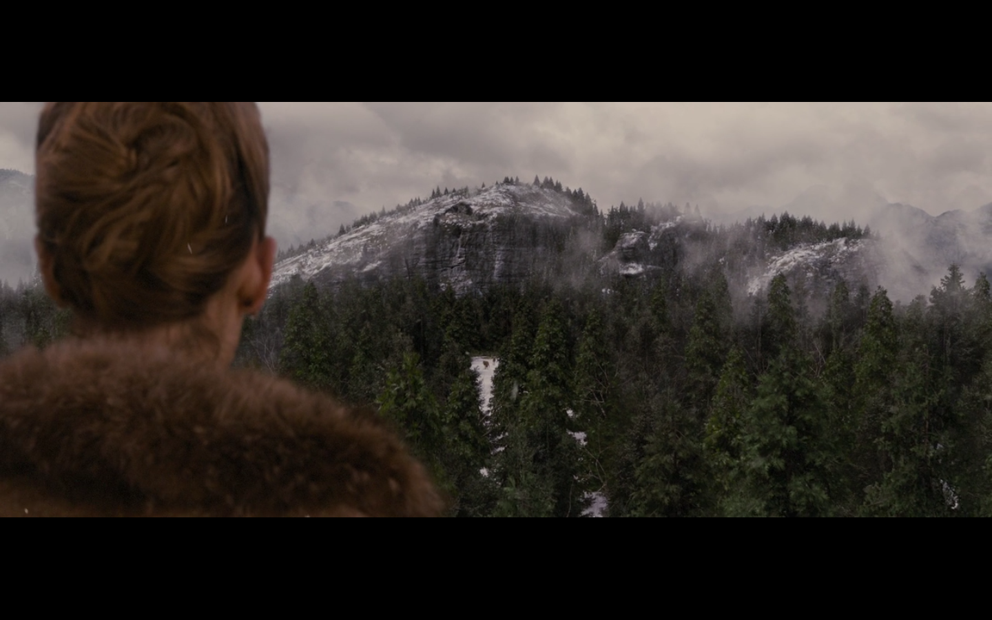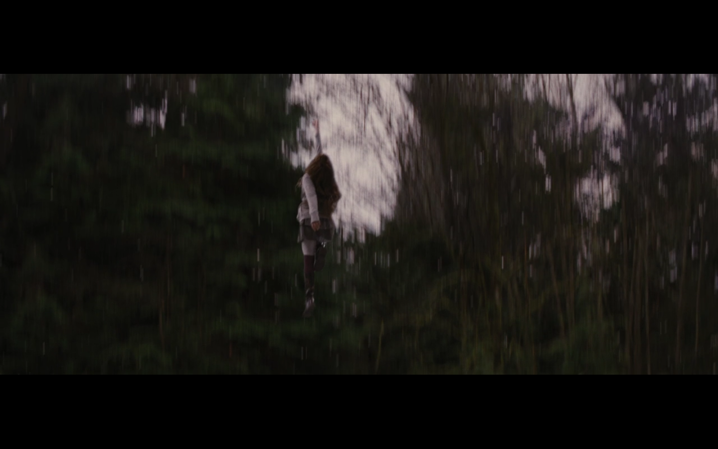 Just to recap — she goes running through the woods, she jumps around on trees, she leaps over a waterfall, climbs up a cliff face, tally ho’s off that cliff face, tackles a mountain lion — but the dress doesn’t get ripped until he rips it.
