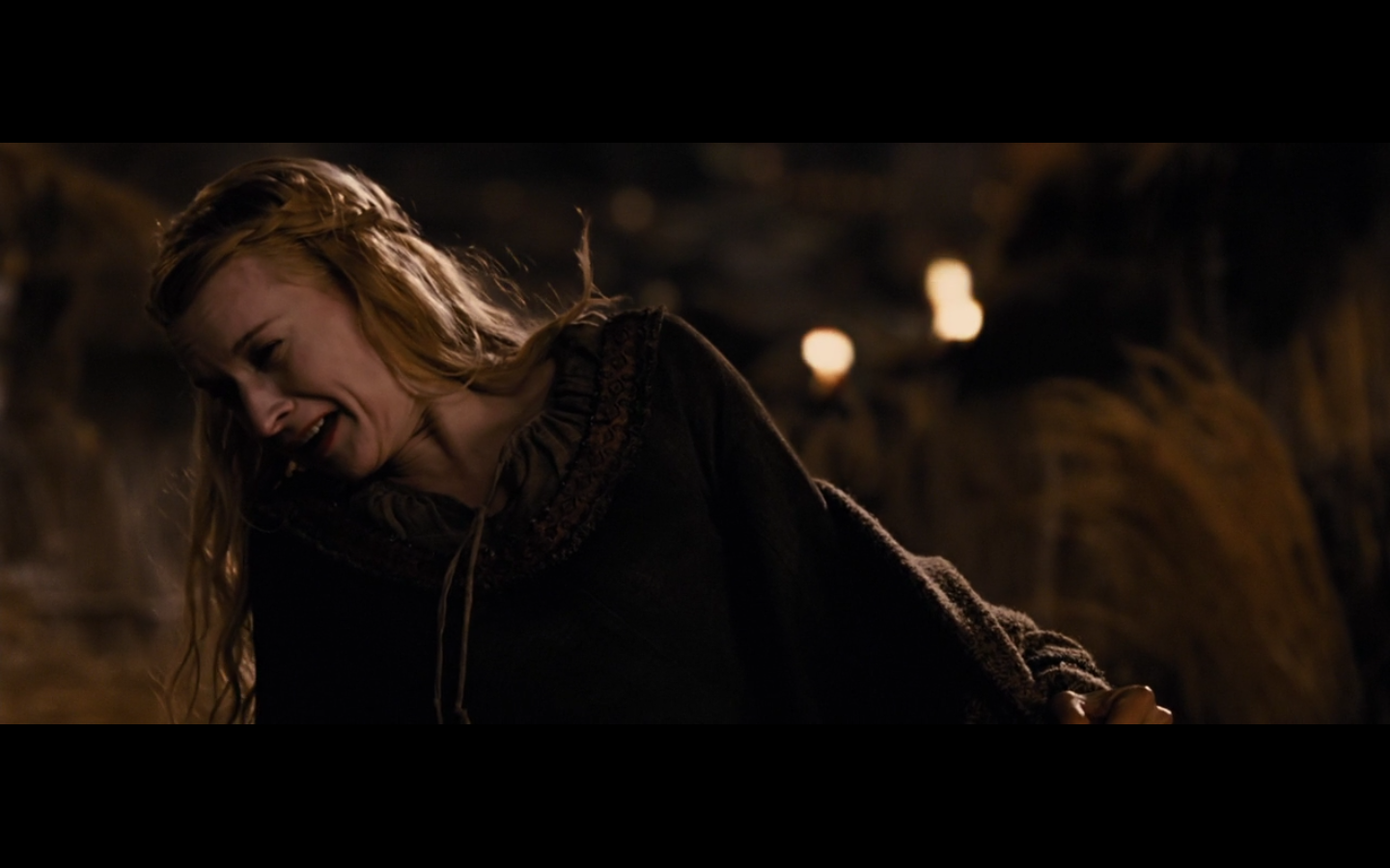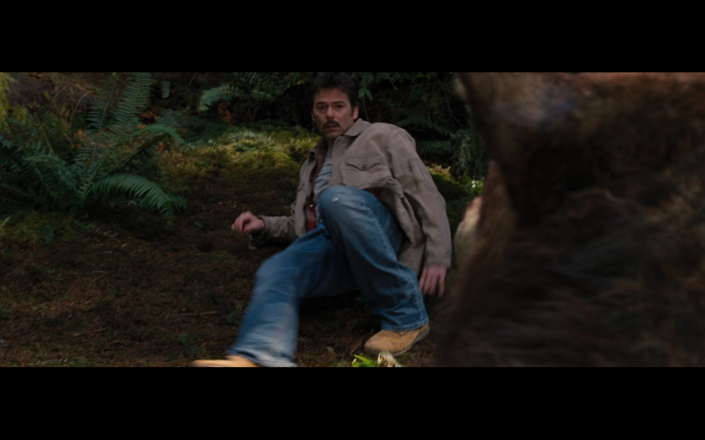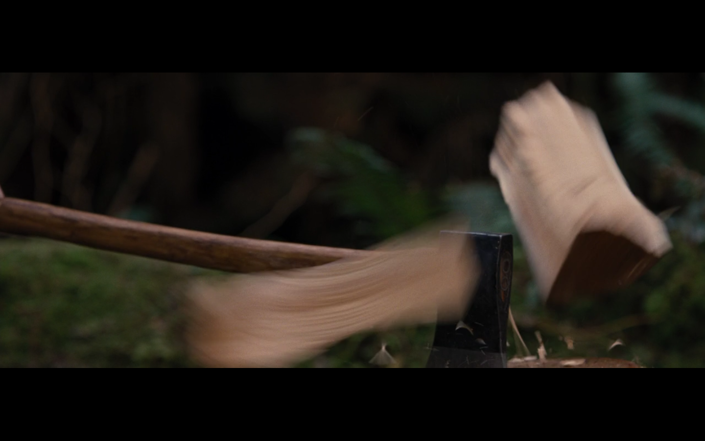 Just to recap — she goes running through the woods, she jumps around on trees, she leaps over a waterfall, climbs up a cliff face, tally ho’s off that cliff face, tackles a mountain lion — but the dress doesn’t get ripped until he rips it.