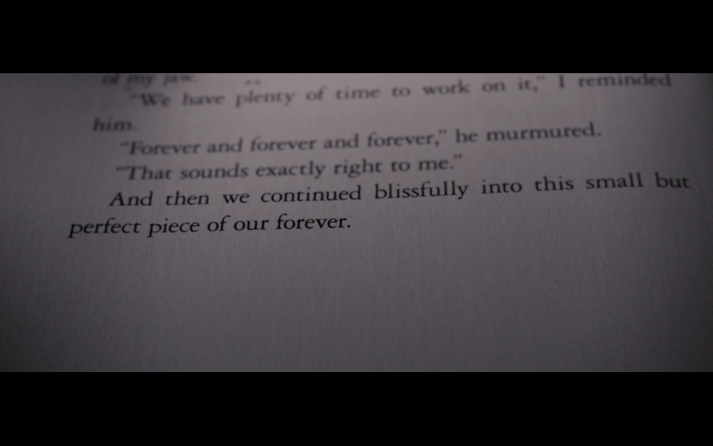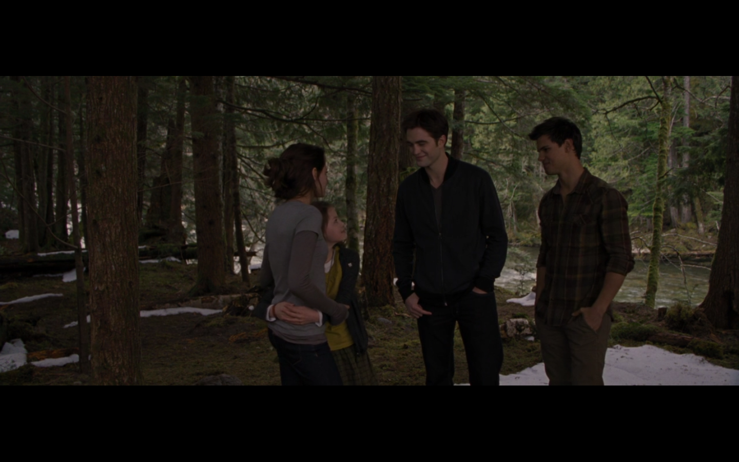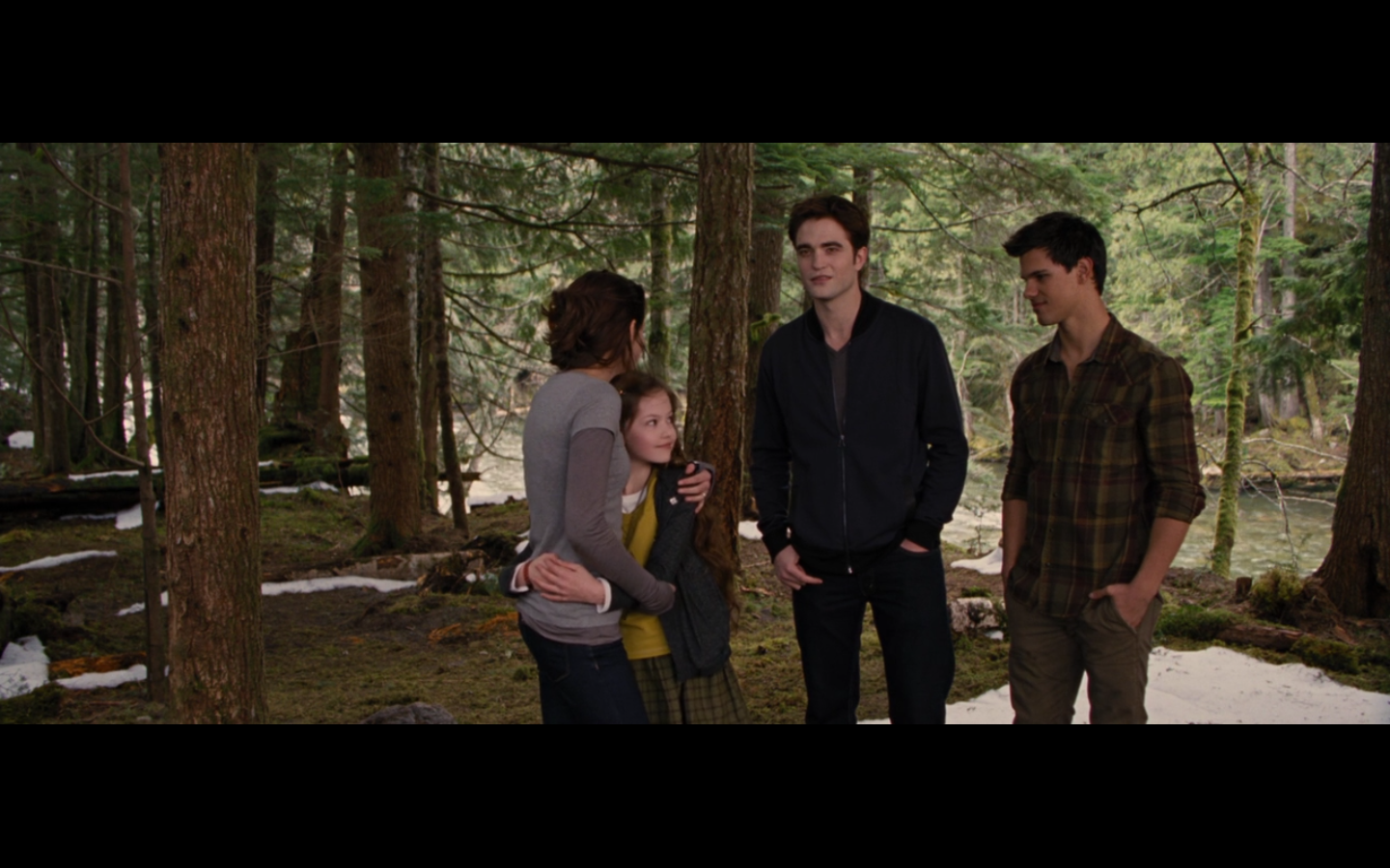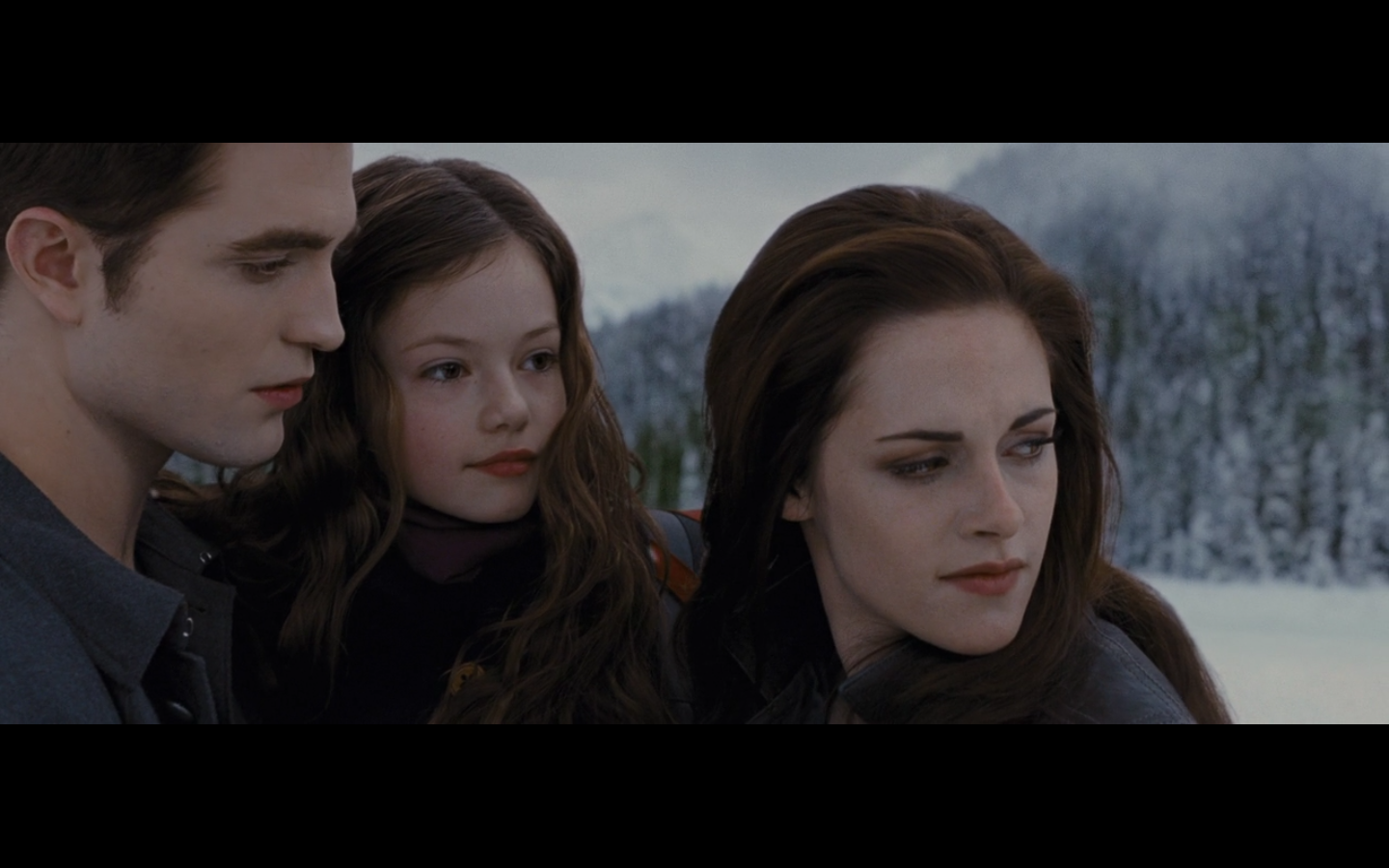Wait, so Edward’s 17, Bella’s 18, but Jacob will have continued aging. So in terms of maturity, he’s the most mature here, cause this is when Renesmee’s grown up. So 5 years from now, at least? So Jacob’s like 25. And Renesmee is young, but her maturity is now on par with her parents’. Isn’t that weird? In terms of knowledge and shit, she’s younger, but in terms of maturity, they’re on the same level.