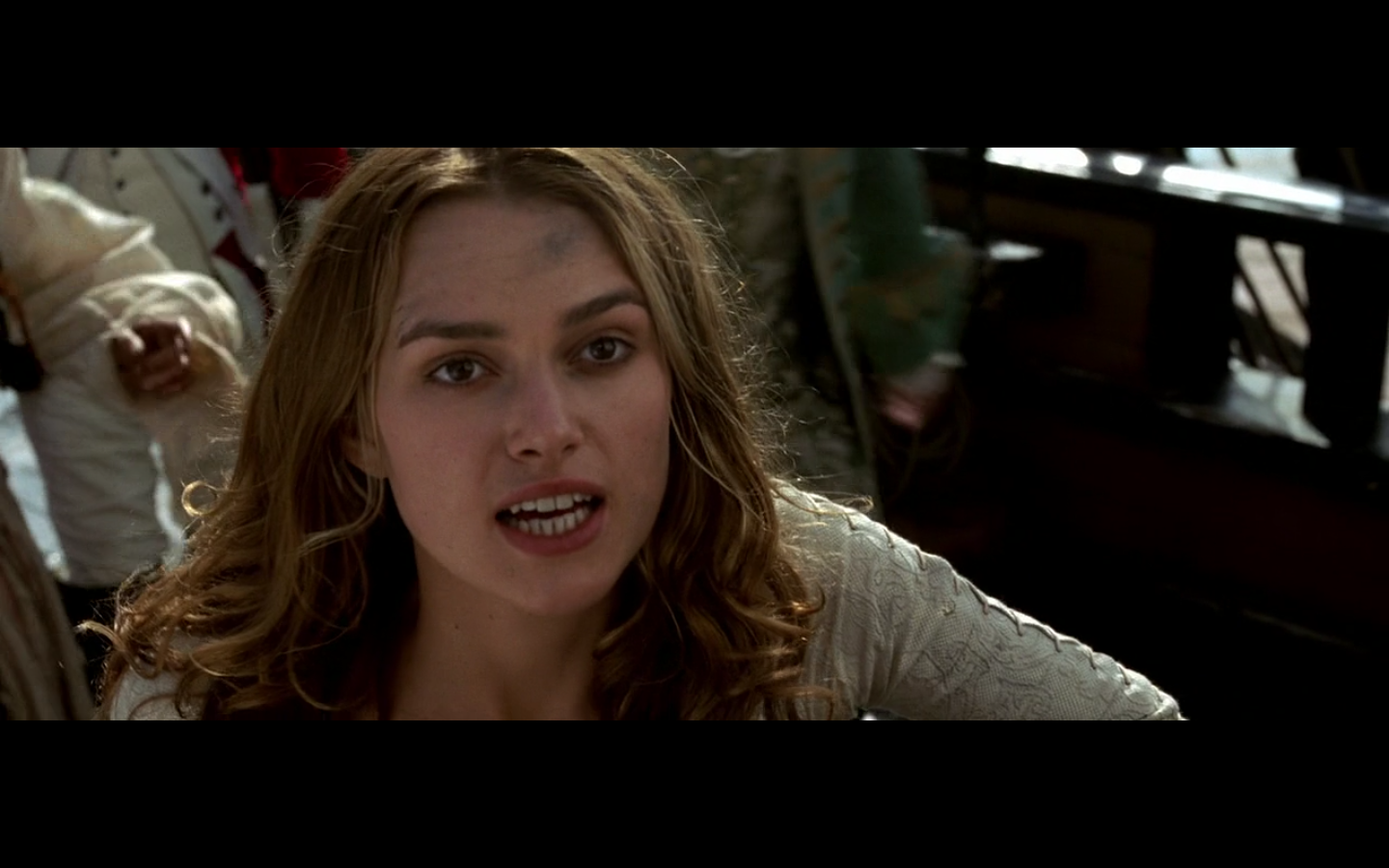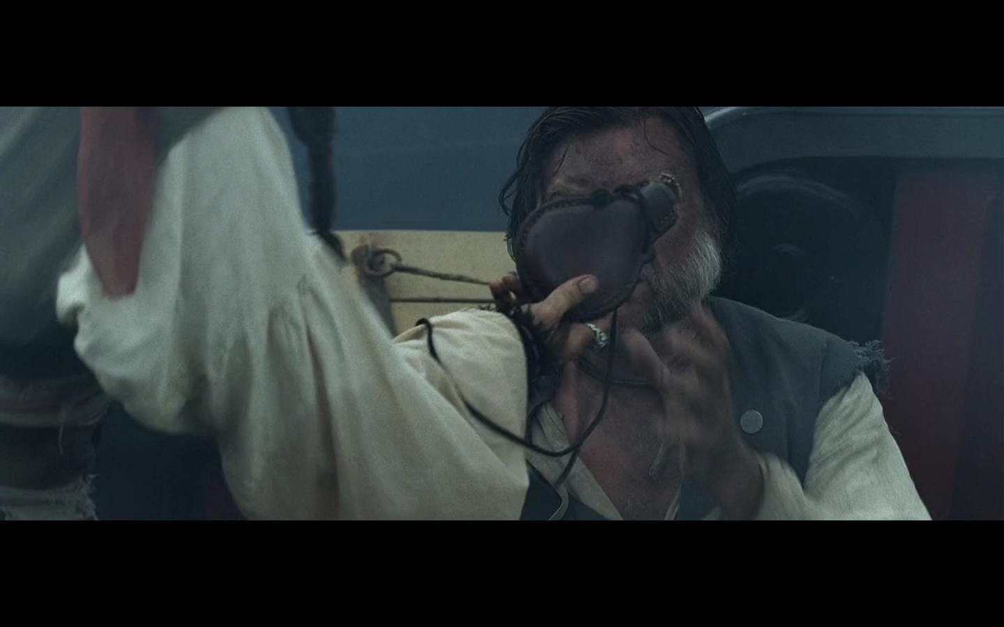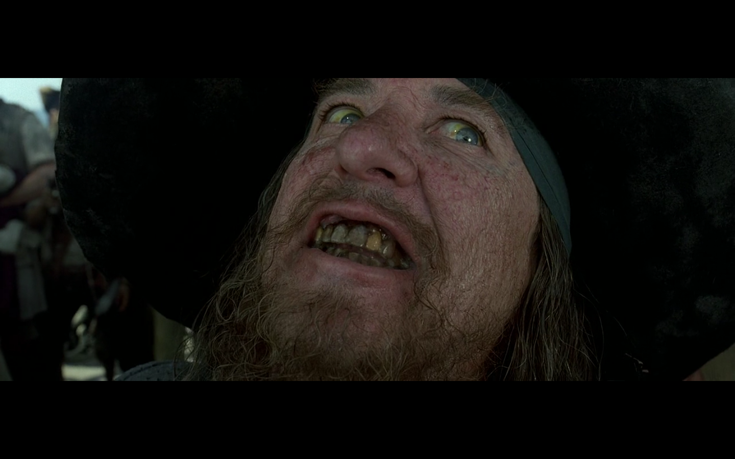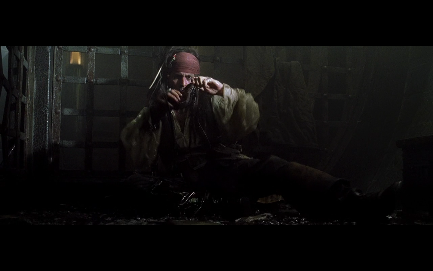 That’s a pretty intense moment from Barbossa. He’s just staring at this apple for a few seconds. “I wanna eat you, but I can’t. You think you’re better than me? Fuck you, apple, I still have power over you. How you like salt water? There you go.”
