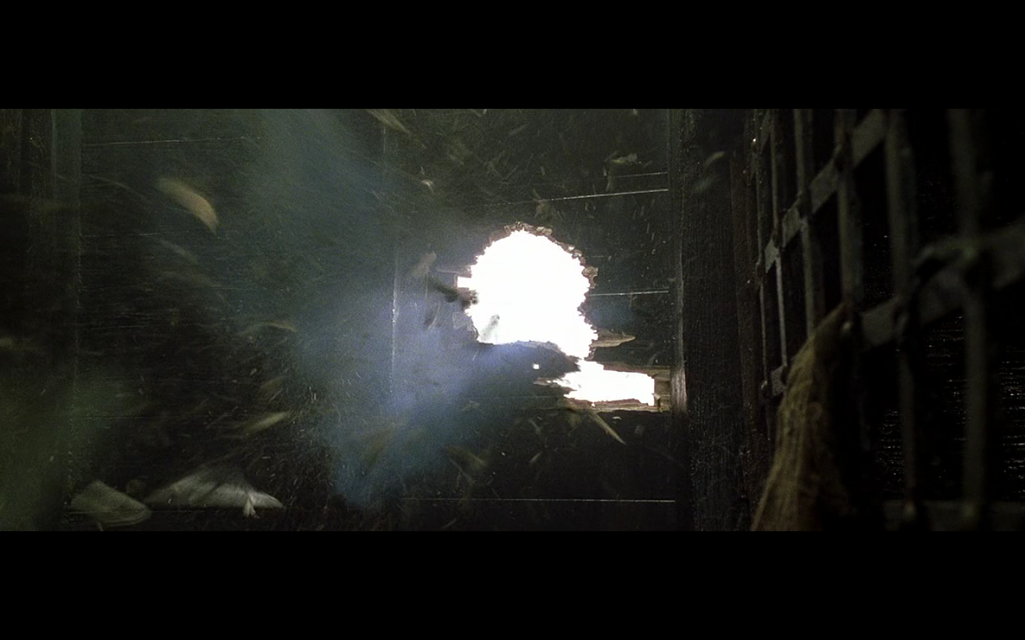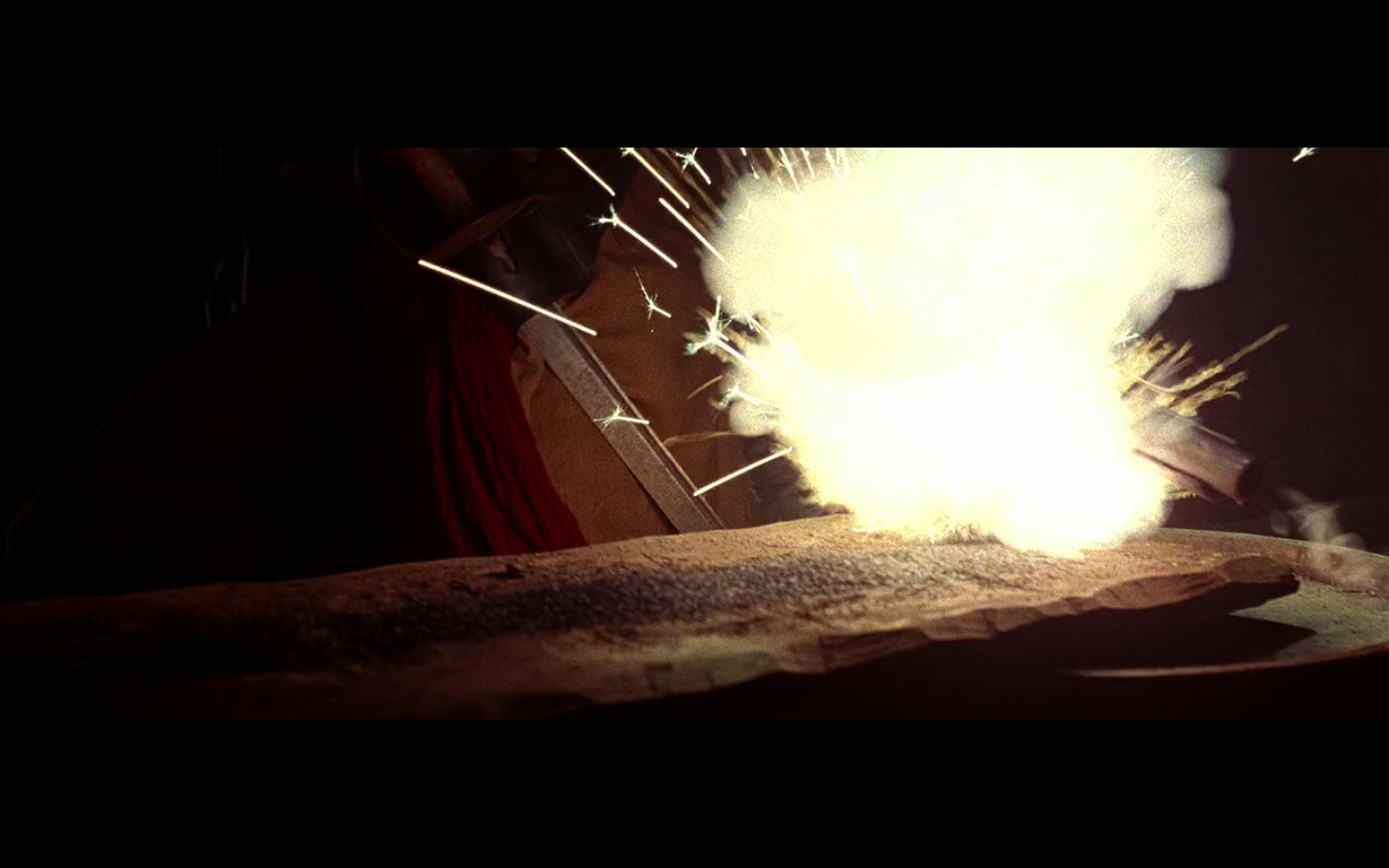 This shot amuses me, because I think about how they got it, which is — “All right, you two look into the camera and give mean faces, and we’ll track back.” And they literally called action, they made mean faces, and the camera pulled back for about four seconds, and they called cut.