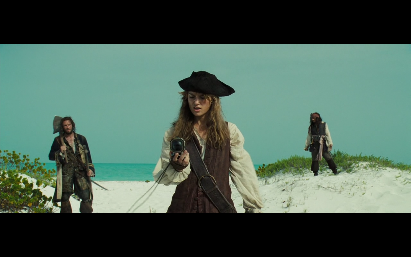 Somebody’s gotta row. And then there’s Jack. And you know Keira’s going cause she goes everywhere. Norrington has been bossy this whole time — a weird combination of bossy and submissive that I really enjoy, actually — so it would make sense that he’d jump in the boat and be ready to go.