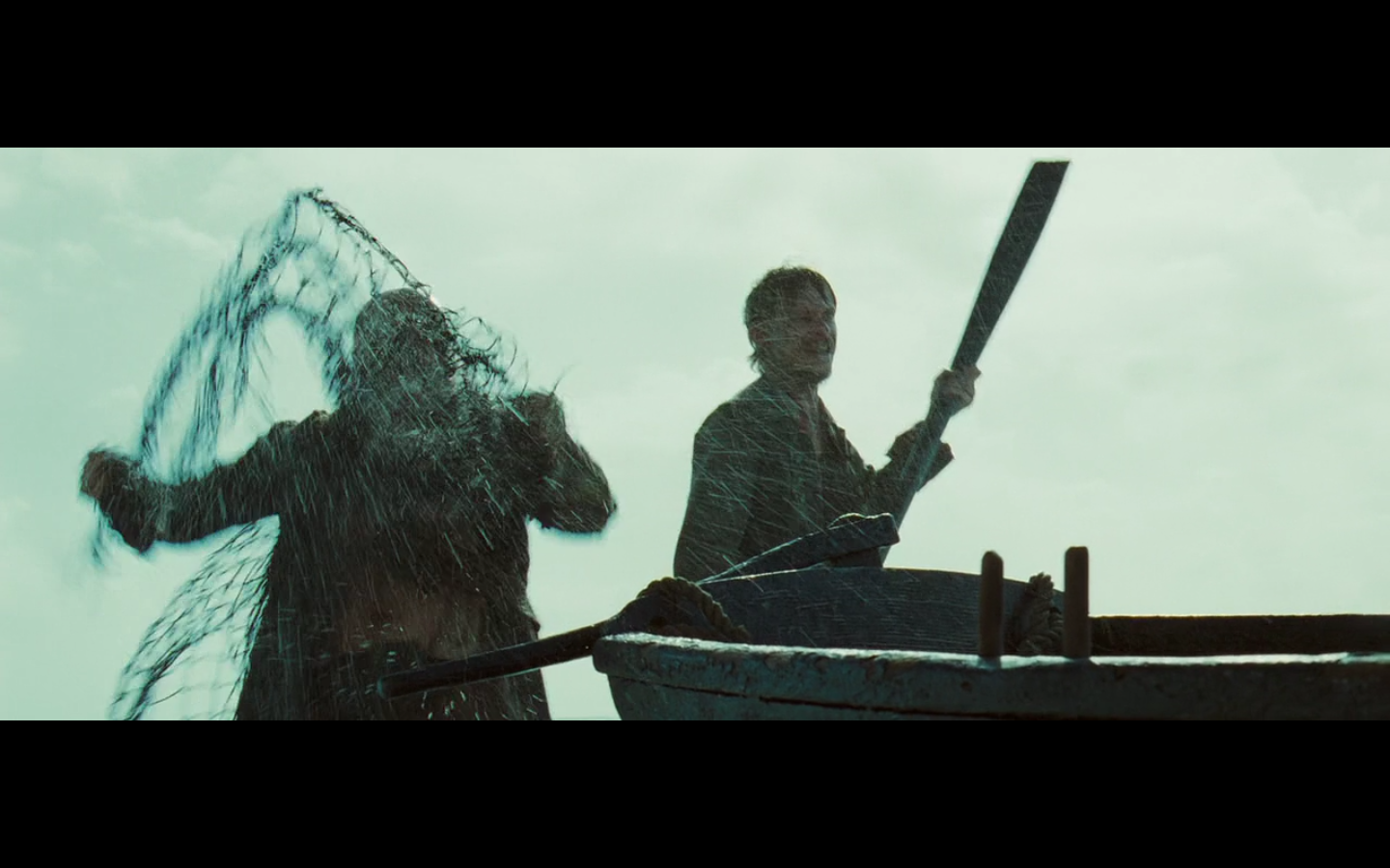 This might be the shot of the movie. Brilliantly conceived. Clearly a CGI mask with the wave, but honestly, it still works when you see it in real time. So I’ll give them a pass. It’s a great shot.