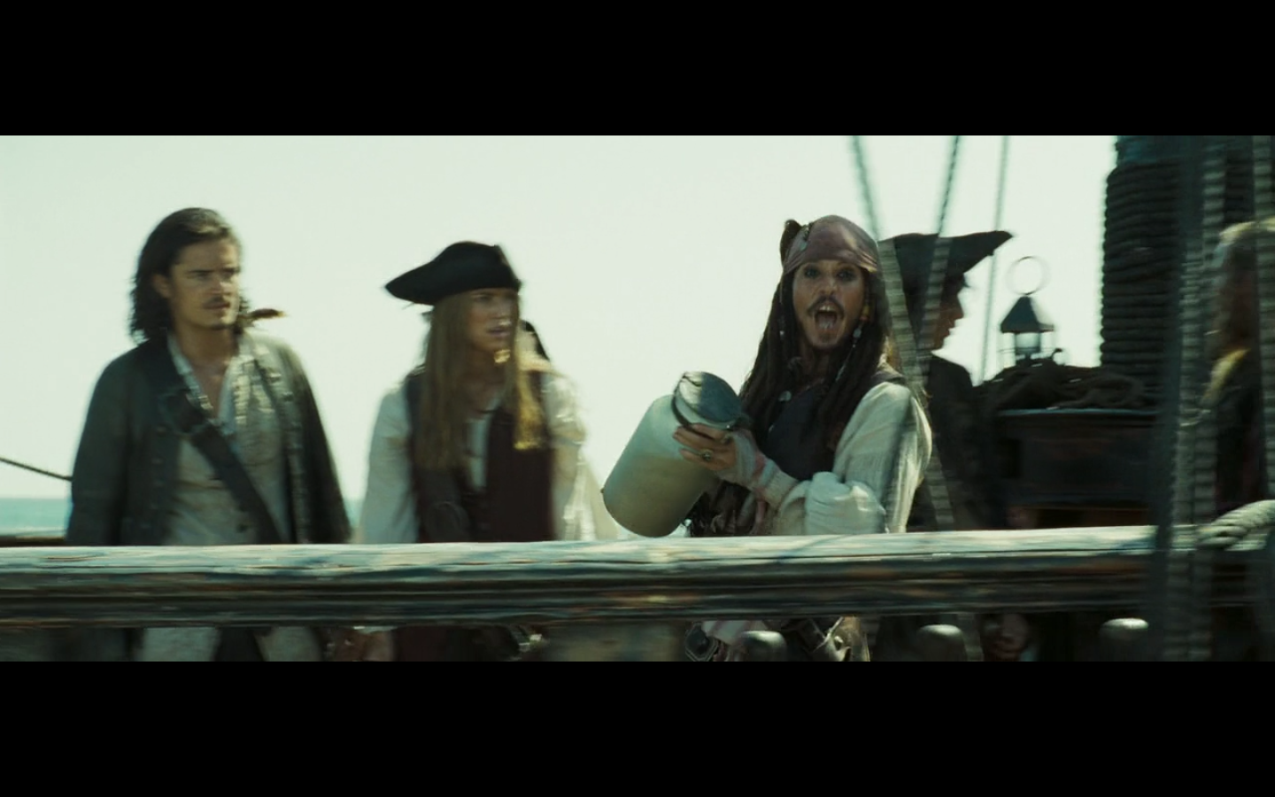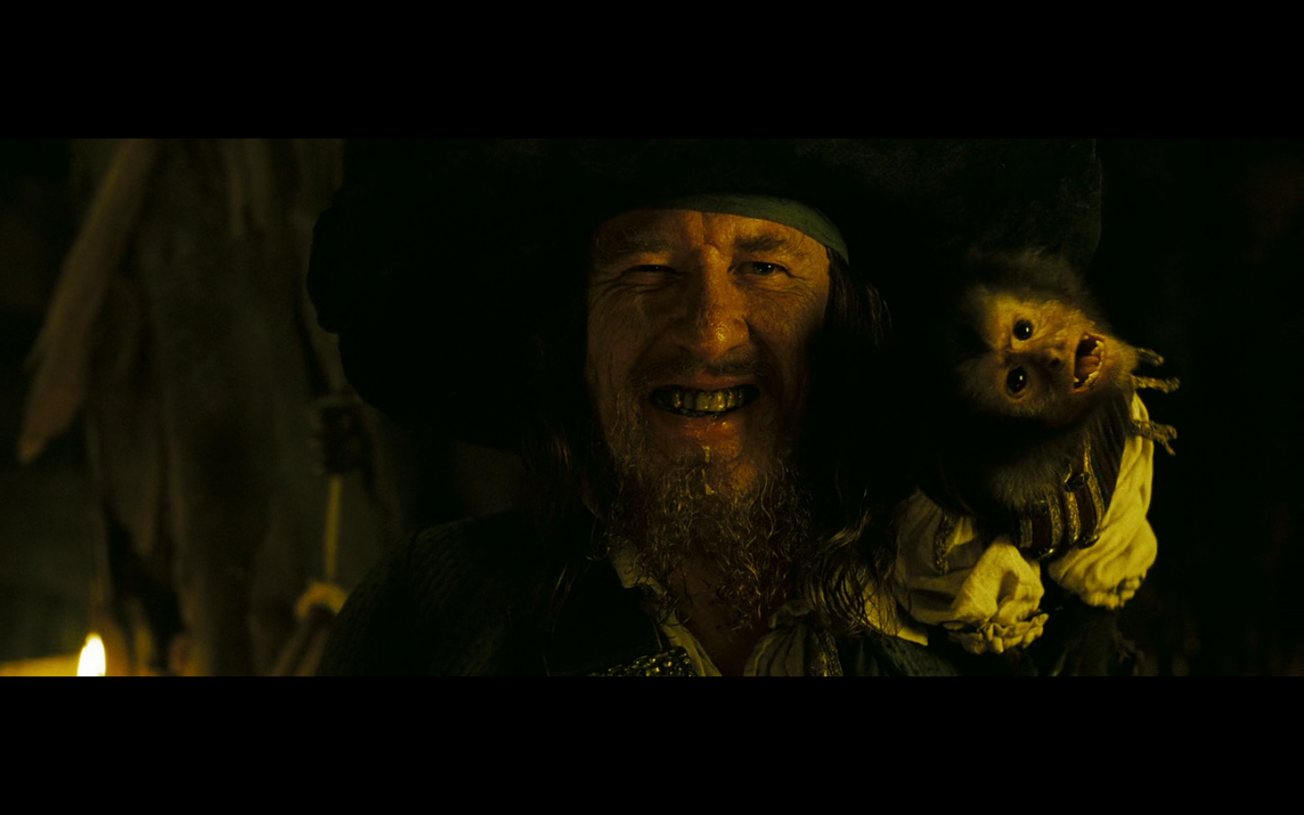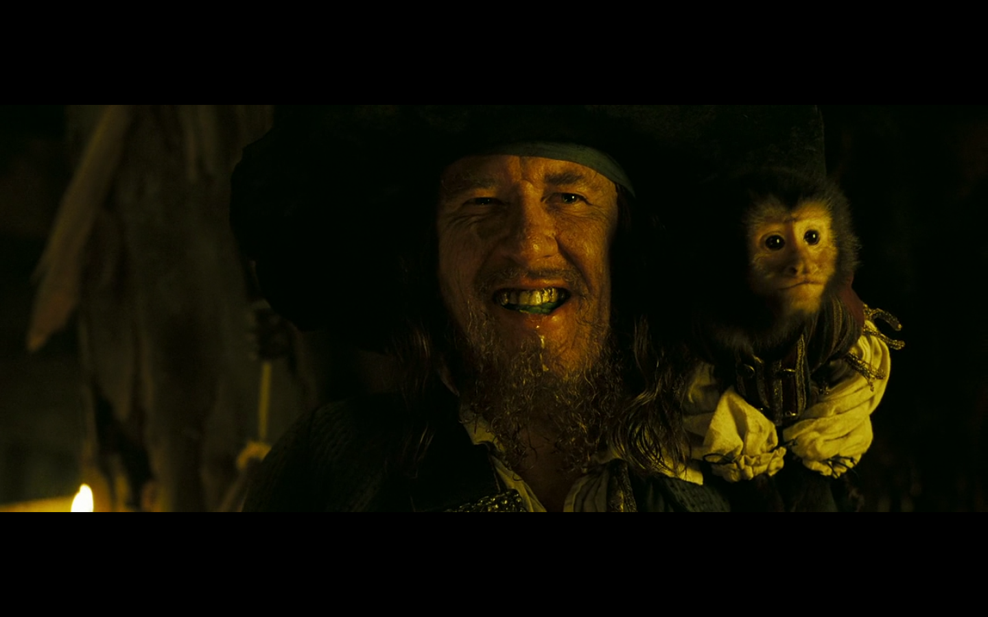 Barbossa is cool, though. And he’s got one of those apples. And the monkey was already here.