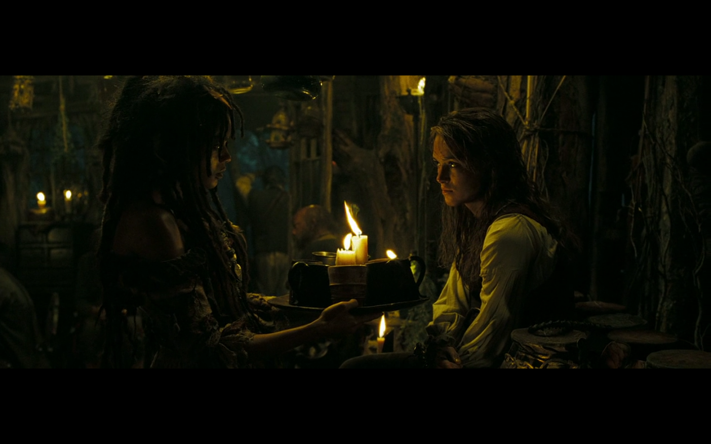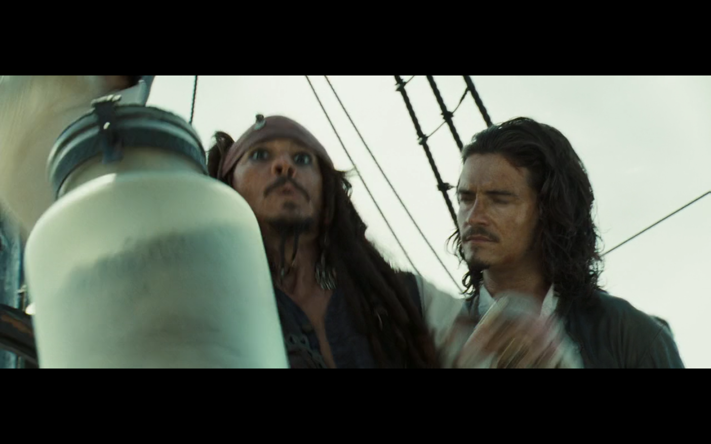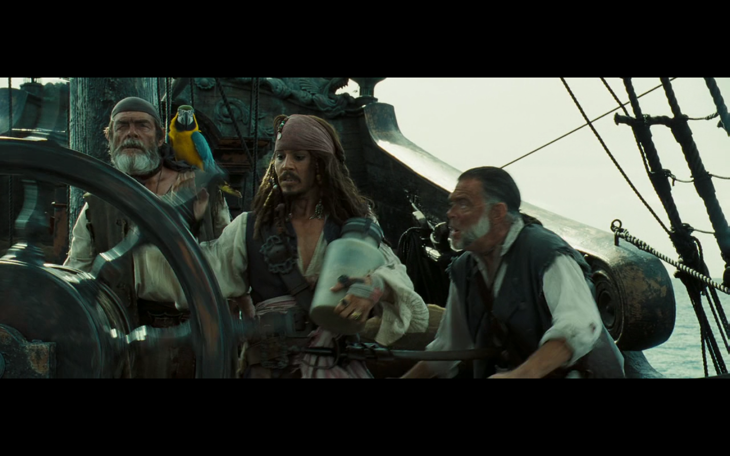 Barbossa is cool, though. And he’s got one of those apples. And the monkey was already here.