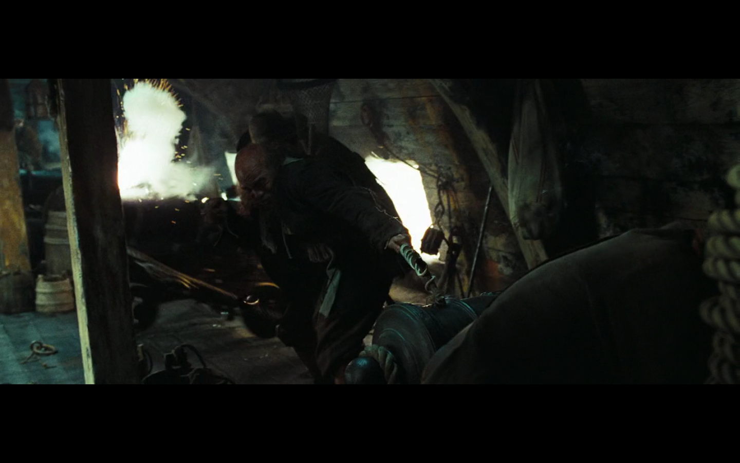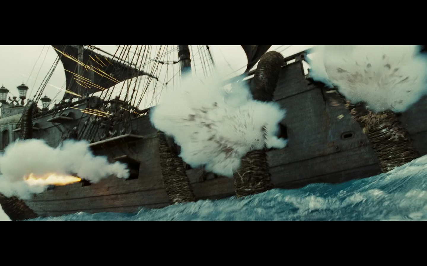 Shouldn’t the people firing the cannons KNOW whether to fire or not? I mean, look at this one firing off. It’s not even CLOSE to the right direction. An order to fire should only apply to those cannons that are within 10 degrees of the correct firing angle. Otherwise, the guys on the other side of the ship may as well start firing.