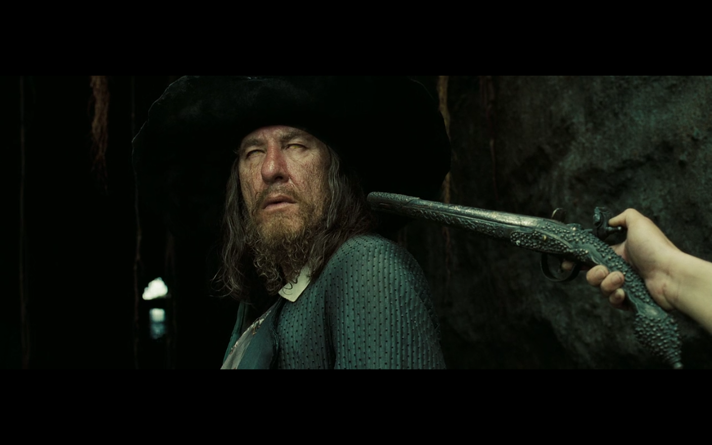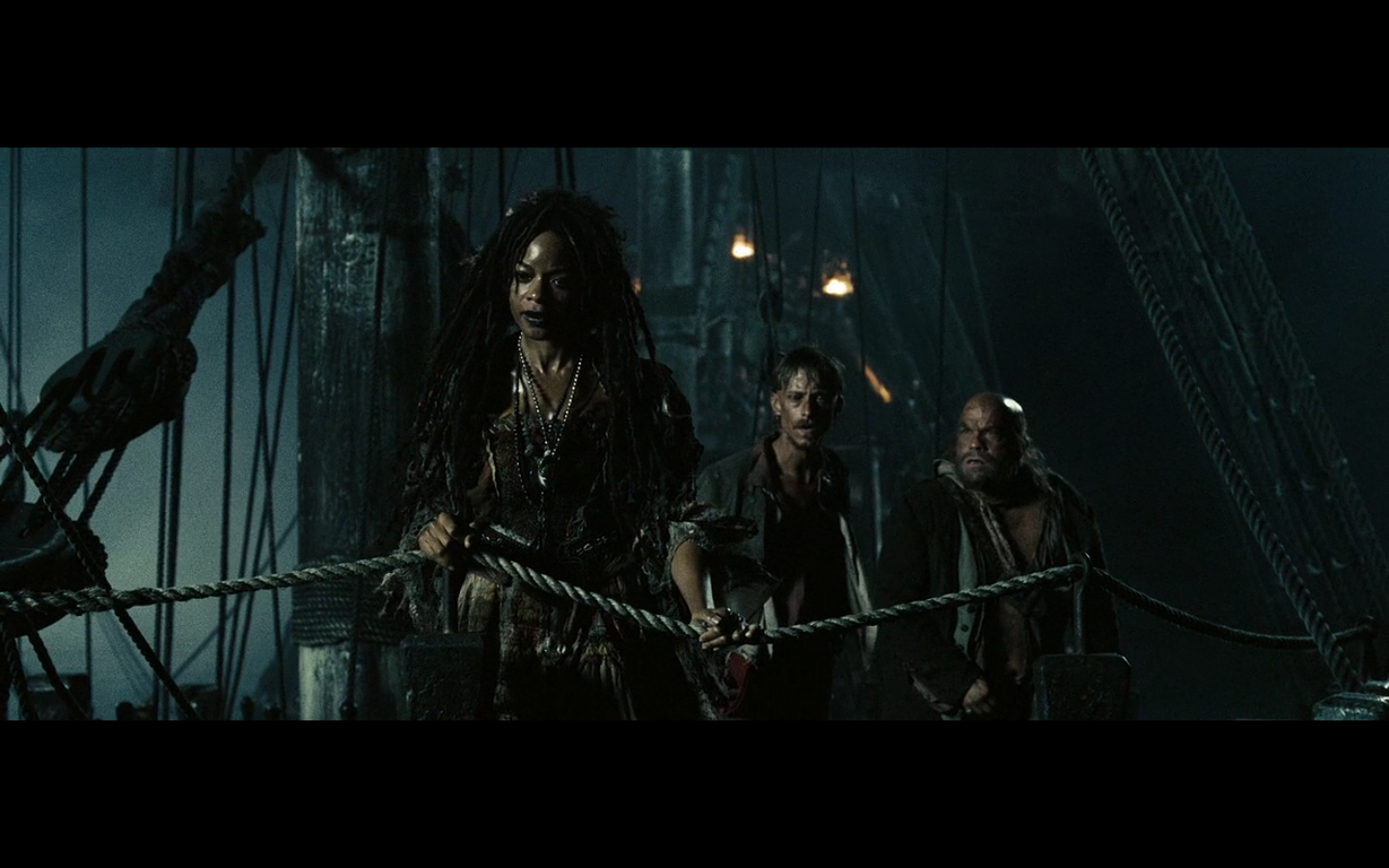 Oh, wait. She’s Calypso. That’s what this is. Who else could she be? She’s got voodoo powers, she has the same heart necklace, and she’s getting all wet thinking about the way Davy Jones used to be. It’s her. No reveal needed.