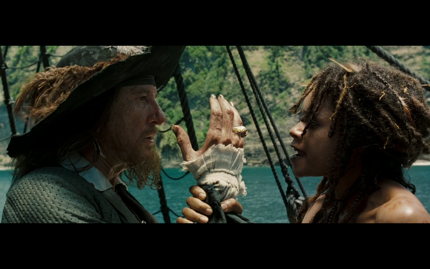 Ah. He thinks she’s Calypso. Cause she’s the hot one. If we’re thinking goddesses…between her and Naomi Harris (in this franchise)…yeah.