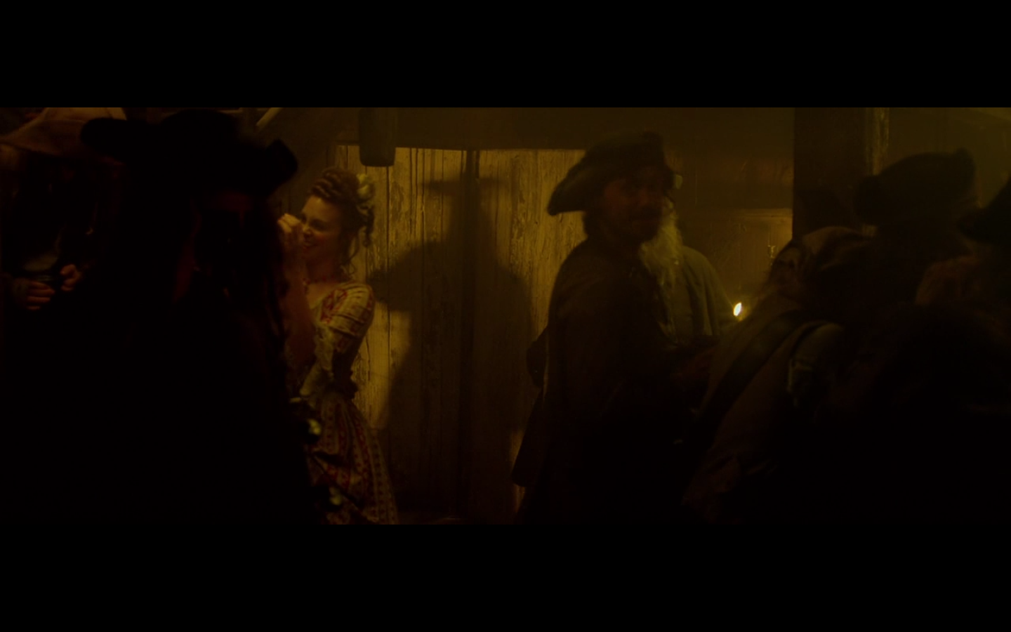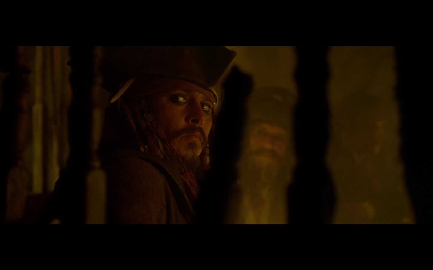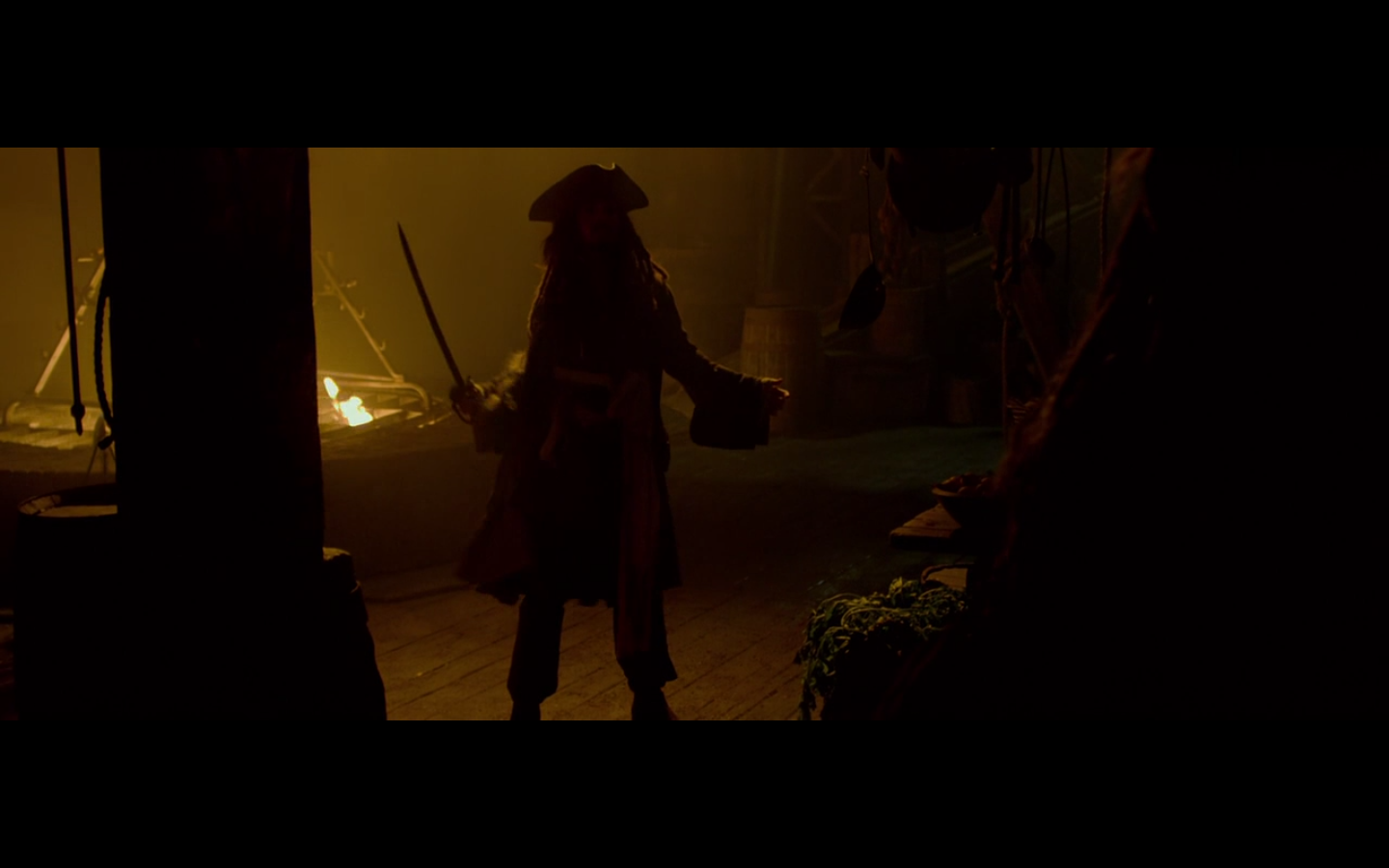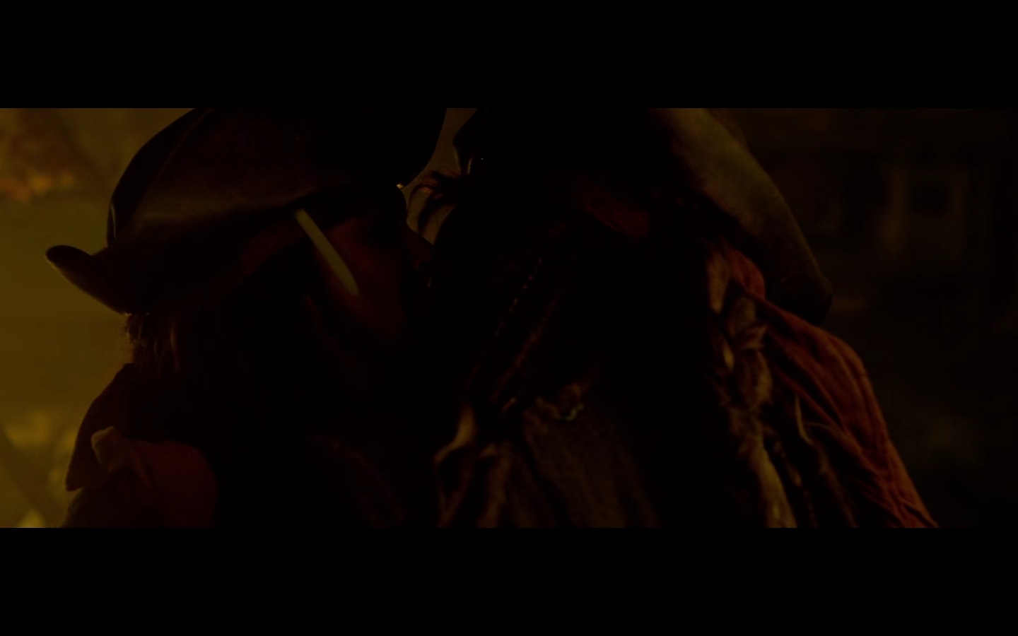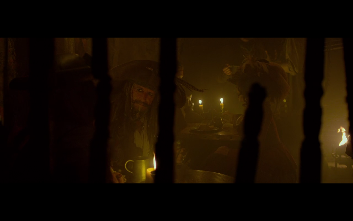 Remember how the other two pre-title sequences went? We met Elizabeth, Norrington, Gibbs and Will. We got characterization on all of them, and set up what was to essentially be the major story arc and conflict in the film. The other one — they hung like a hundred pirates until they sang, and Beckett said something that was cold-blooded as shit.