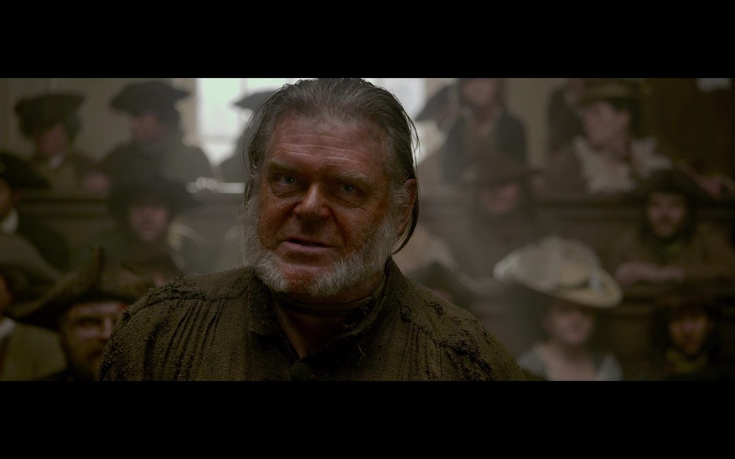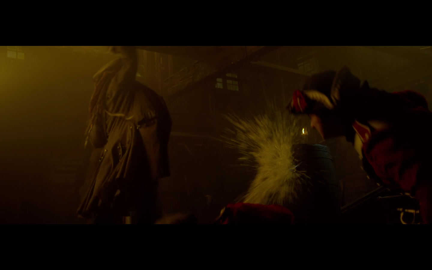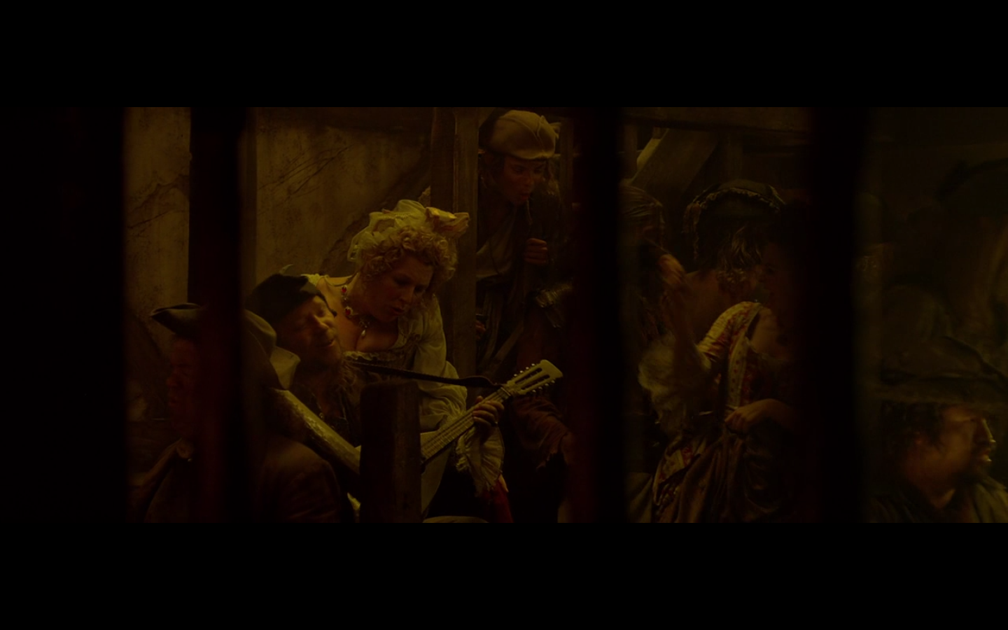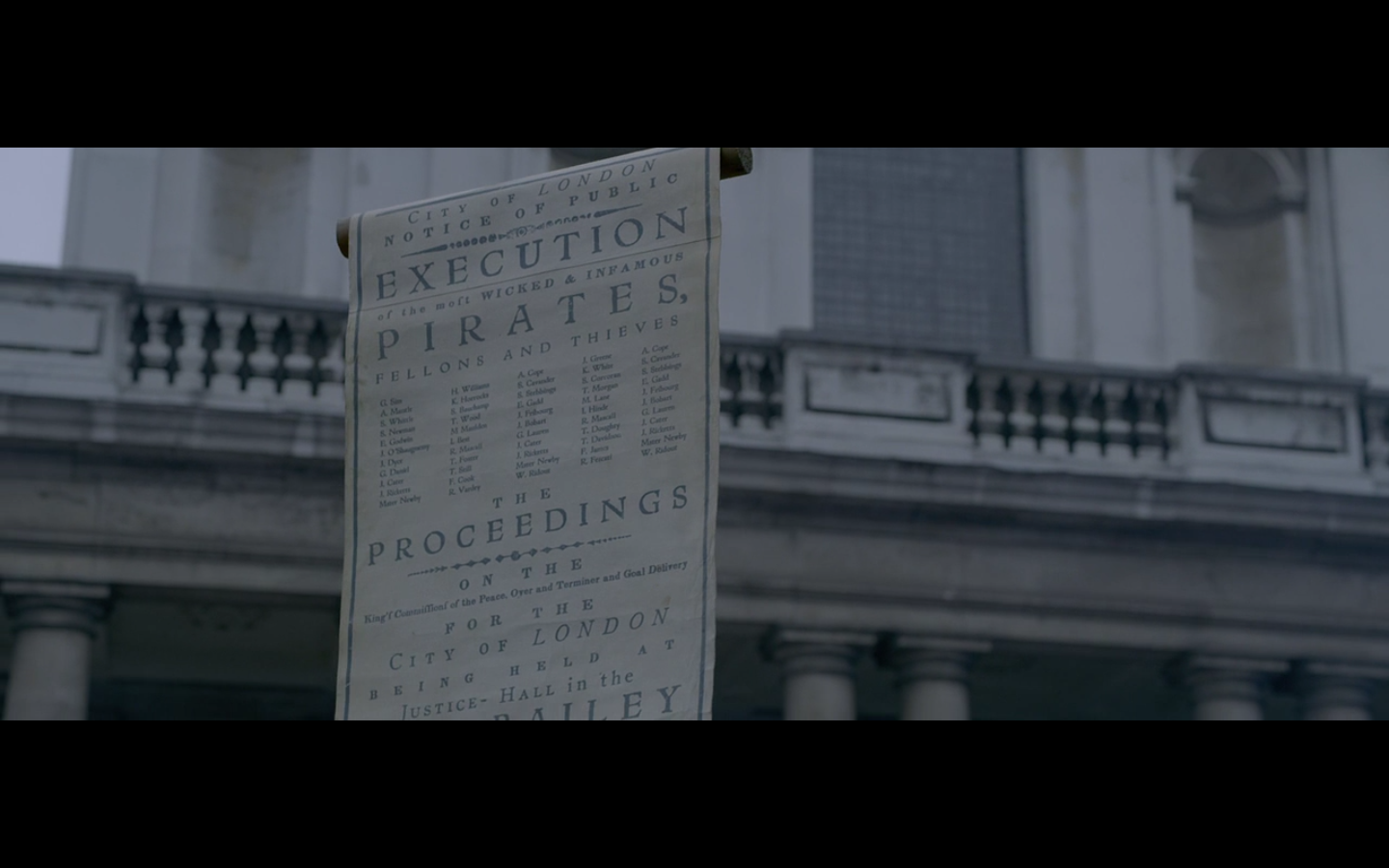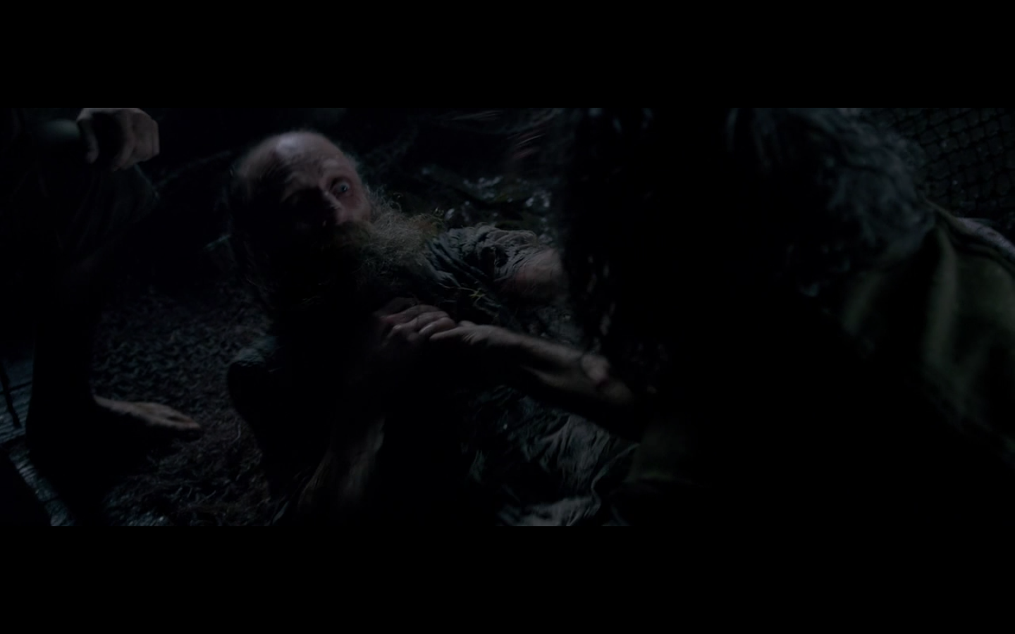 Remember how the other two pre-title sequences went? We met Elizabeth, Norrington, Gibbs and Will. We got characterization on all of them, and set up what was to essentially be the major story arc and conflict in the film. The other one — they hung like a hundred pirates until they sang, and Beckett said something that was cold-blooded as shit.