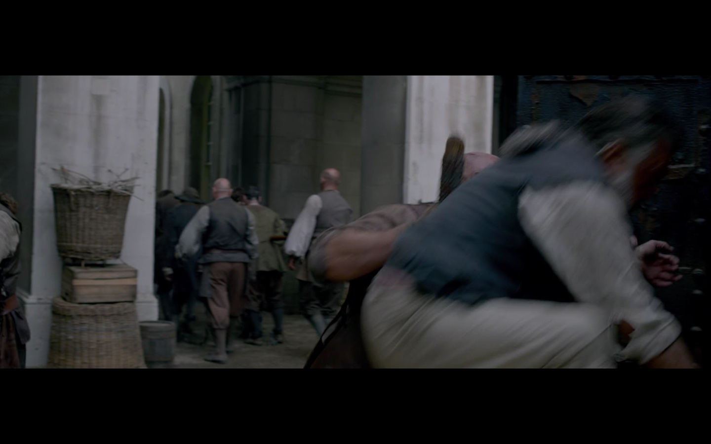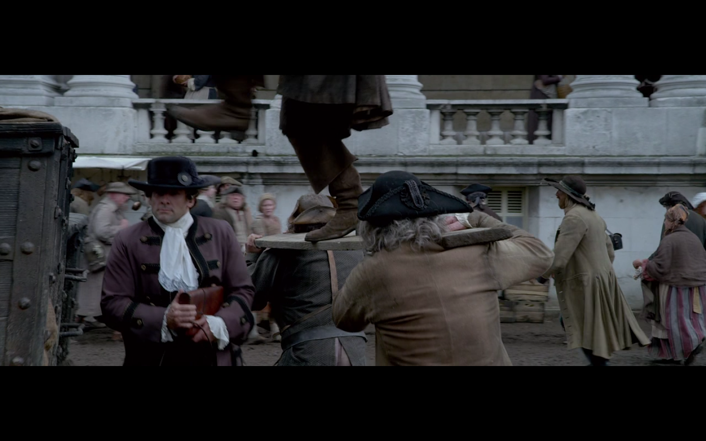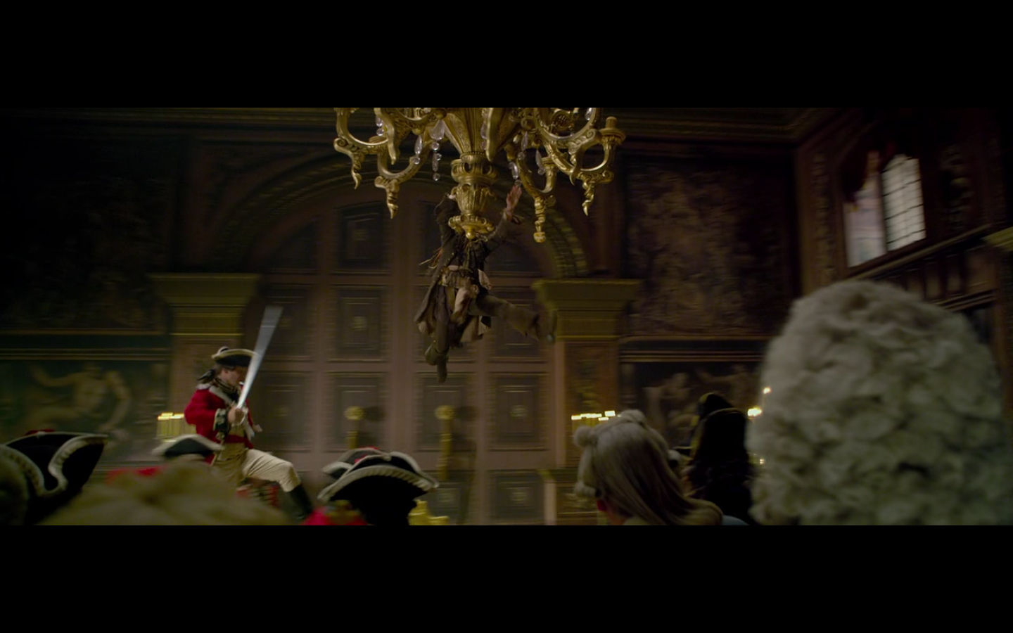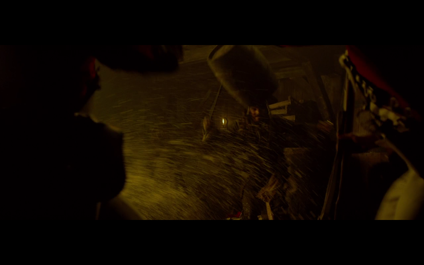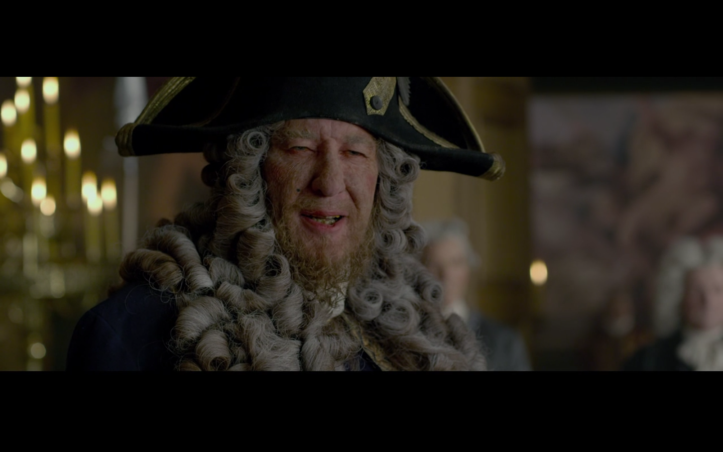 Remember how the other two pre-title sequences went? We met Elizabeth, Norrington, Gibbs and Will. We got characterization on all of them, and set up what was to essentially be the major story arc and conflict in the film. The other one — they hung like a hundred pirates until they sang, and Beckett said something that was cold-blooded as shit.
