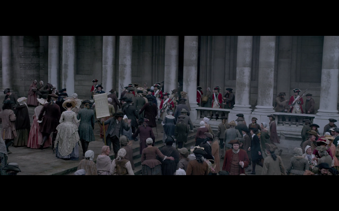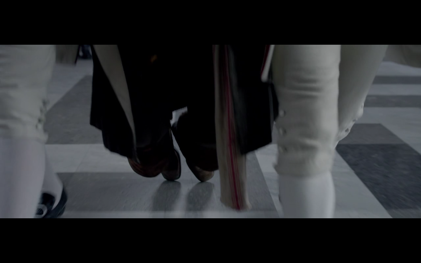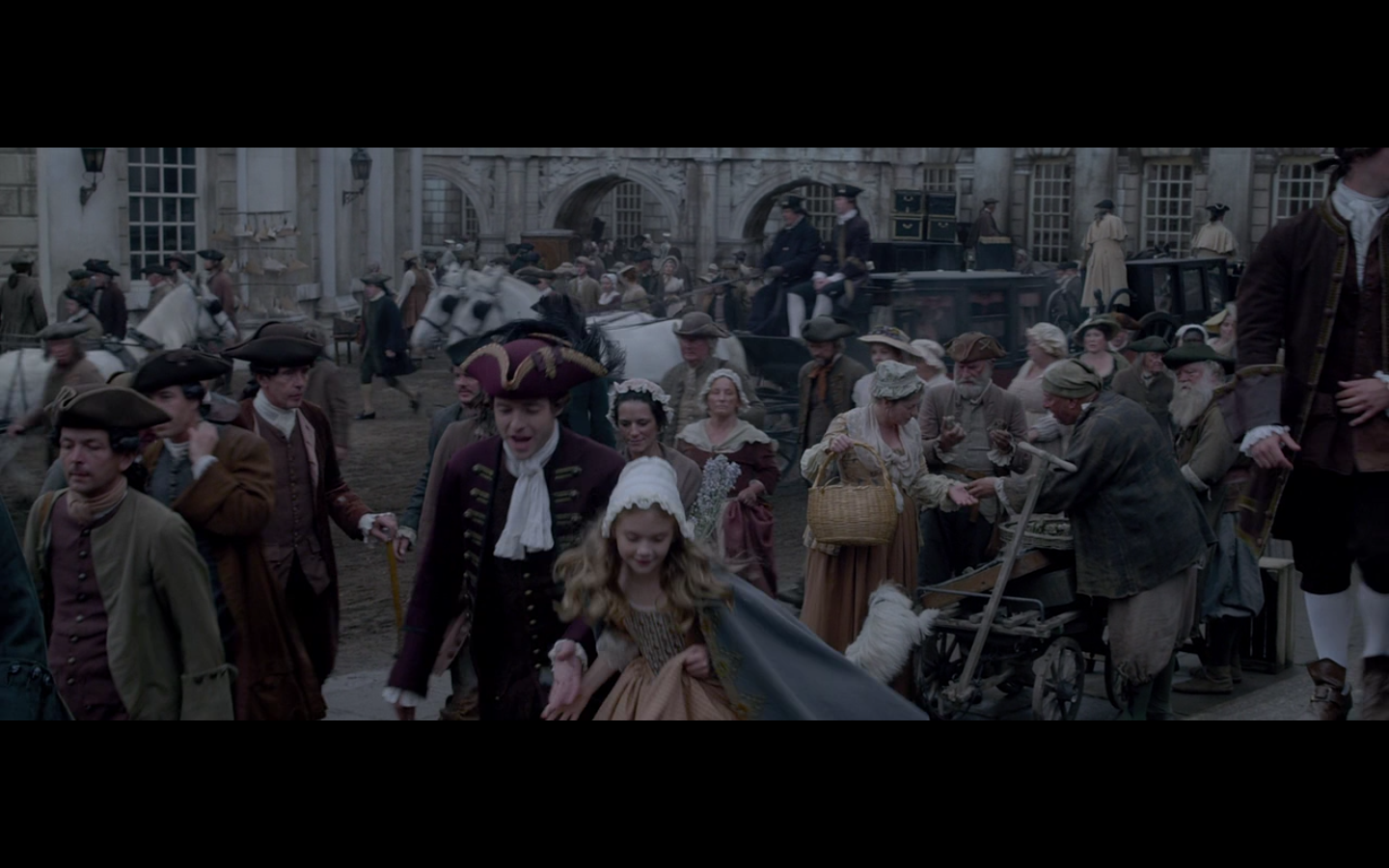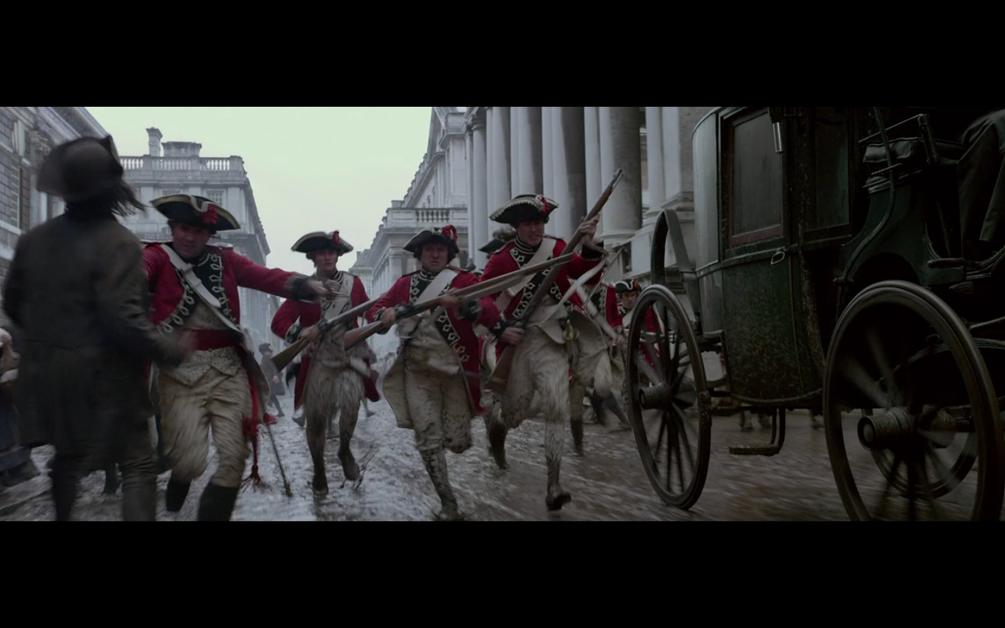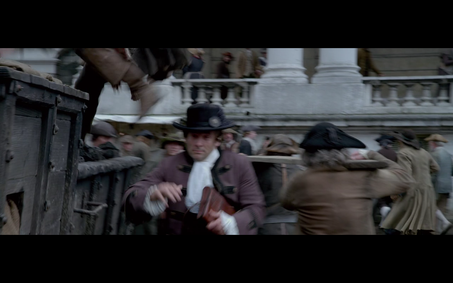 Remember how the other two pre-title sequences went? We met Elizabeth, Norrington, Gibbs and Will. We got characterization on all of them, and set up what was to essentially be the major story arc and conflict in the film. The other one — they hung like a hundred pirates until they sang, and Beckett said something that was cold-blooded as shit.