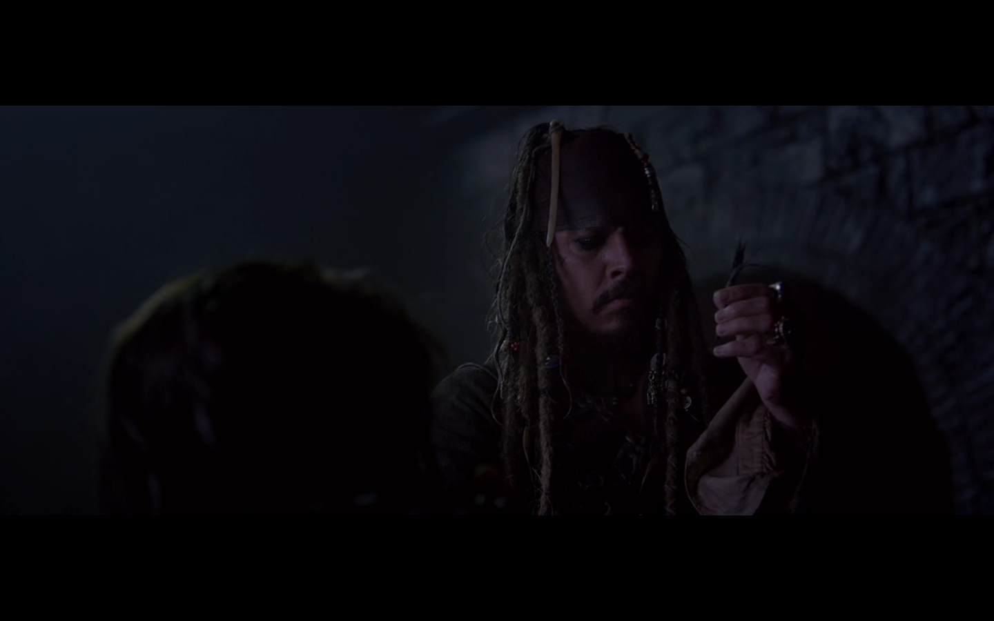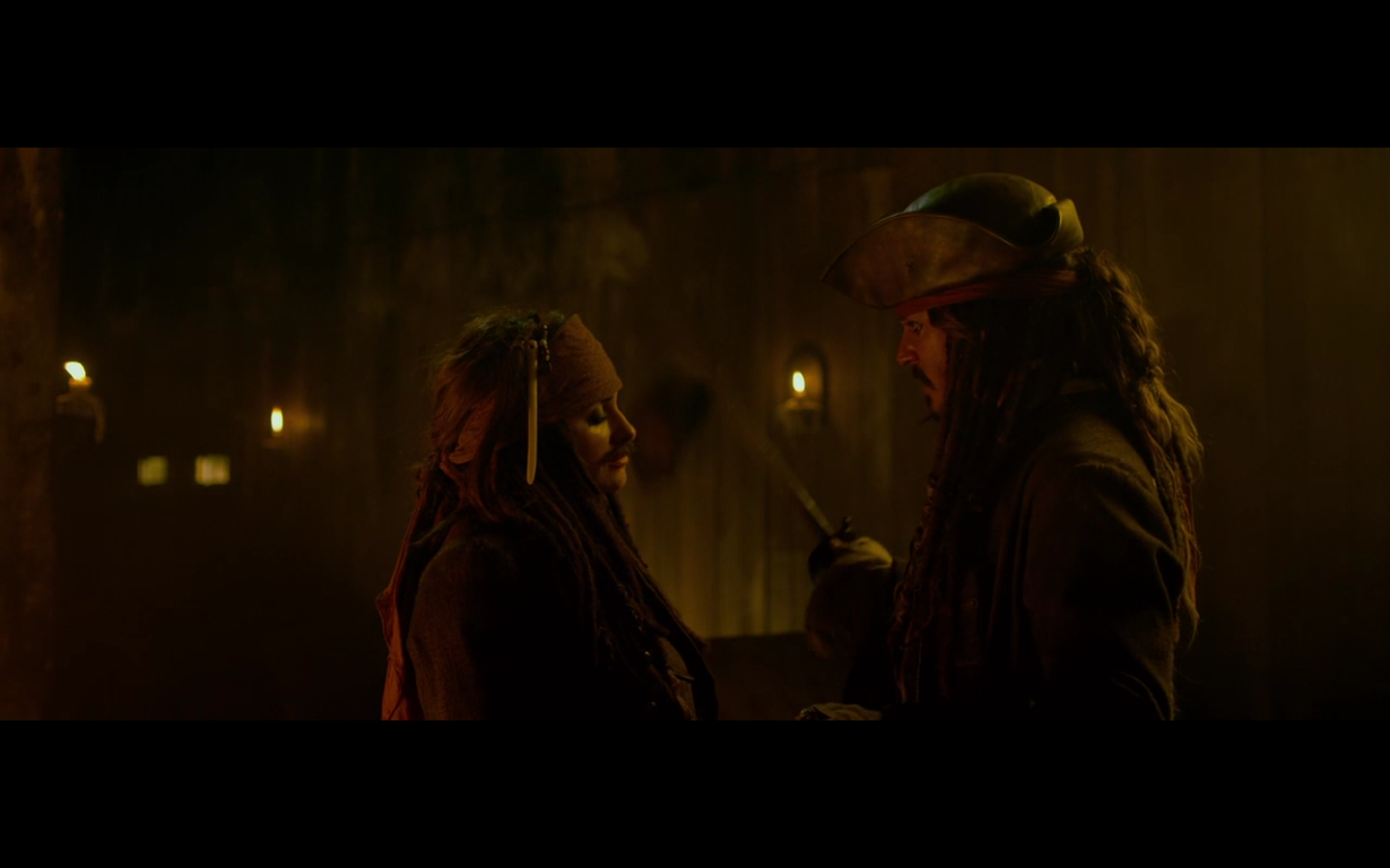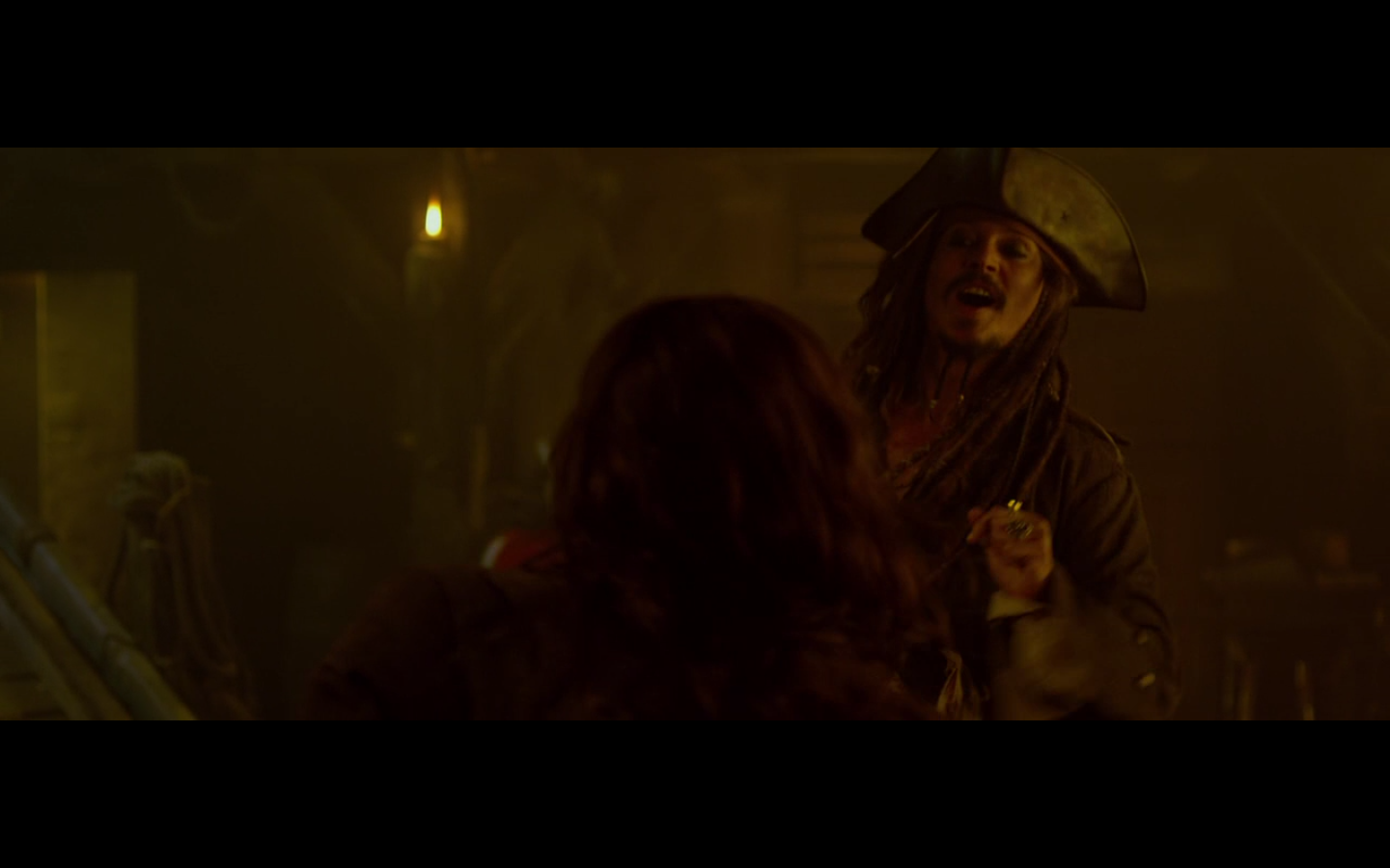 So they were together, and she left him. He lets her maintain this ‘fiction.’ I enjoy that. Women have ‘fictions.’ Men are secure in their truths. This is how Jack Sparrow thinks.