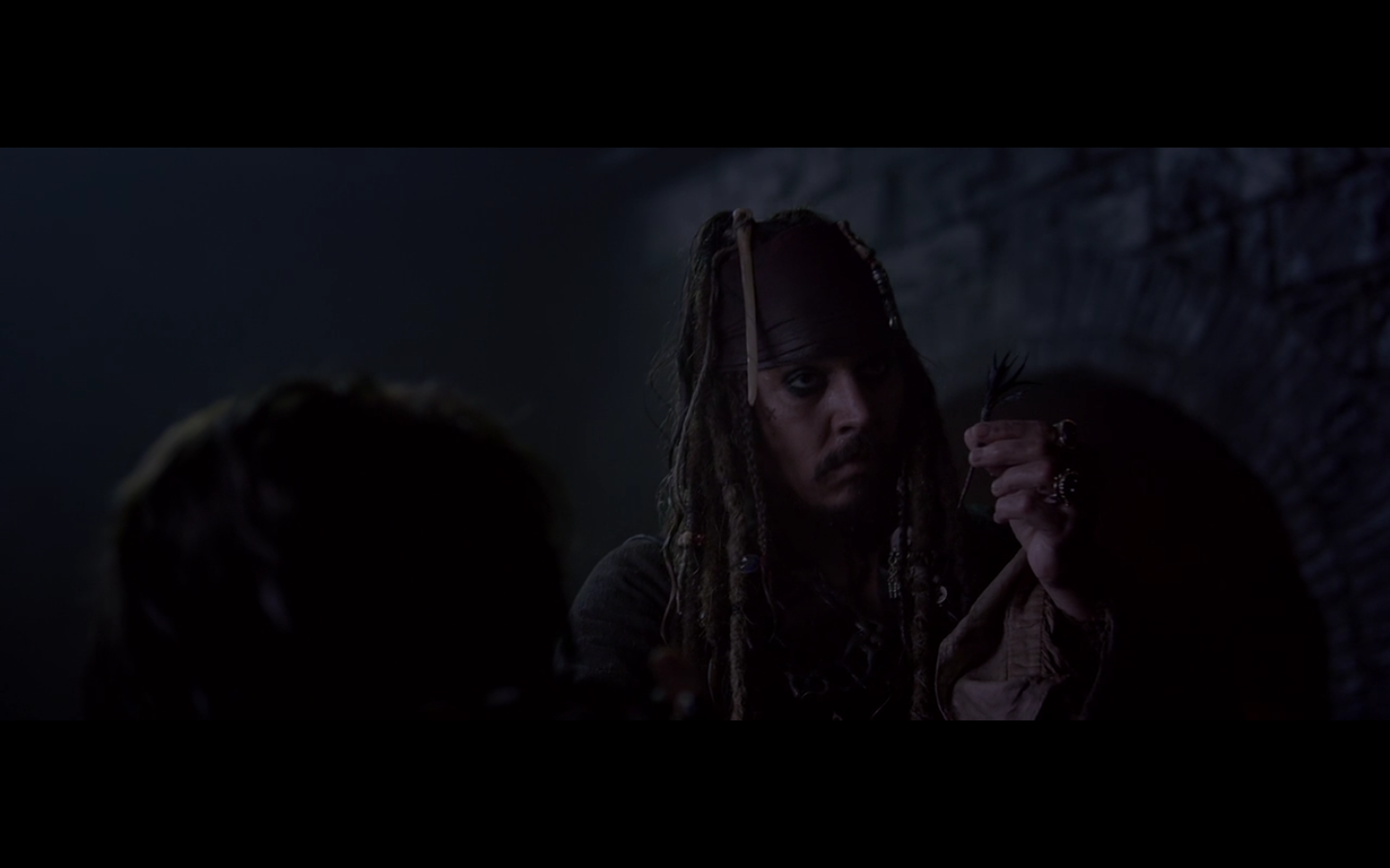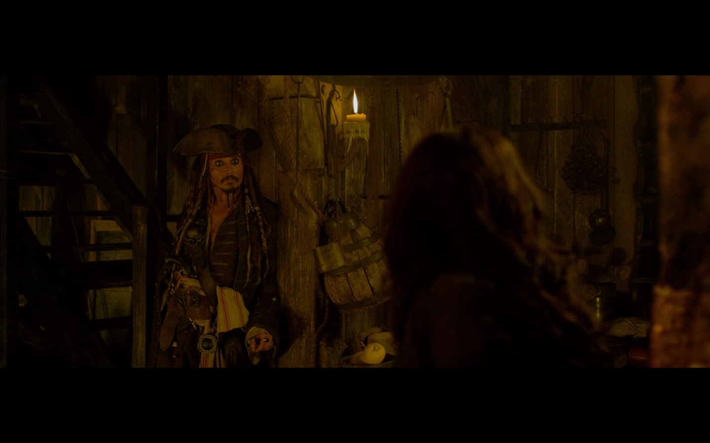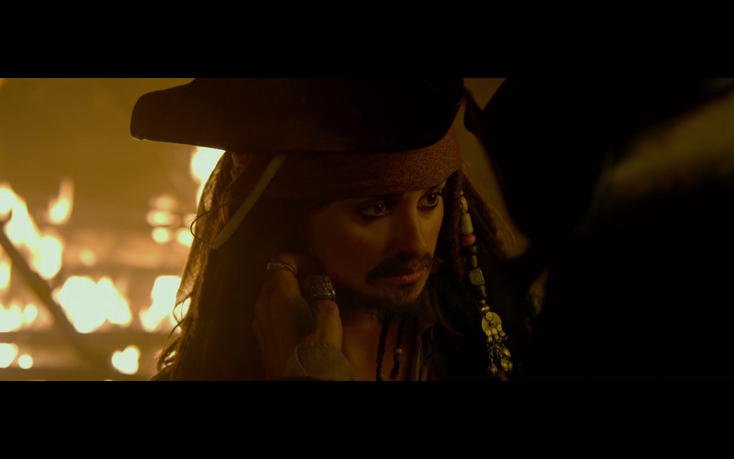 So they were together, and she left him. He lets her maintain this ‘fiction.’ I enjoy that. Women have ‘fictions.’ Men are secure in their truths. This is how Jack Sparrow thinks.