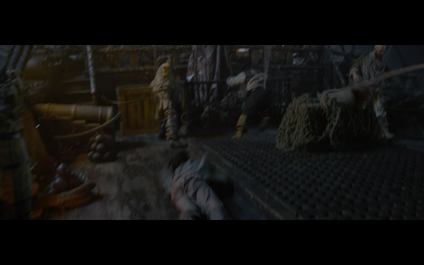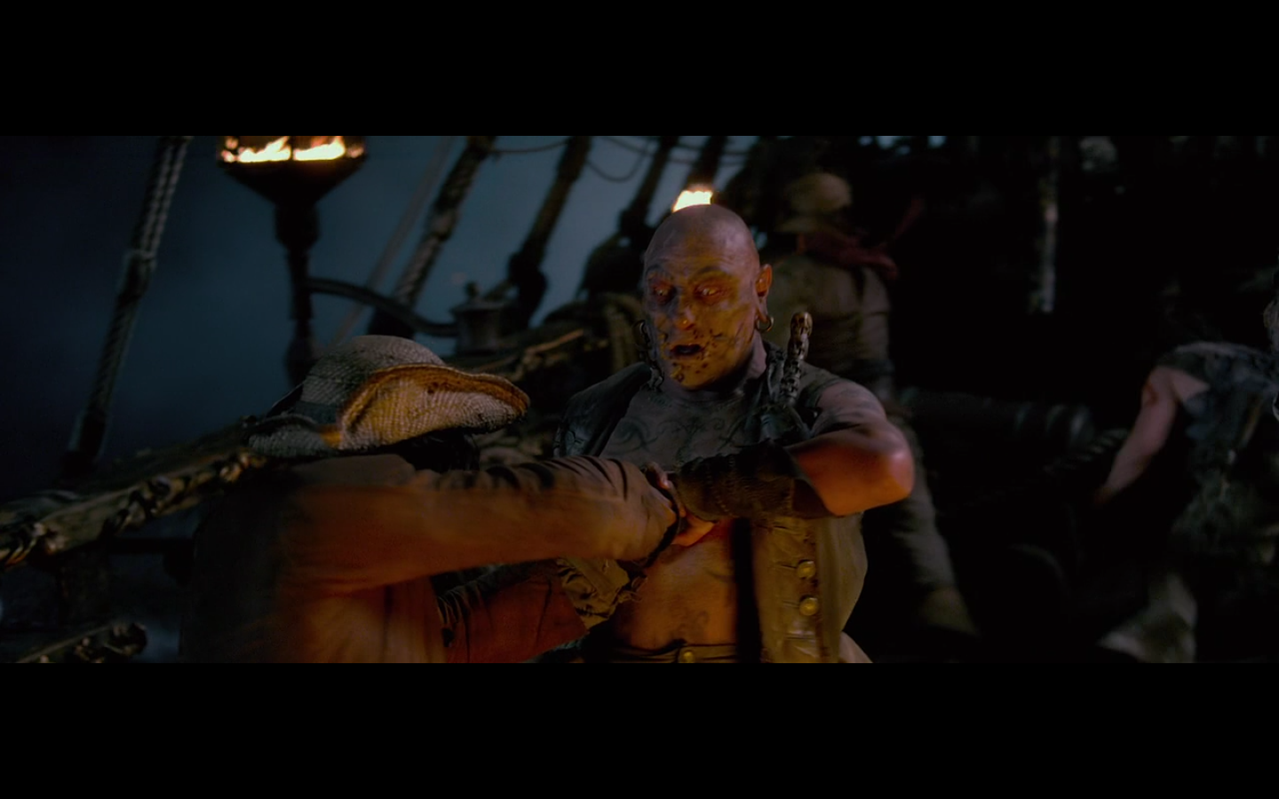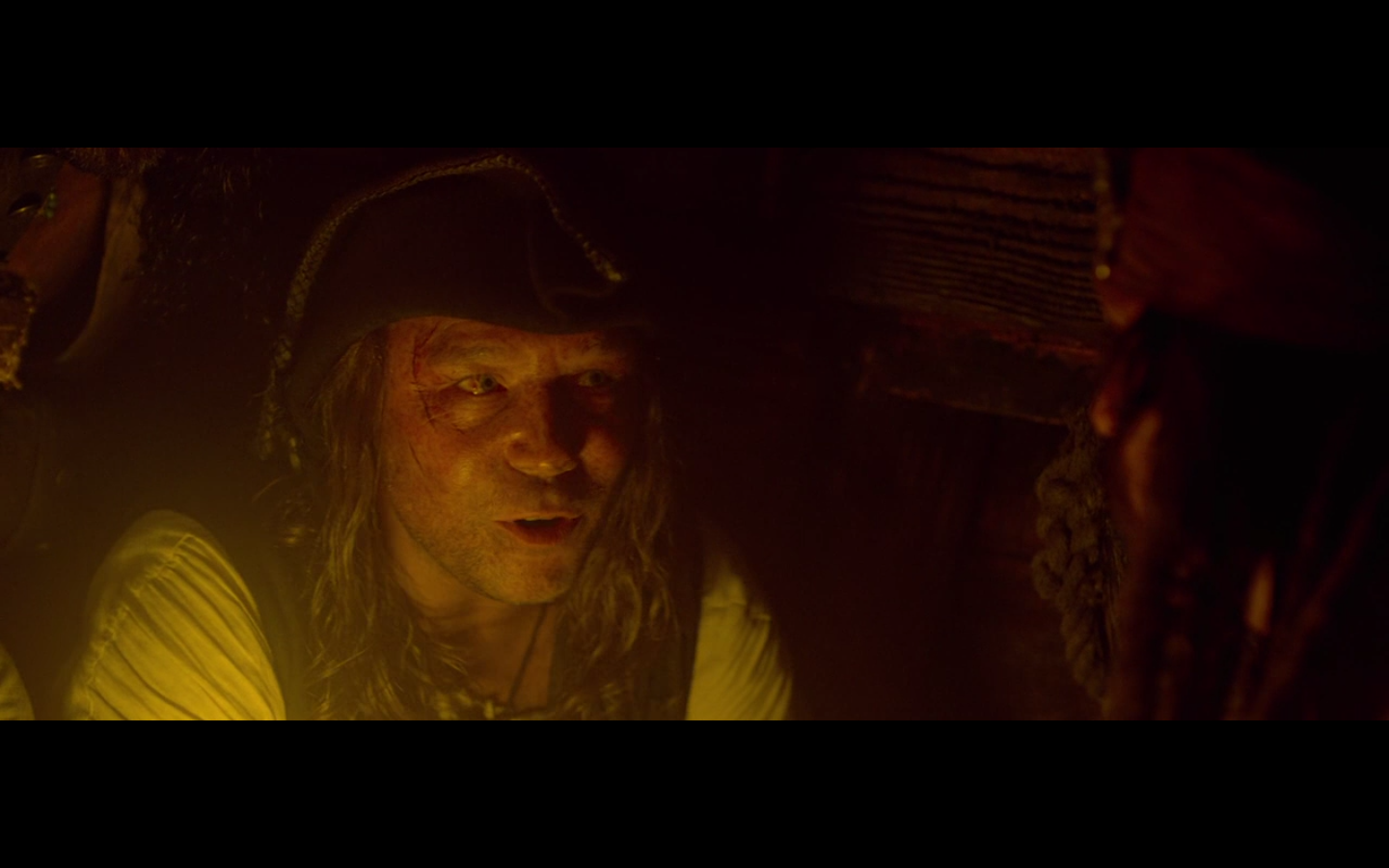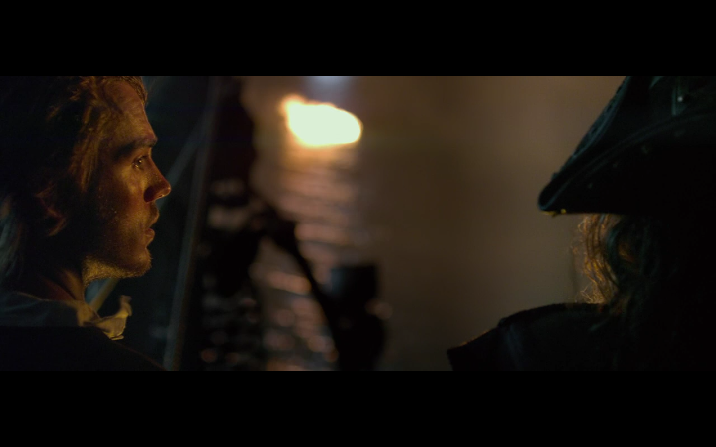 This whole movie seems full of fog. It’s either dark, foggy, or both at pretty much all times. Look at how bad this looks. There’s no crispness to any of the images. That really bothers me. Think back to when Elizabeth has her first dinner with Barbossa on the Pearl — that was in a dim, candle-lit room, and it looked WAY better than this.