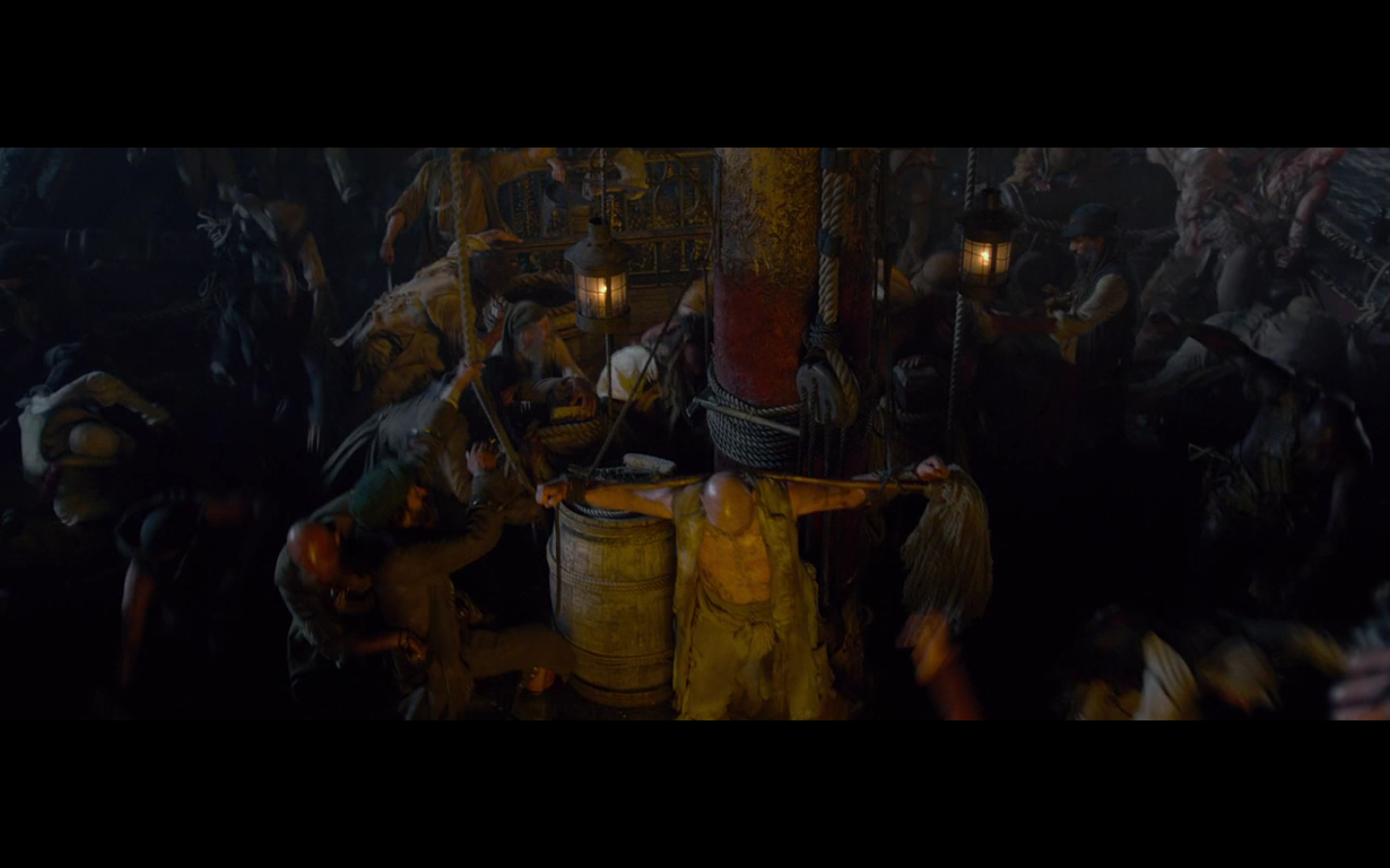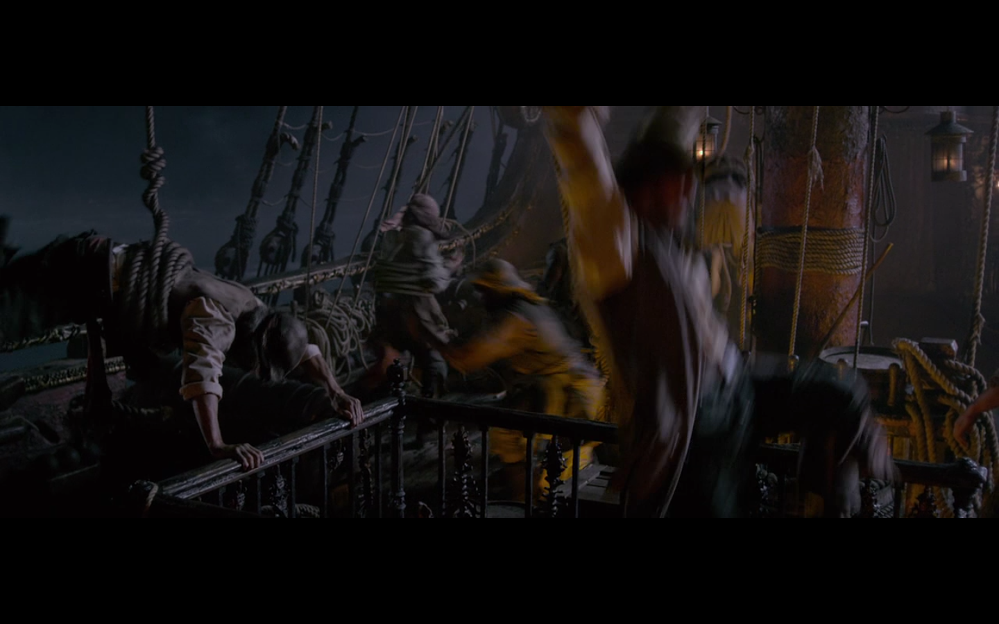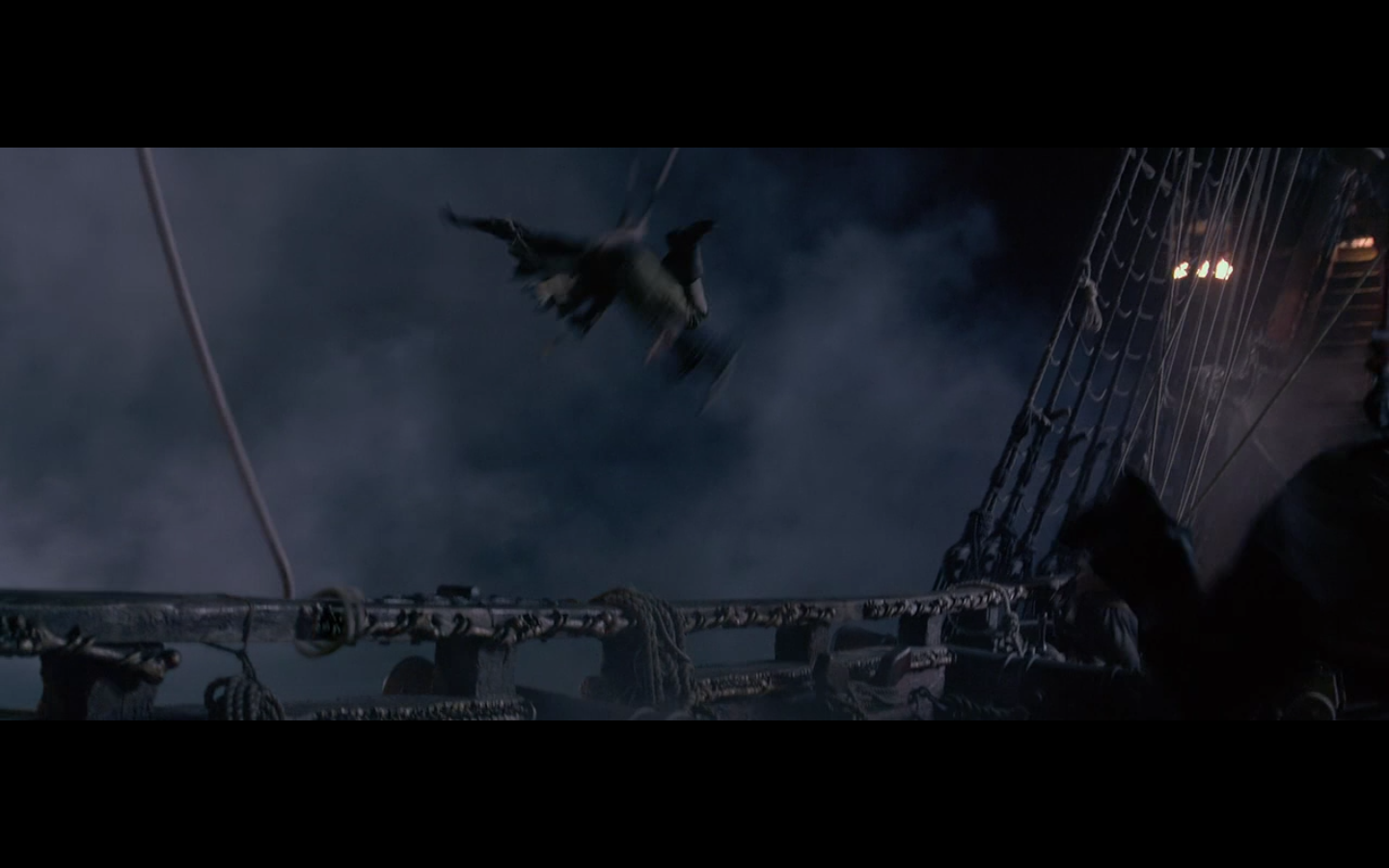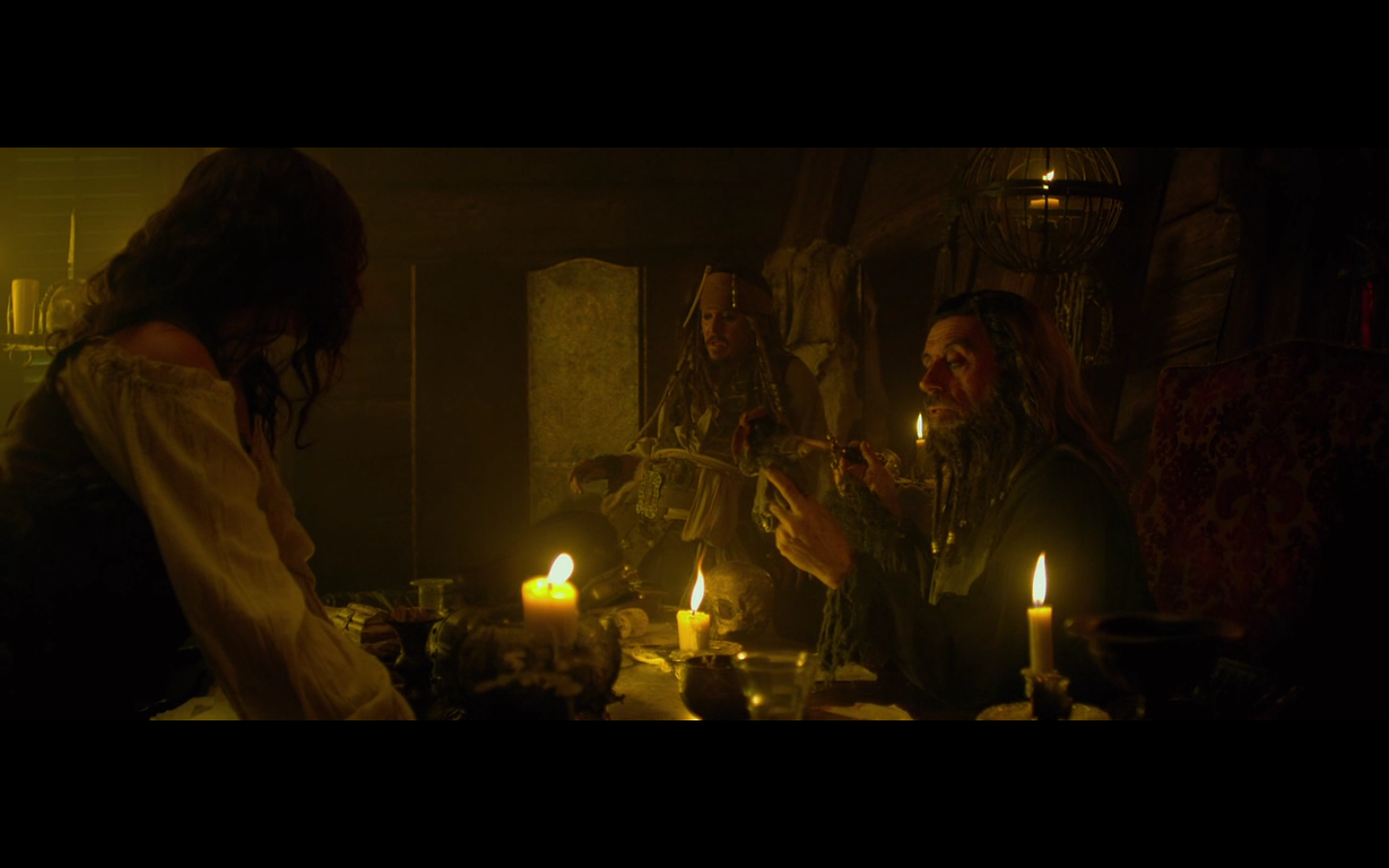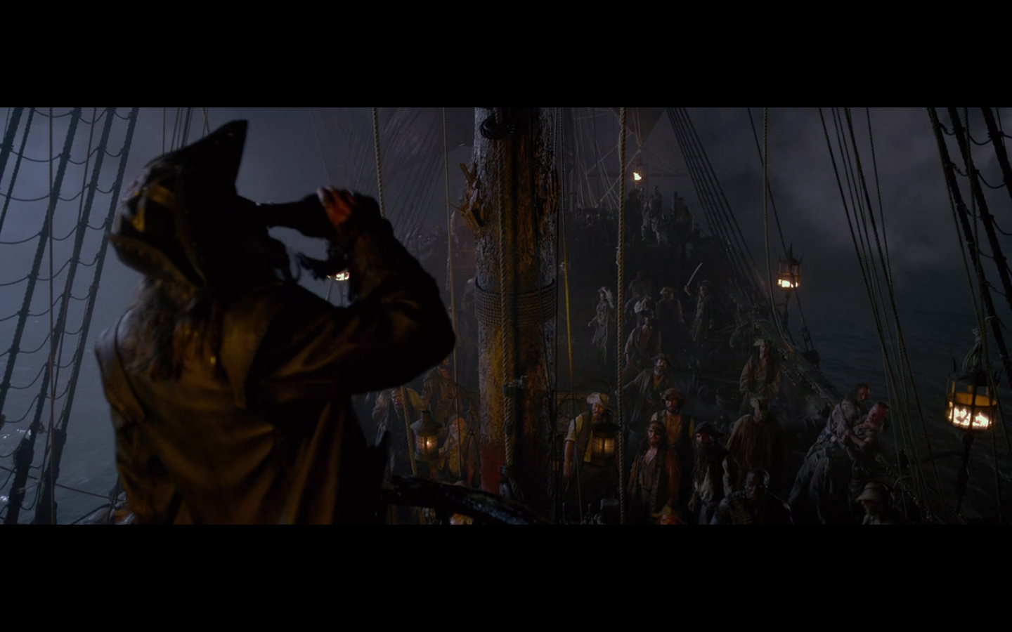 This whole movie seems full of fog. It’s either dark, foggy, or both at pretty much all times. Look at how bad this looks. There’s no crispness to any of the images. That really bothers me. Think back to when Elizabeth has her first dinner with Barbossa on the Pearl — that was in a dim, candle-lit room, and it looked WAY better than this.