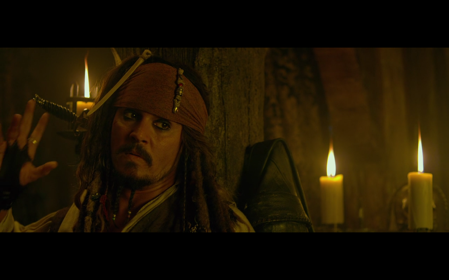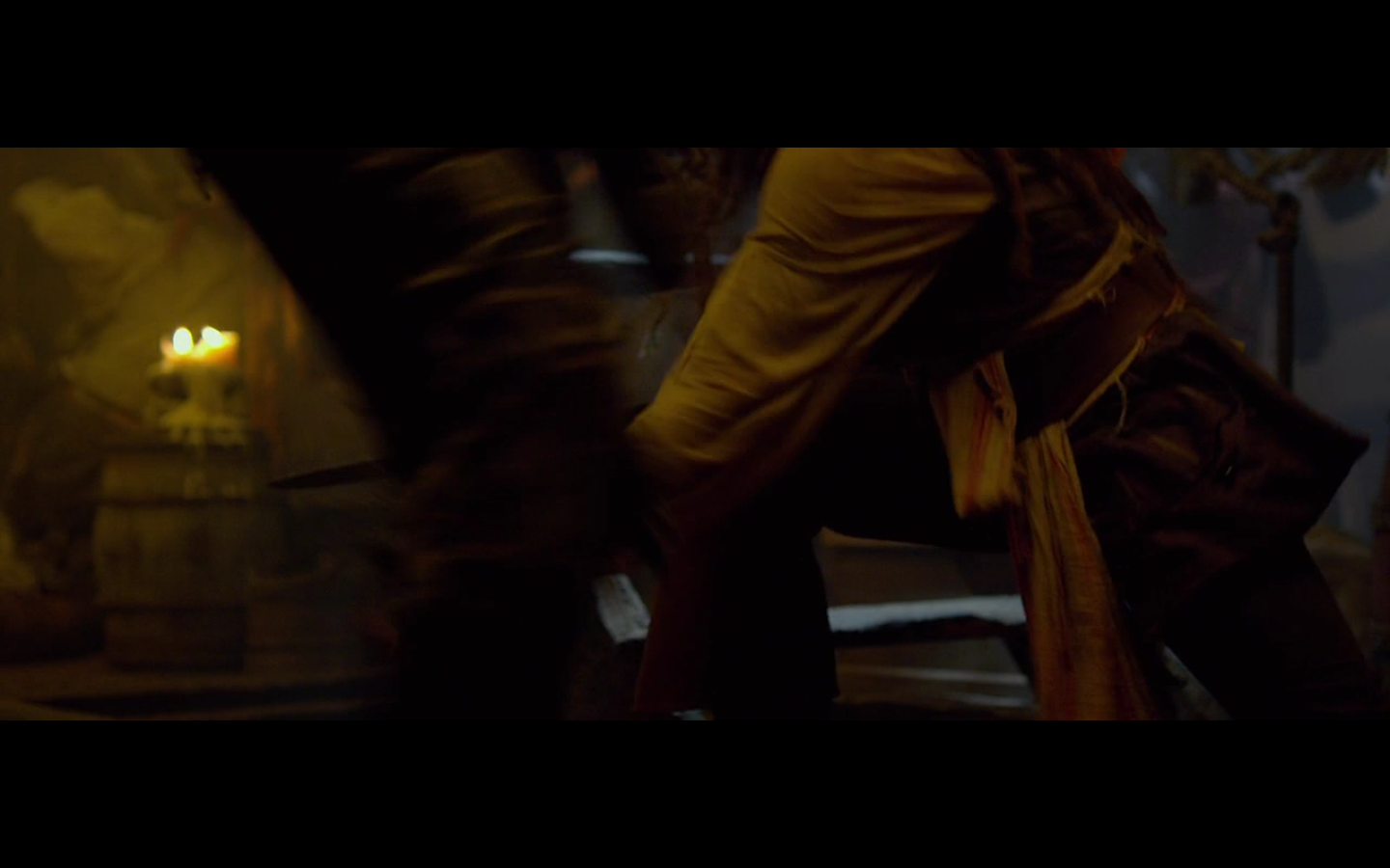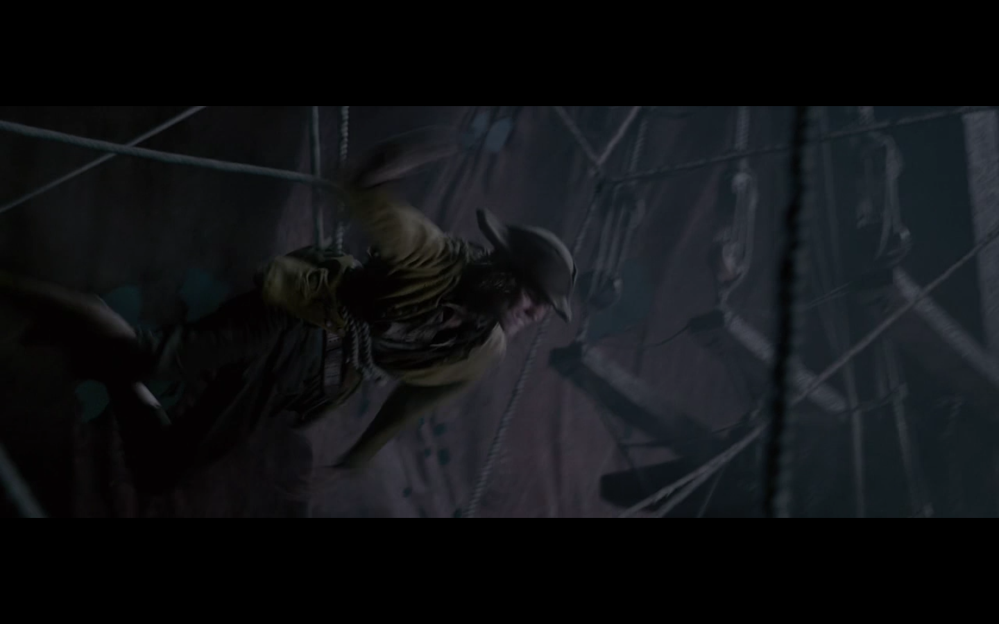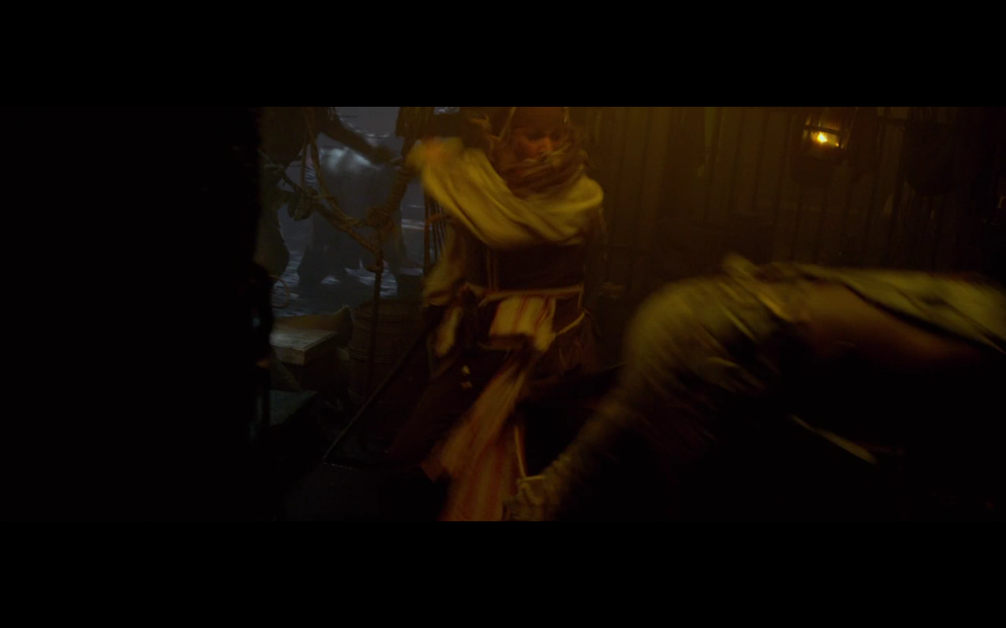 This whole movie seems full of fog. It’s either dark, foggy, or both at pretty much all times. Look at how bad this looks. There’s no crispness to any of the images. That really bothers me. Think back to when Elizabeth has her first dinner with Barbossa on the Pearl — that was in a dim, candle-lit room, and it looked WAY better than this.