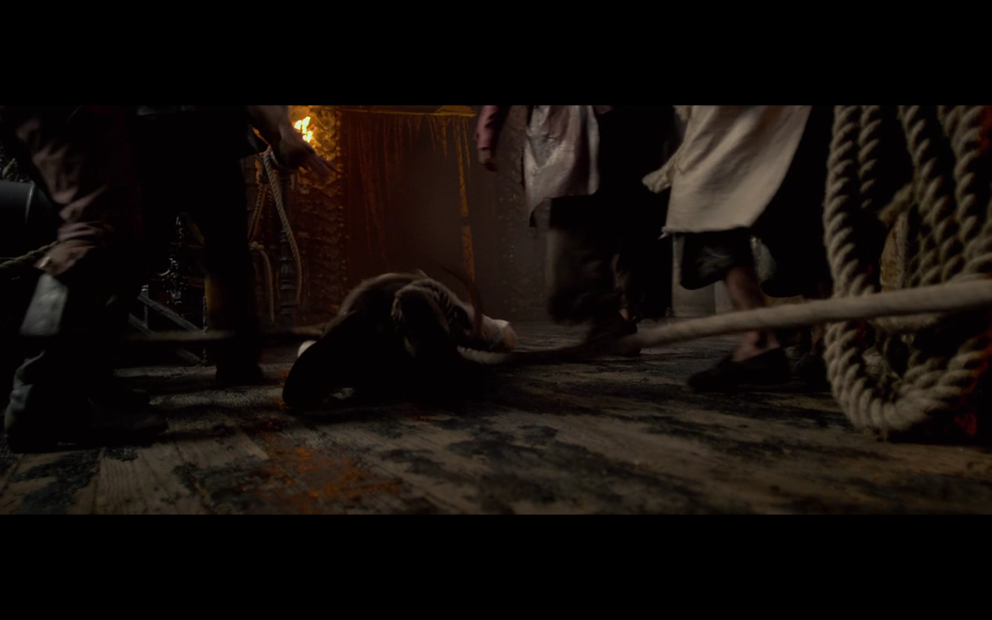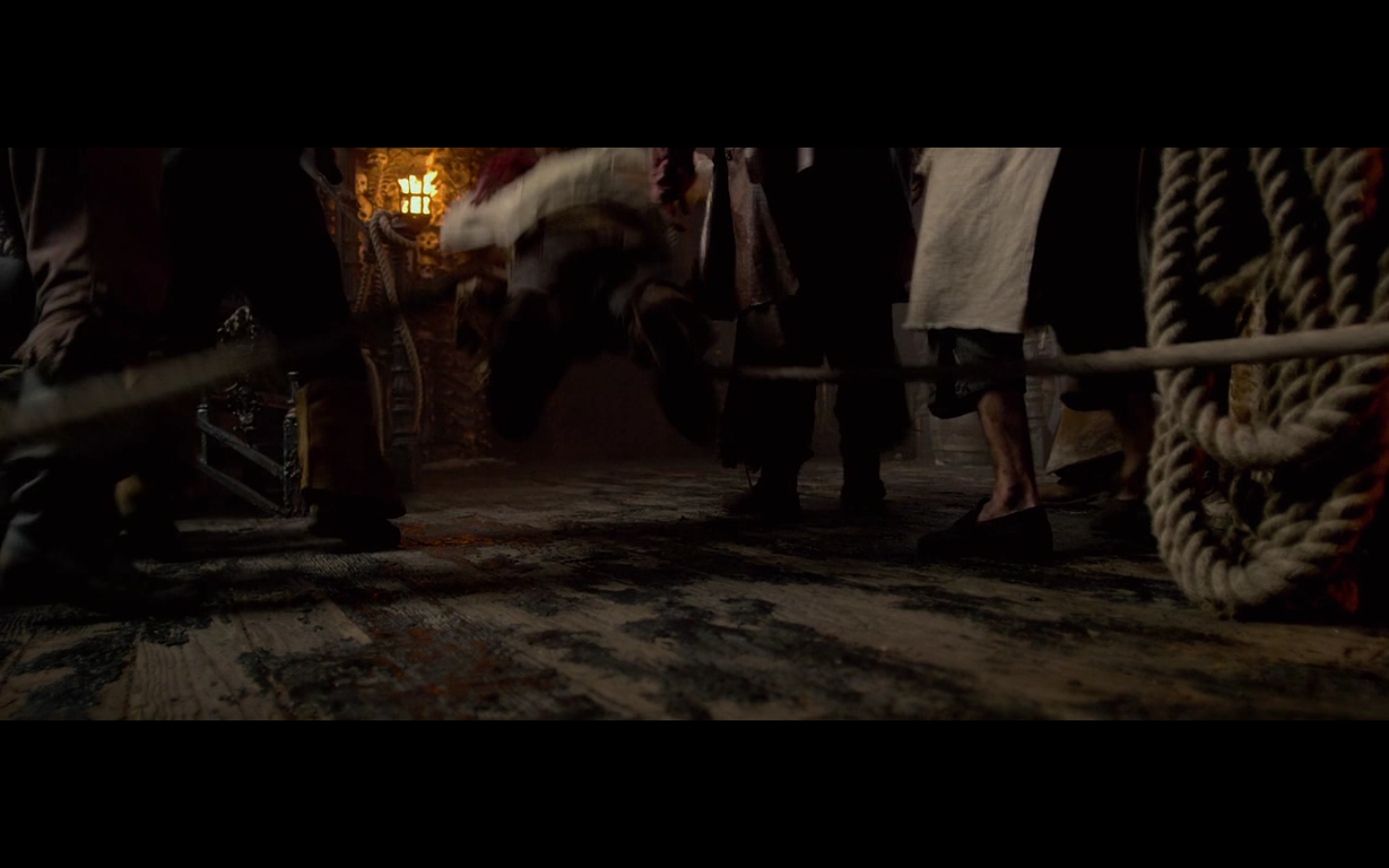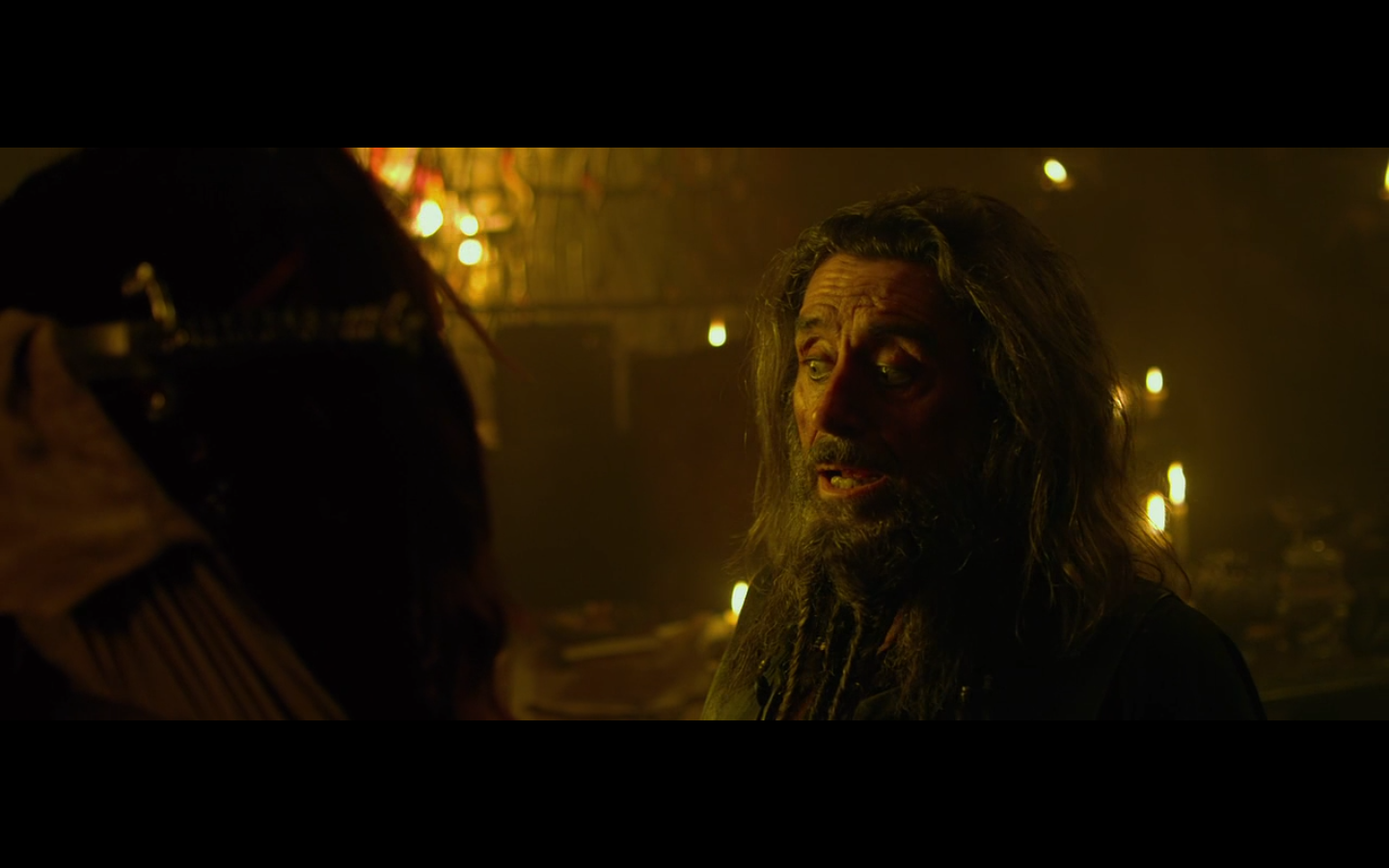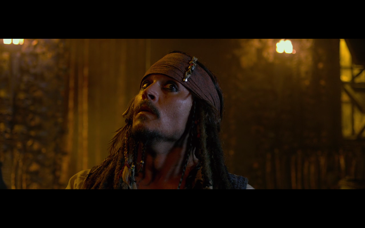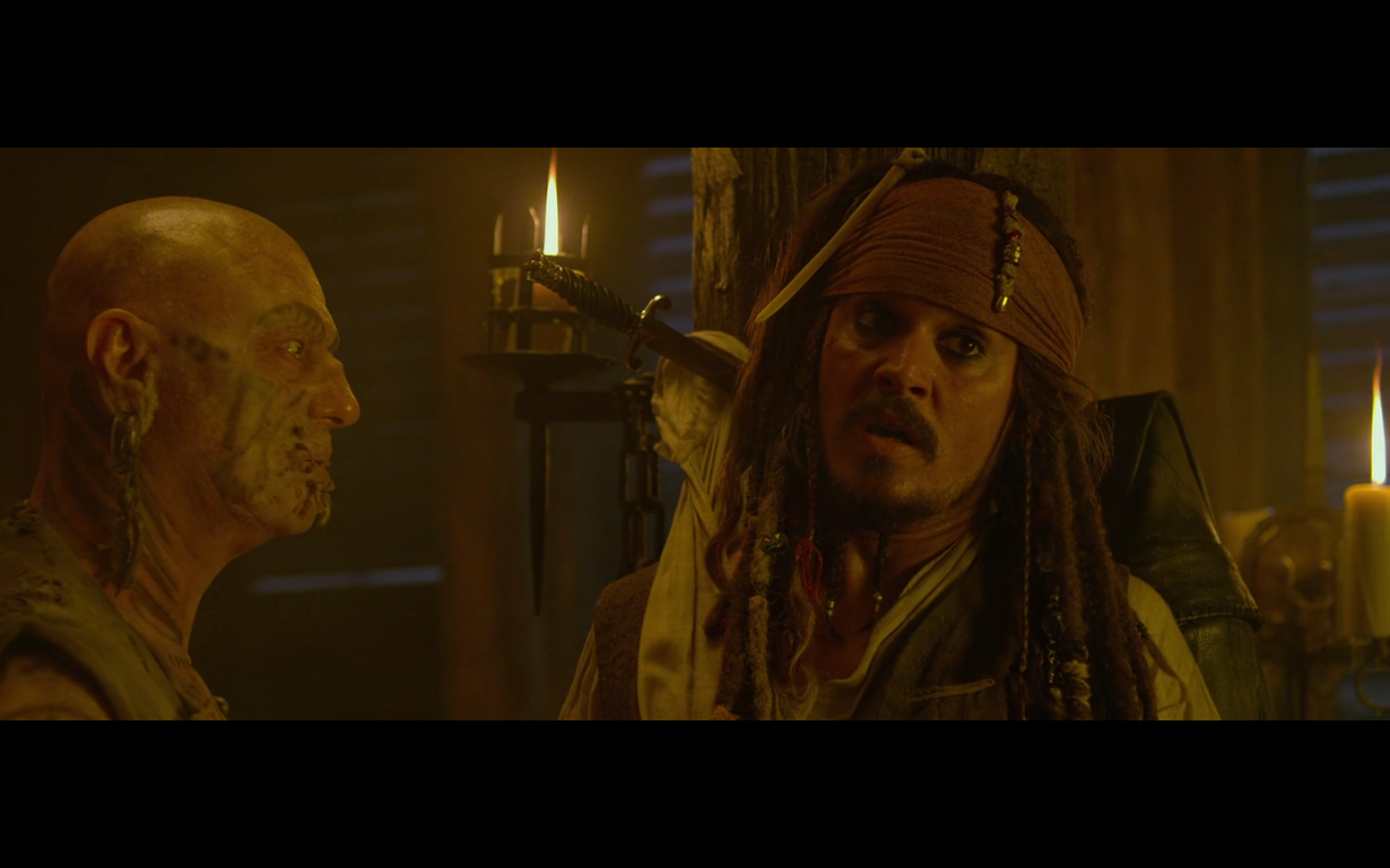 This whole movie seems full of fog. It’s either dark, foggy, or both at pretty much all times. Look at how bad this looks. There’s no crispness to any of the images. That really bothers me. Think back to when Elizabeth has her first dinner with Barbossa on the Pearl — that was in a dim, candle-lit room, and it looked WAY better than this.