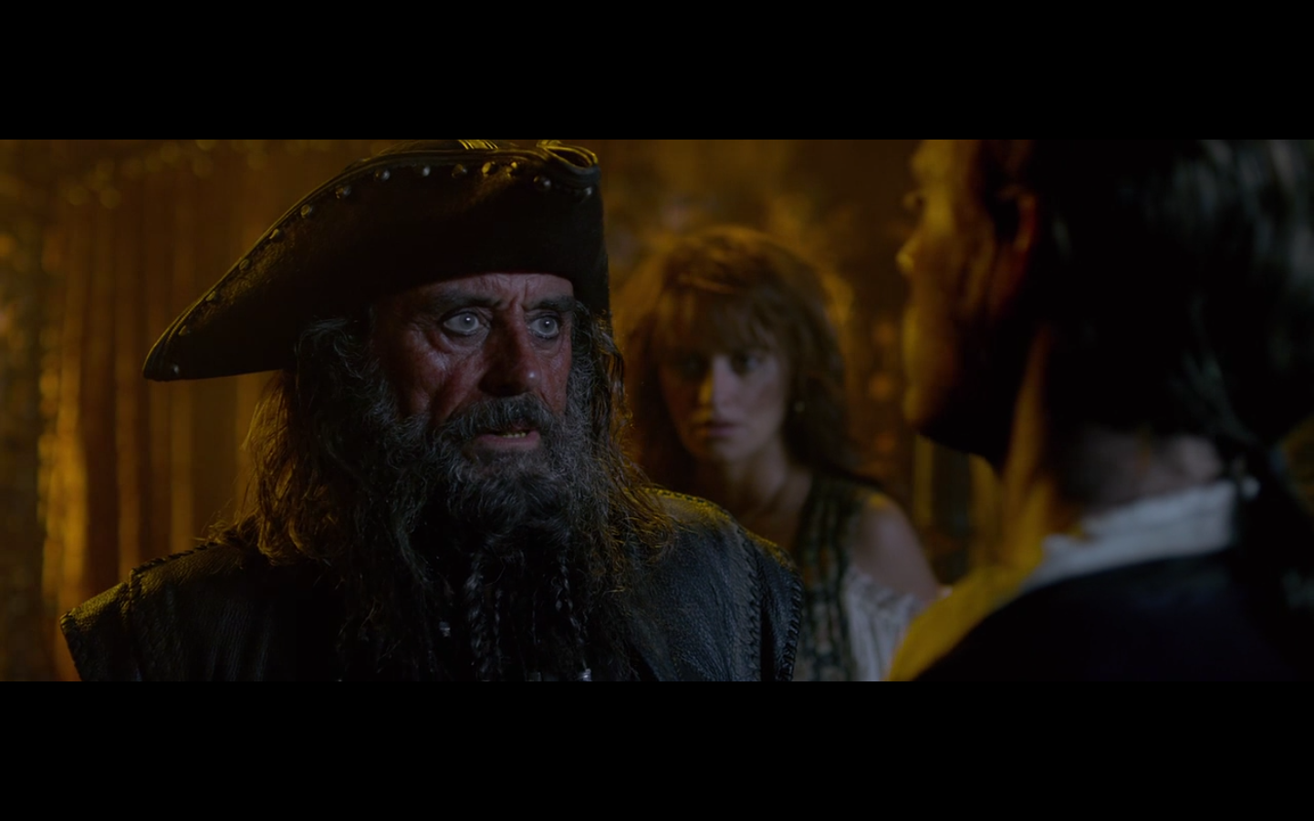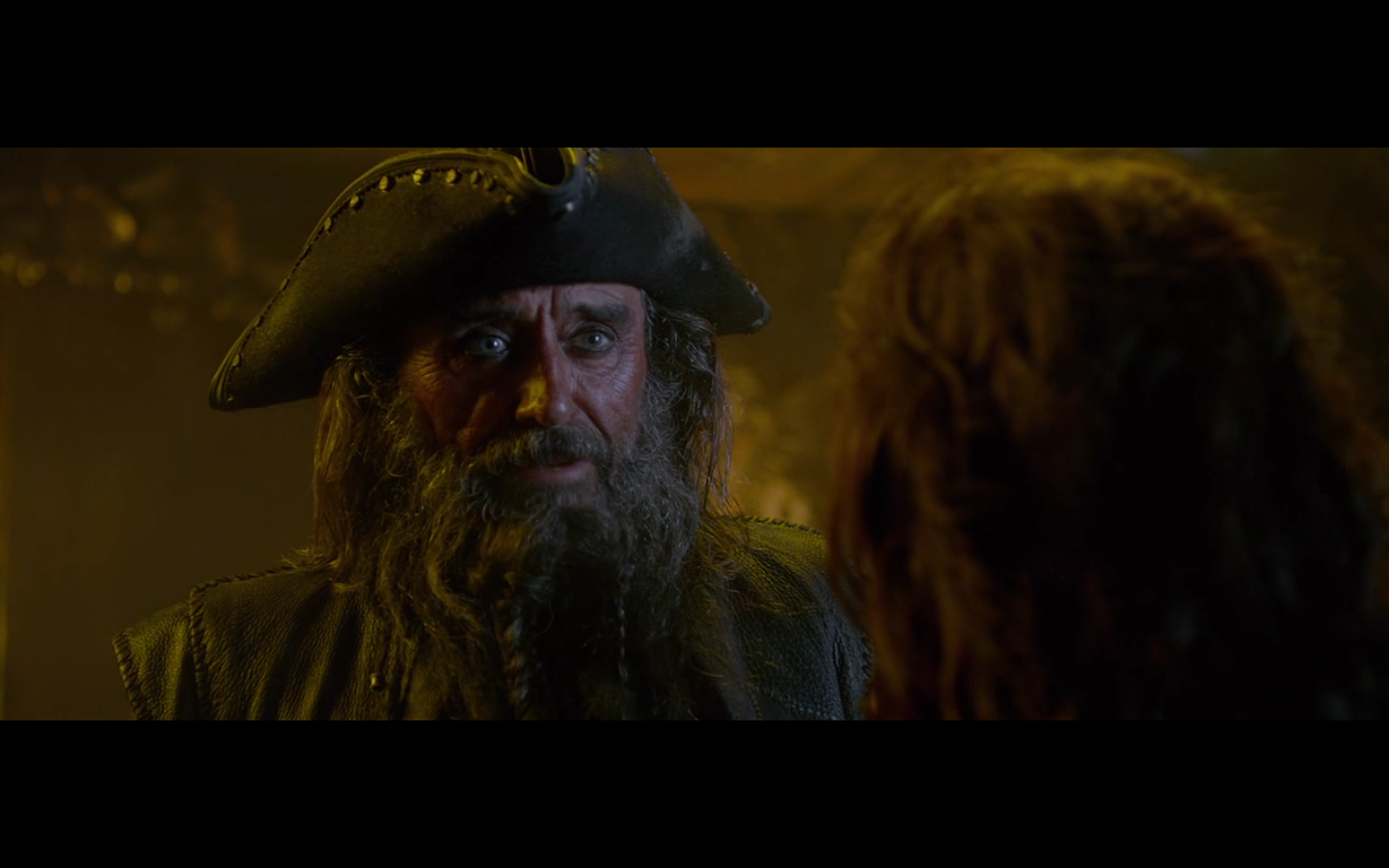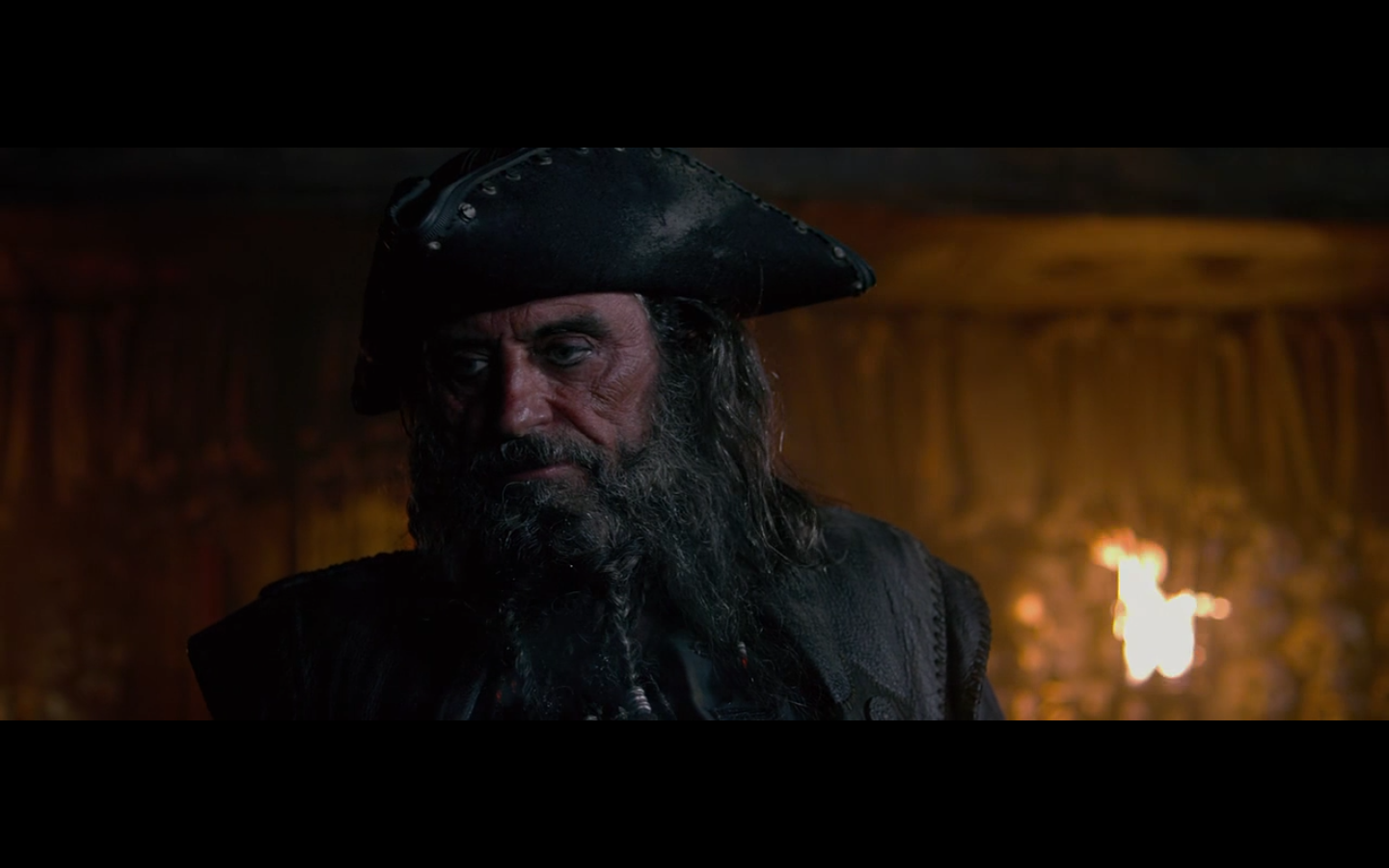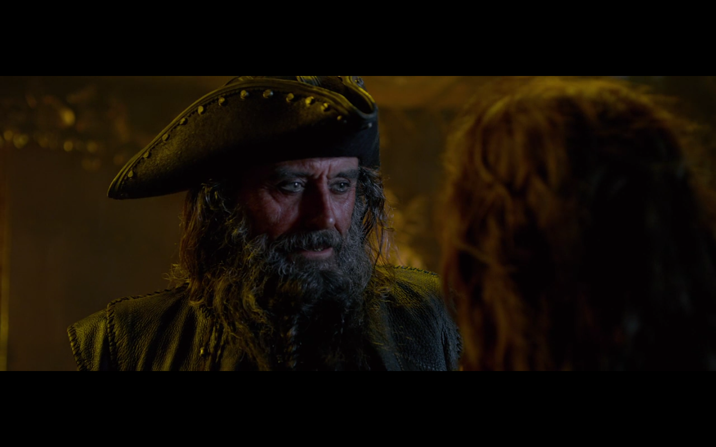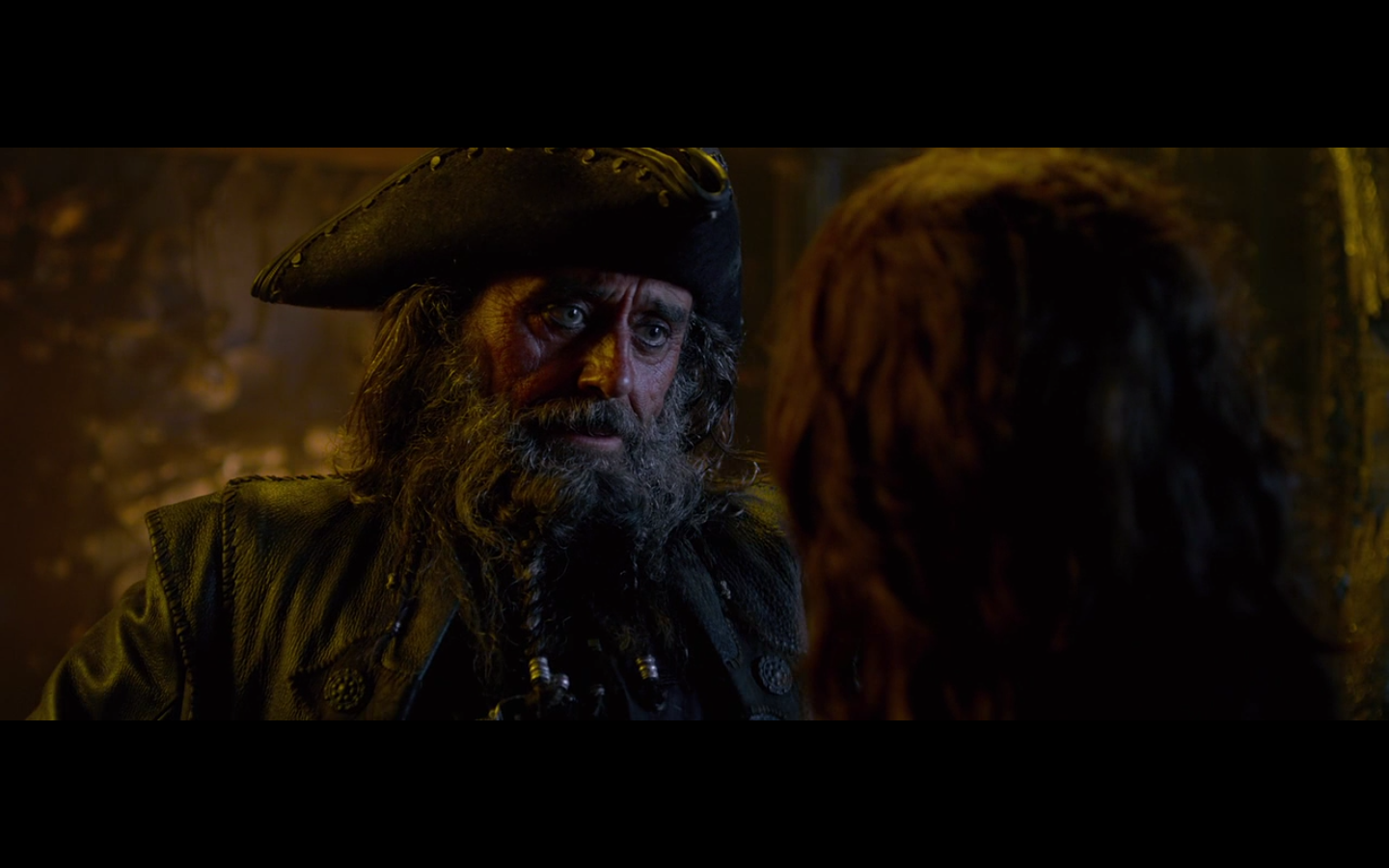Now we pull out and see this badass ship. Why are ships always contained to their movie? If I’d been Barbossa in the first movie, I’d have first conquered the seas. They were all immortal. Fight Davy Jones and win. Fight all the other pirate lords and WIN. Fight Blackbeard and kill him. Take their ships. When Jack convinces Barbossa to become a “commodore” you have to wonder why Barbossa hadn’t done so first. You definitely look for the last pieces so that you can be ready to lift the curse. But you obviously use the curse to your advantage while it’s on you.Take out some of the more hardy competition. And apparently, Blackbeard didn’t factor into any of the last two movies’ plots at all, either.
