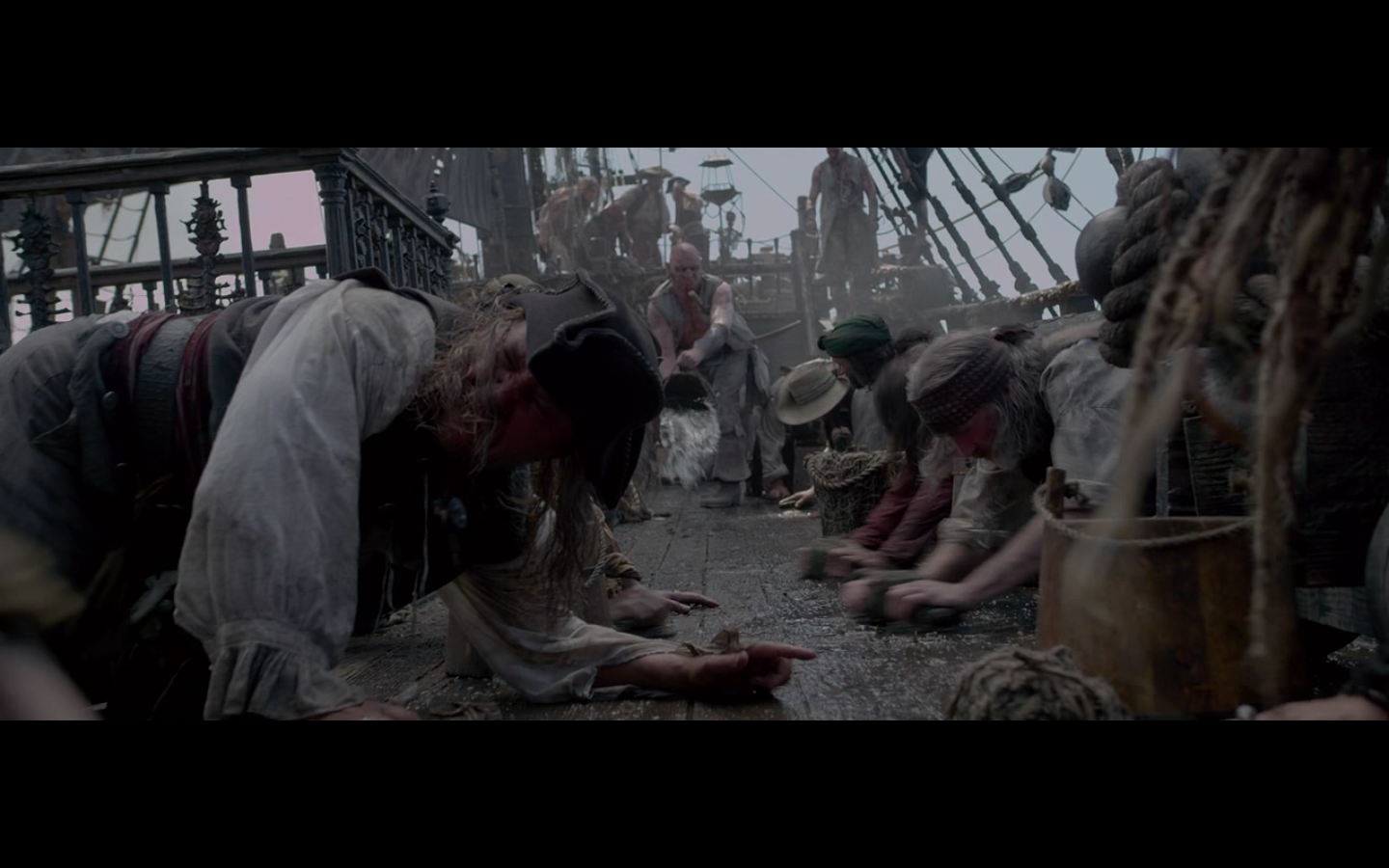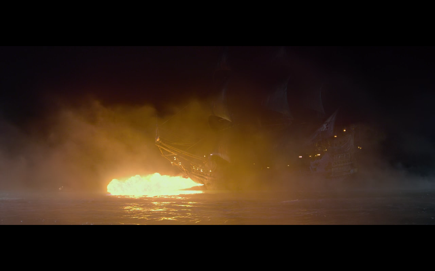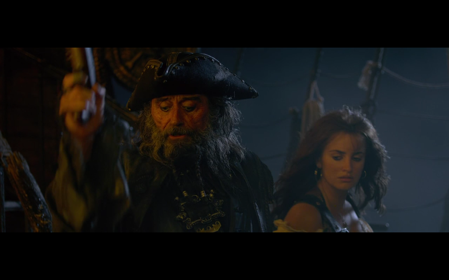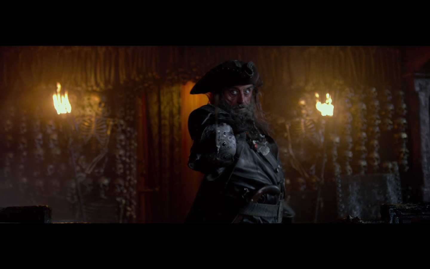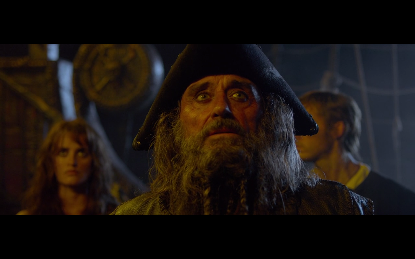 Now we pull out and see this badass ship. Why are ships always contained to their movie? If I’d been Barbossa in the first movie, I’d have first conquered the seas. They were all immortal. Fight Davy Jones and win. Fight all the other pirate lords and WIN. Fight Blackbeard and kill him. Take their ships. When Jack convinces Barbossa to become a “commodore” you have to wonder why Barbossa hadn’t done so first. You definitely look for the last pieces so that you can be ready to lift the curse. But you obviously use the curse to your advantage while it’s on you.Take out some of the more hardy competition. And apparently, Blackbeard didn’t factor into any of the last two movies’ plots at all, either.