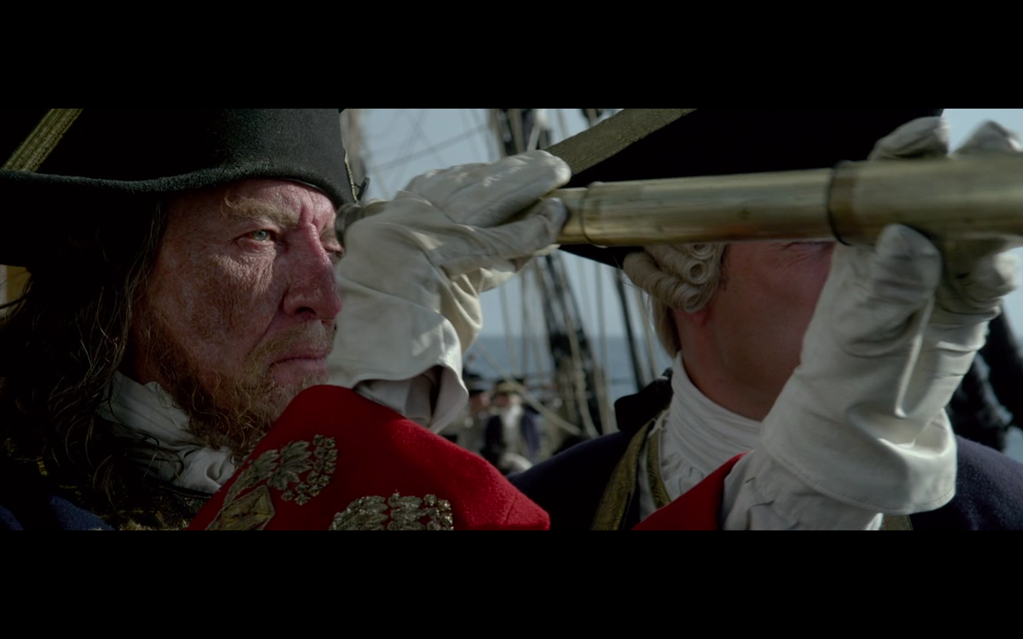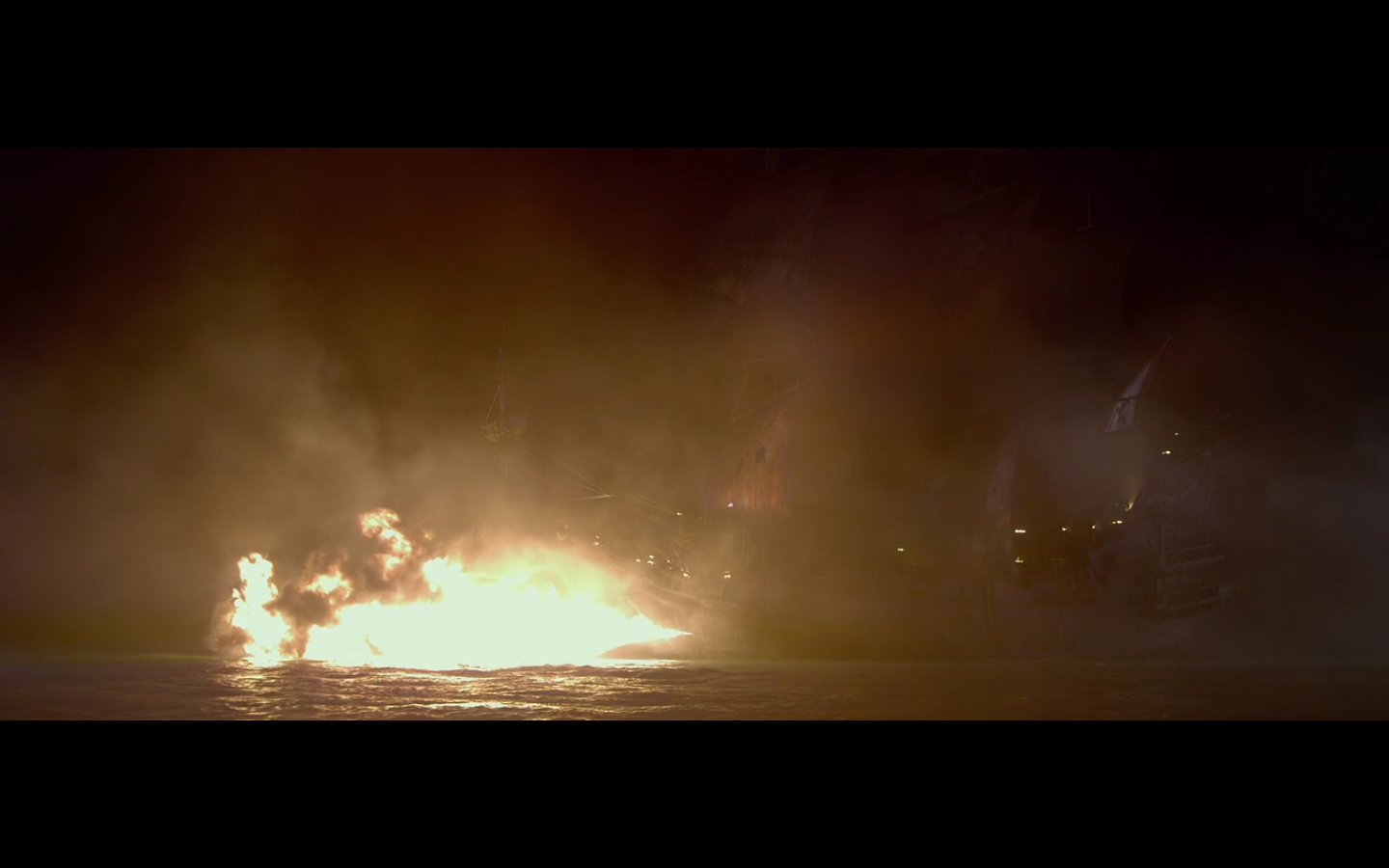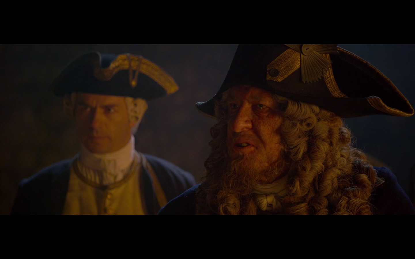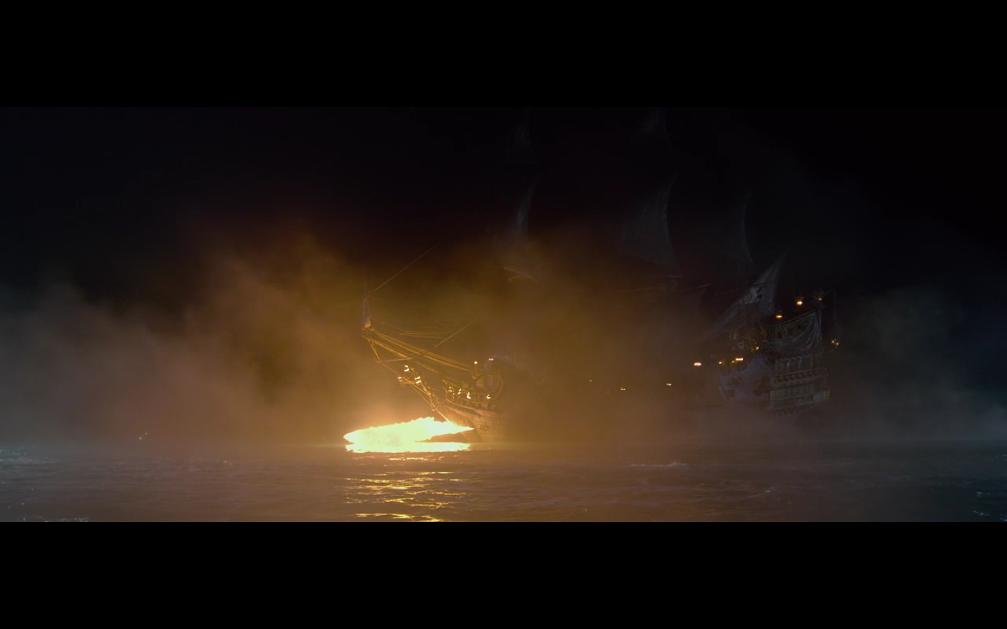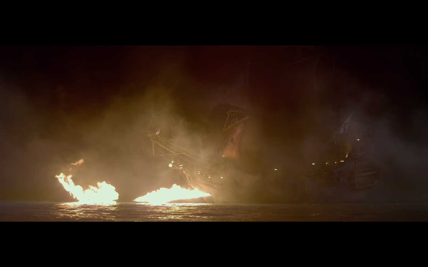 Now we pull out and see this badass ship. Why are ships always contained to their movie? If I’d been Barbossa in the first movie, I’d have first conquered the seas. They were all immortal. Fight Davy Jones and win. Fight all the other pirate lords and WIN. Fight Blackbeard and kill him. Take their ships. When Jack convinces Barbossa to become a “commodore” you have to wonder why Barbossa hadn’t done so first. You definitely look for the last pieces so that you can be ready to lift the curse. But you obviously use the curse to your advantage while it’s on you.Take out some of the more hardy competition. And apparently, Blackbeard didn’t factor into any of the last two movies’ plots at all, either.