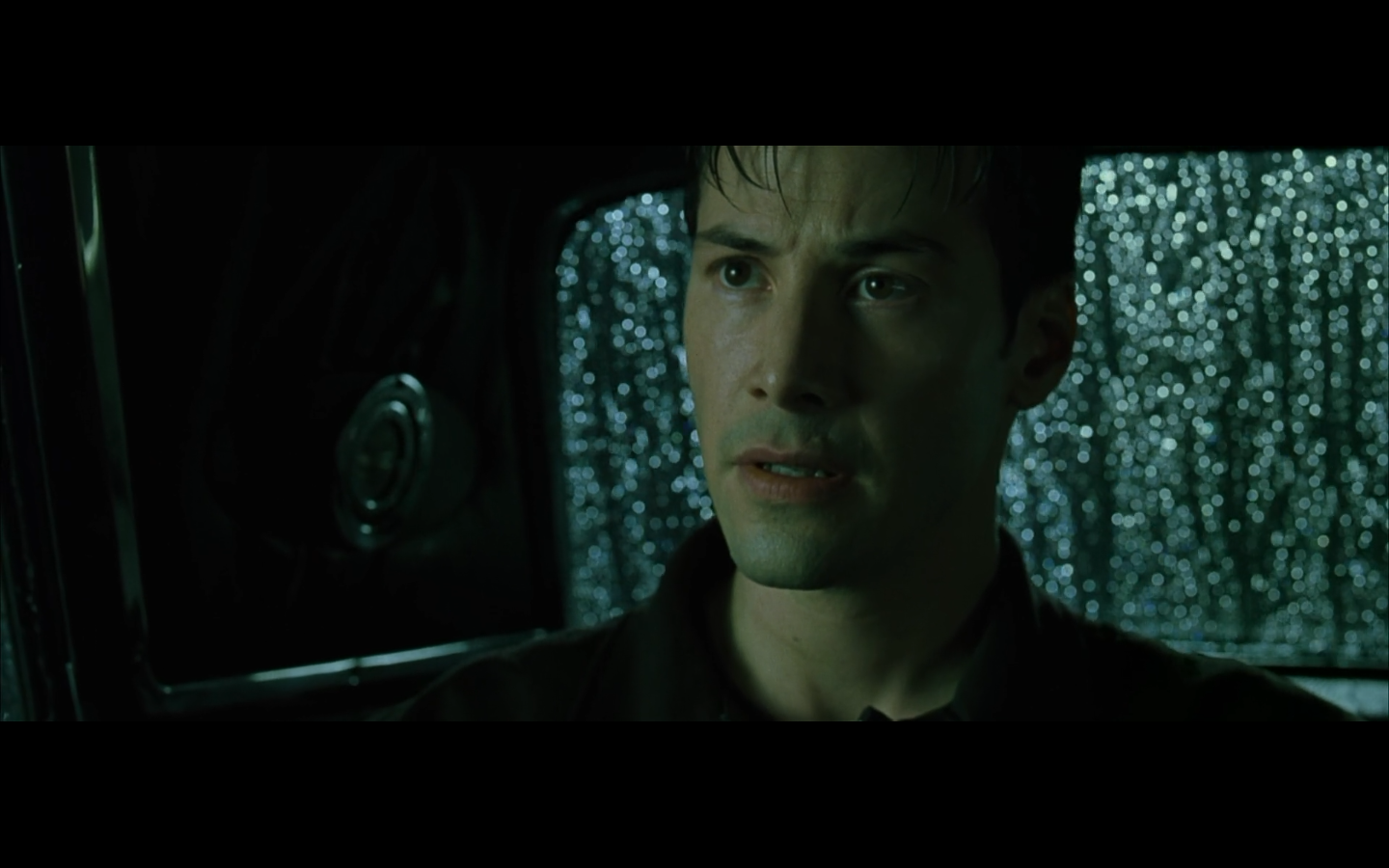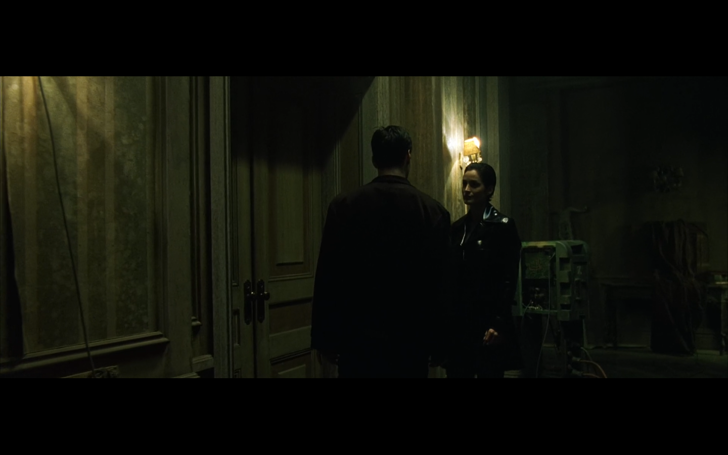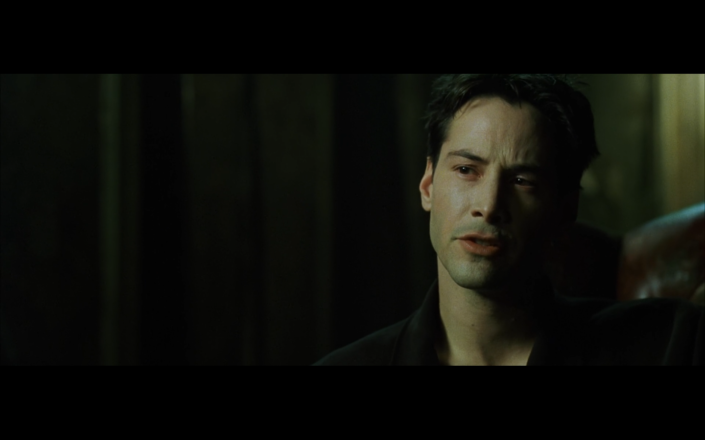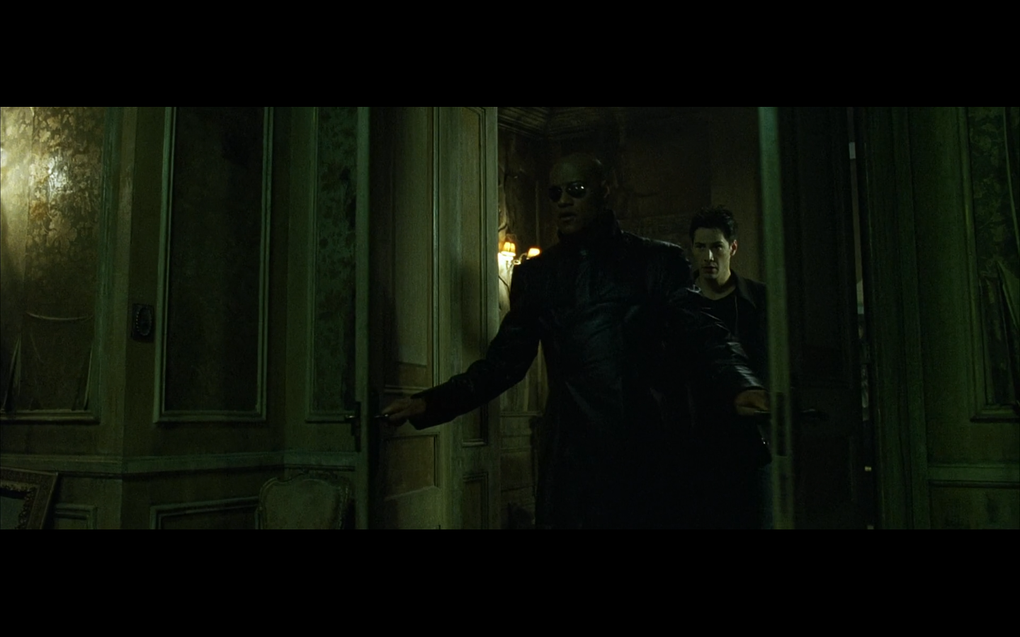 Keanu looks at a door.