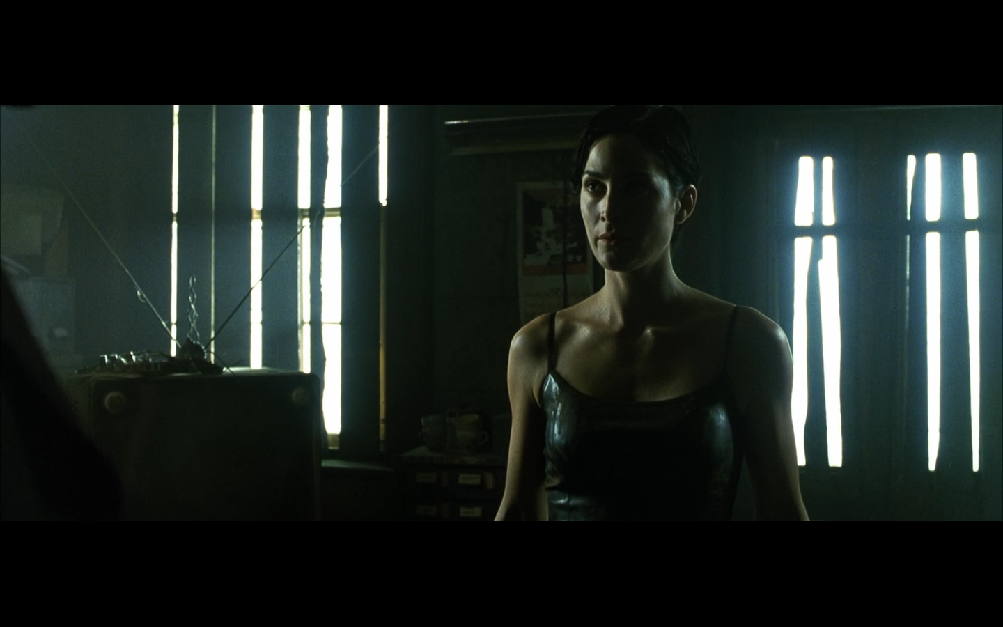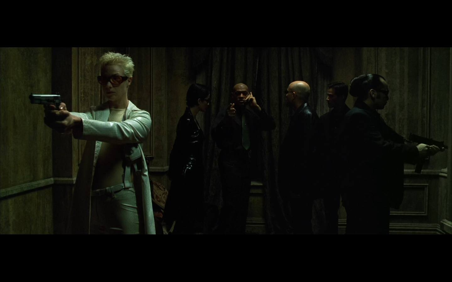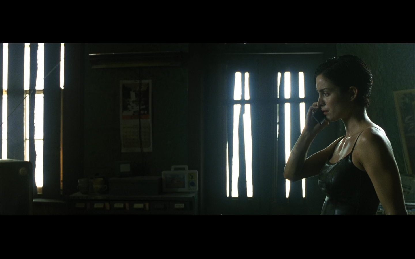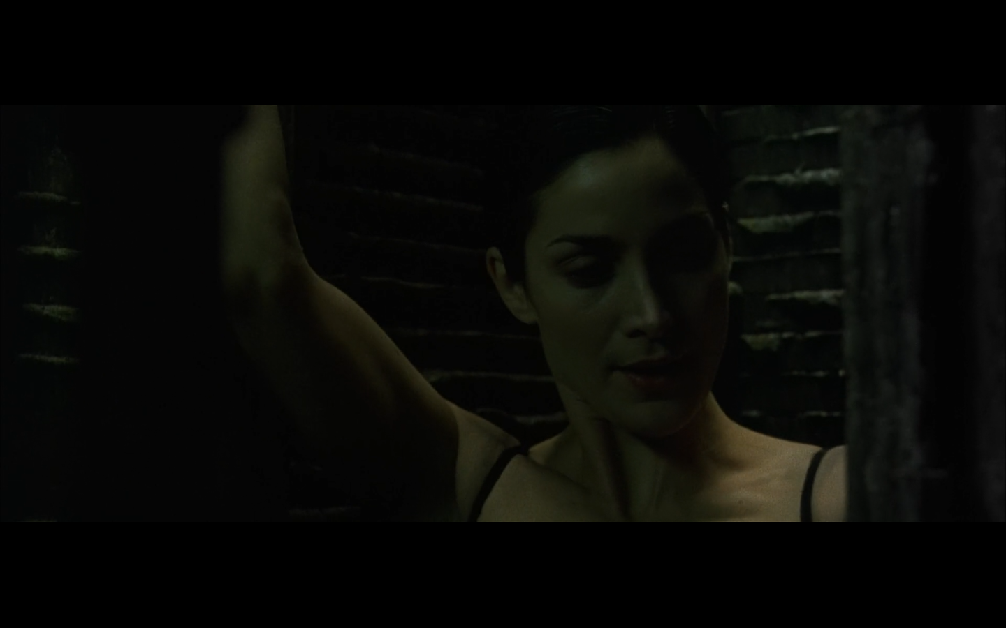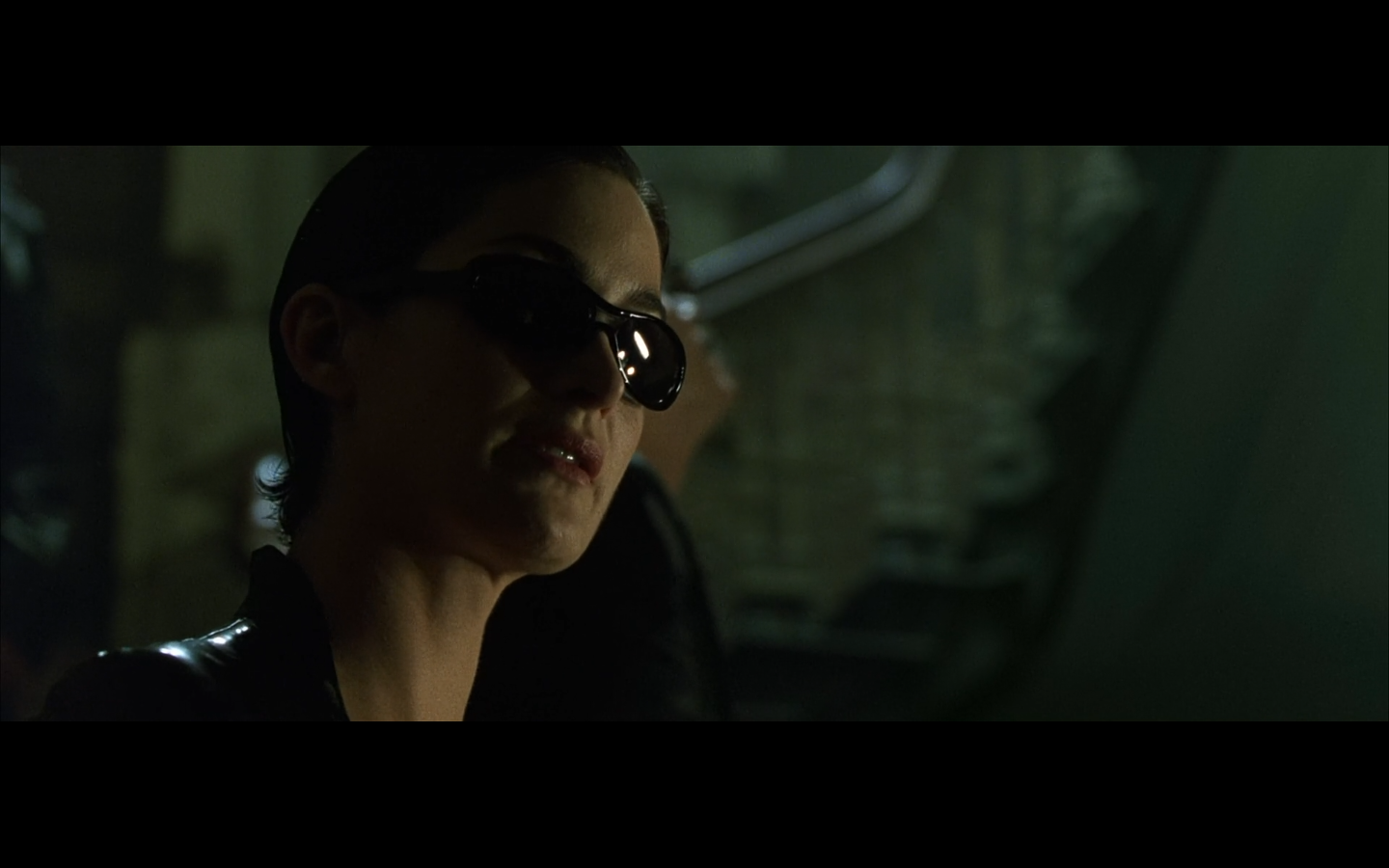 P.S. At the end of this shot, you can see Carrie Anne Moss fumbling with the door handle. They cut away right before badass became awkward.