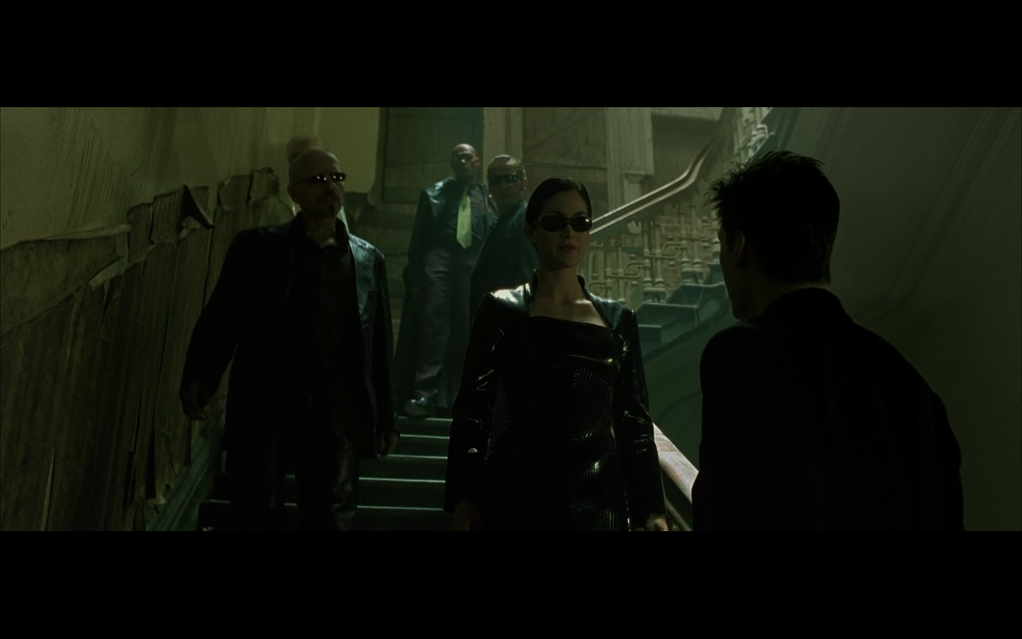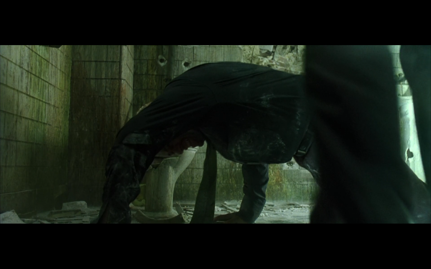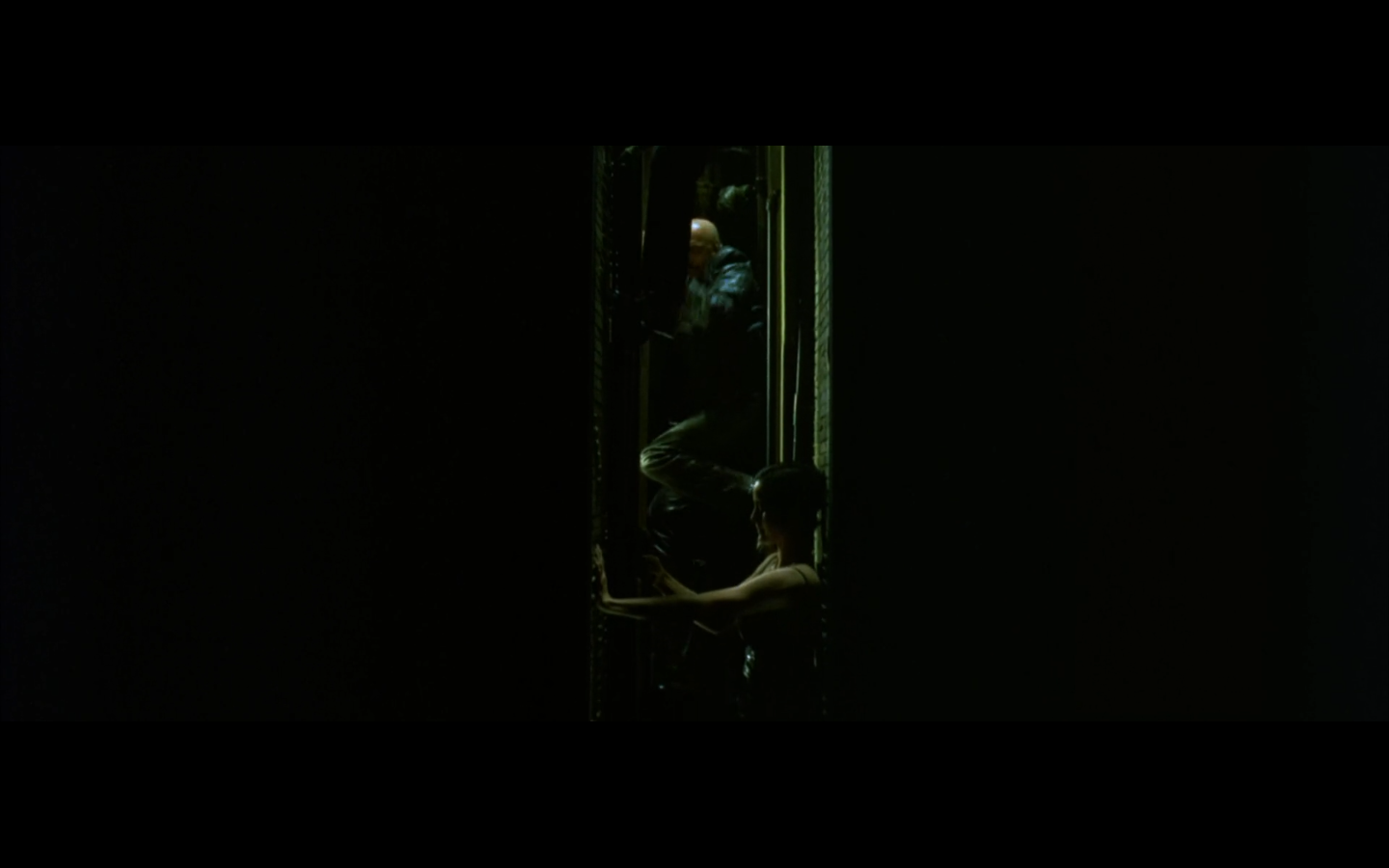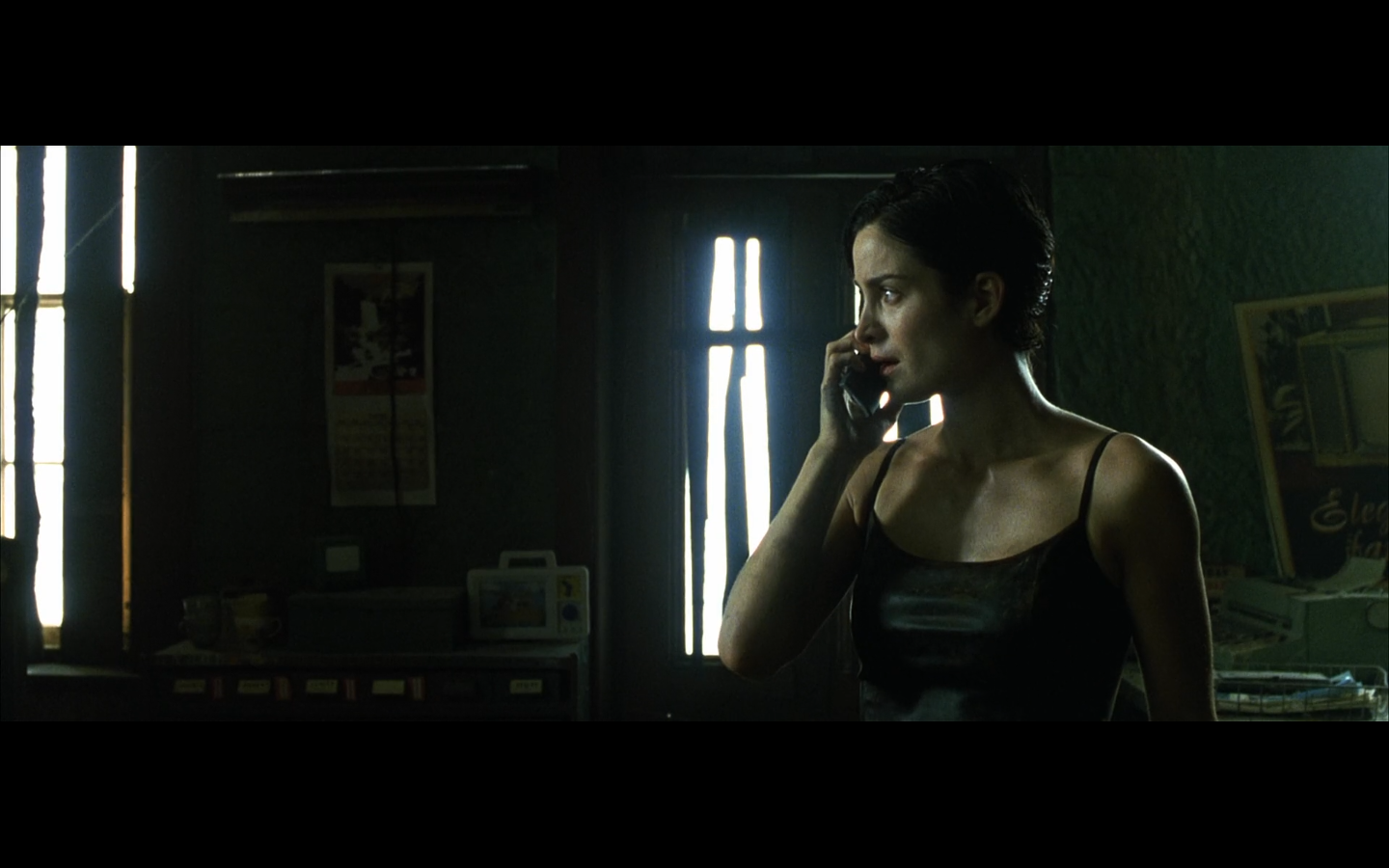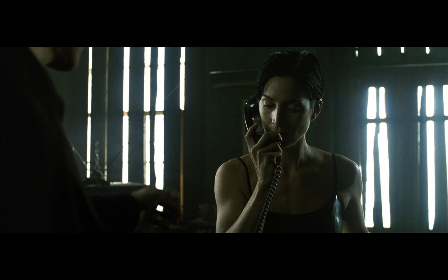 P.S. At the end of this shot, you can see Carrie Anne Moss fumbling with the door handle. They cut away right before badass became awkward.