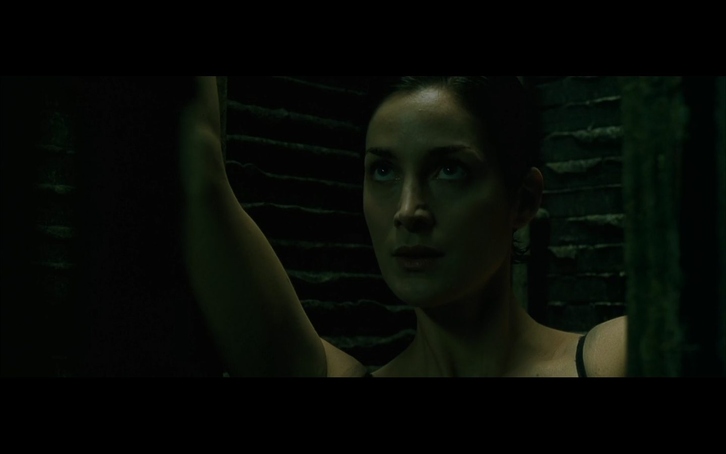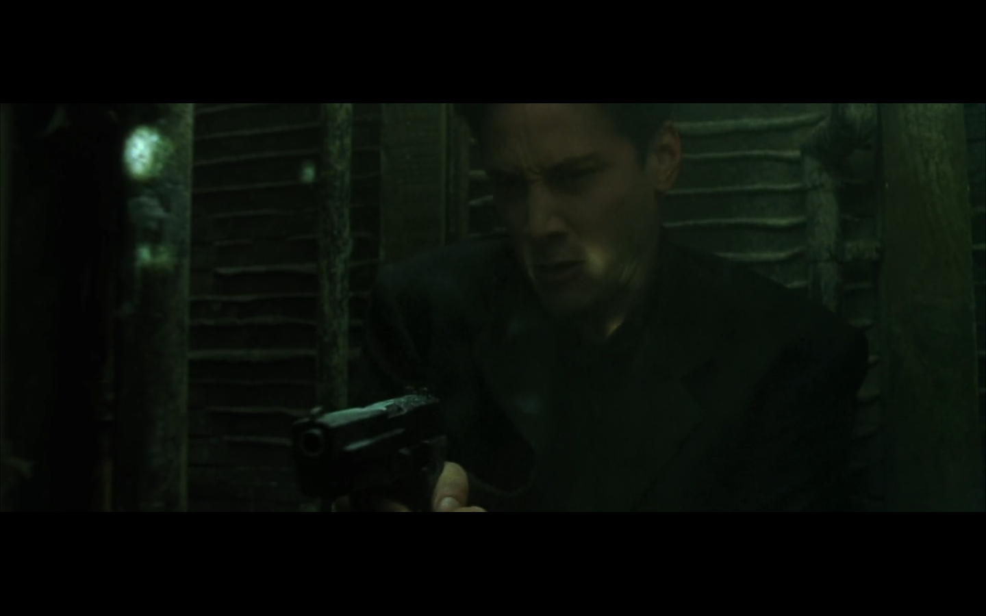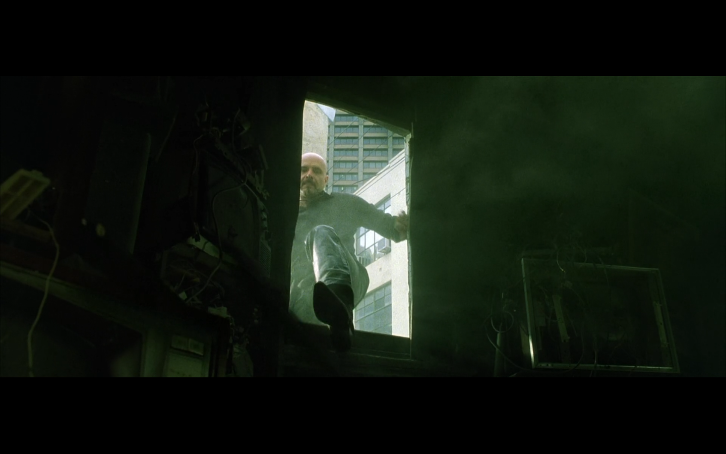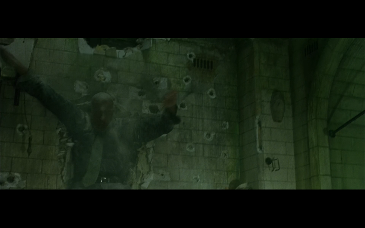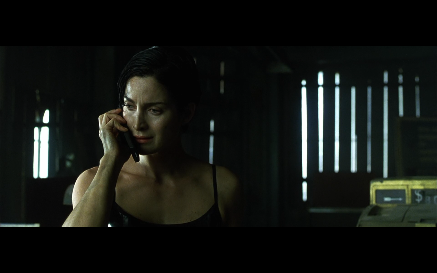 P.S. At the end of this shot, you can see Carrie Anne Moss fumbling with the door handle. They cut away right before badass became awkward.