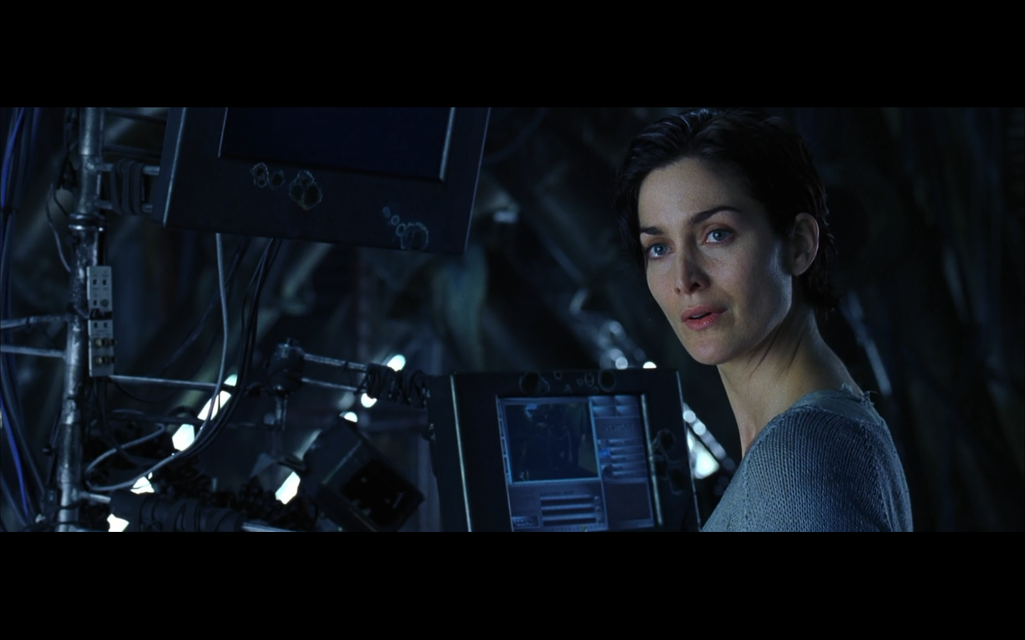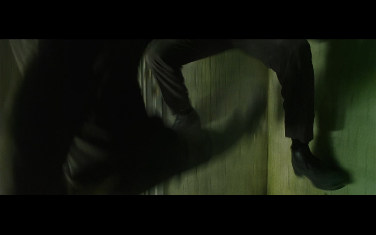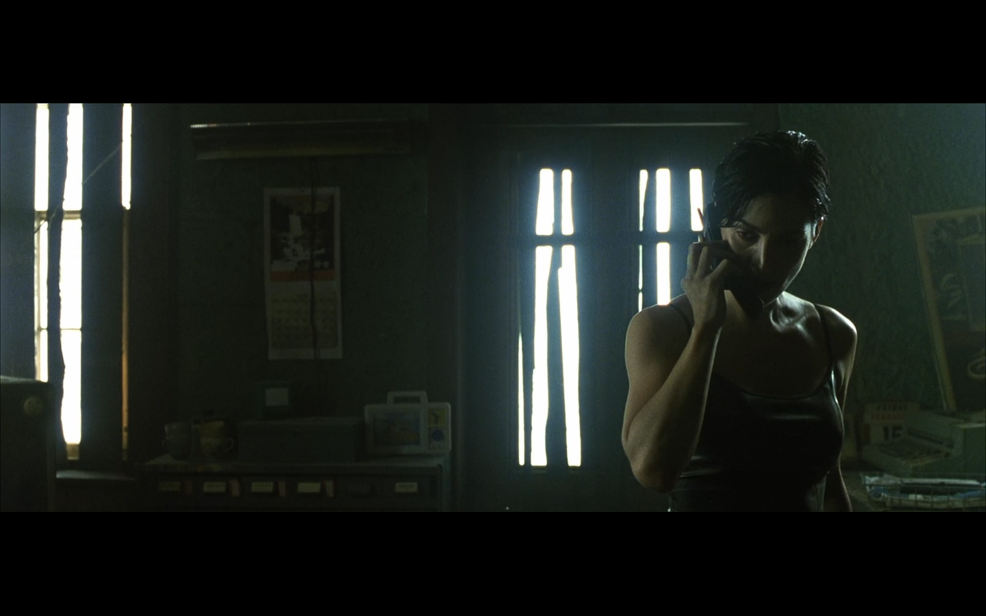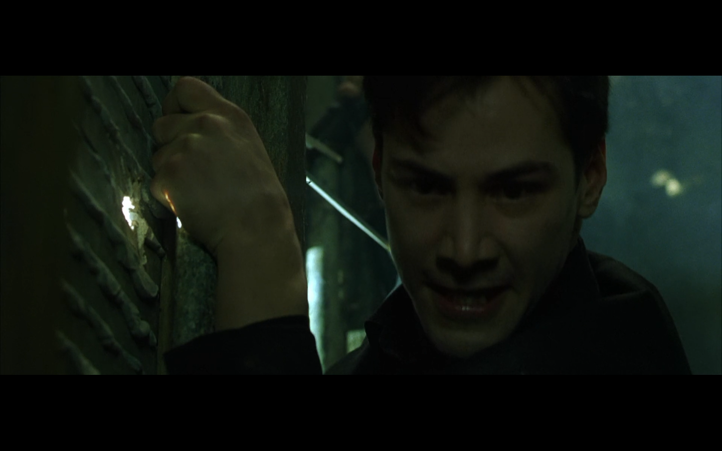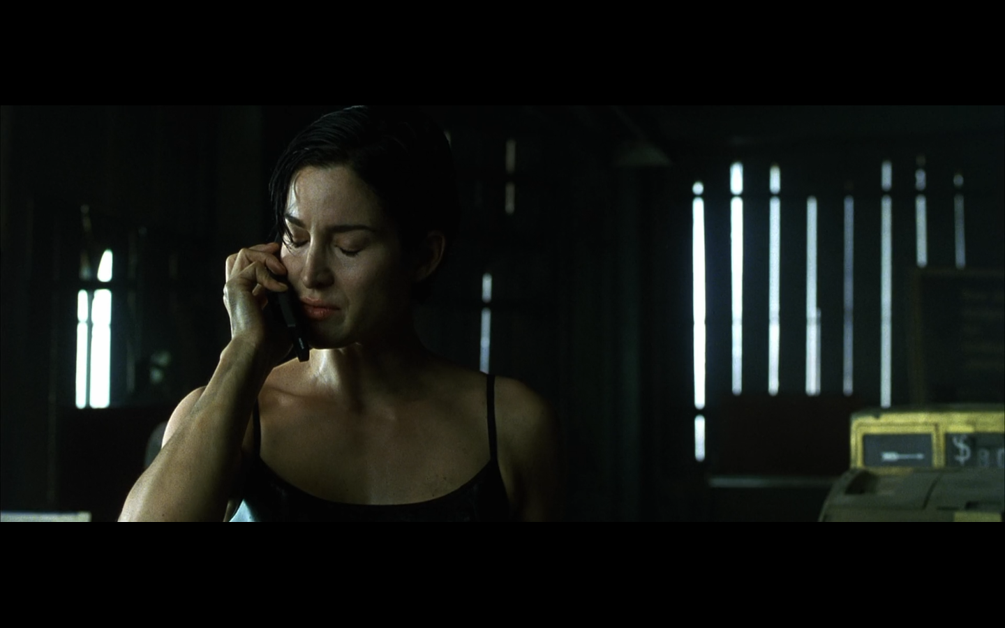 P.S. At the end of this shot, you can see Carrie Anne Moss fumbling with the door handle. They cut away right before badass became awkward.