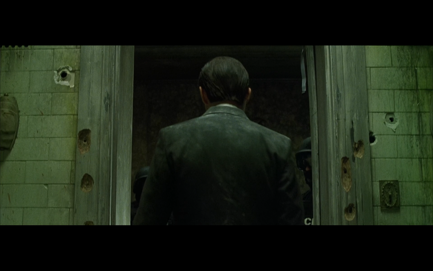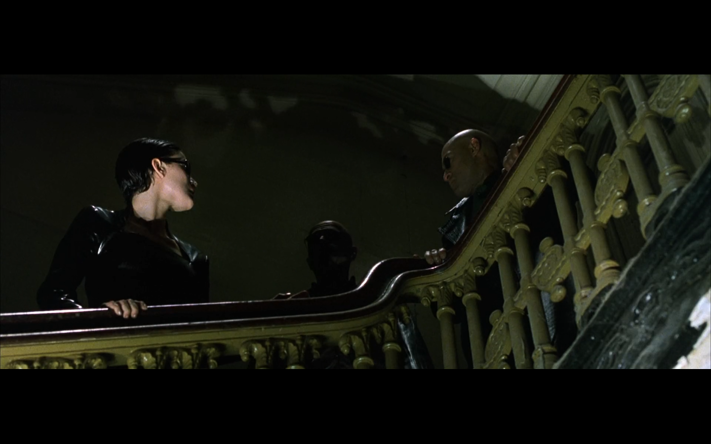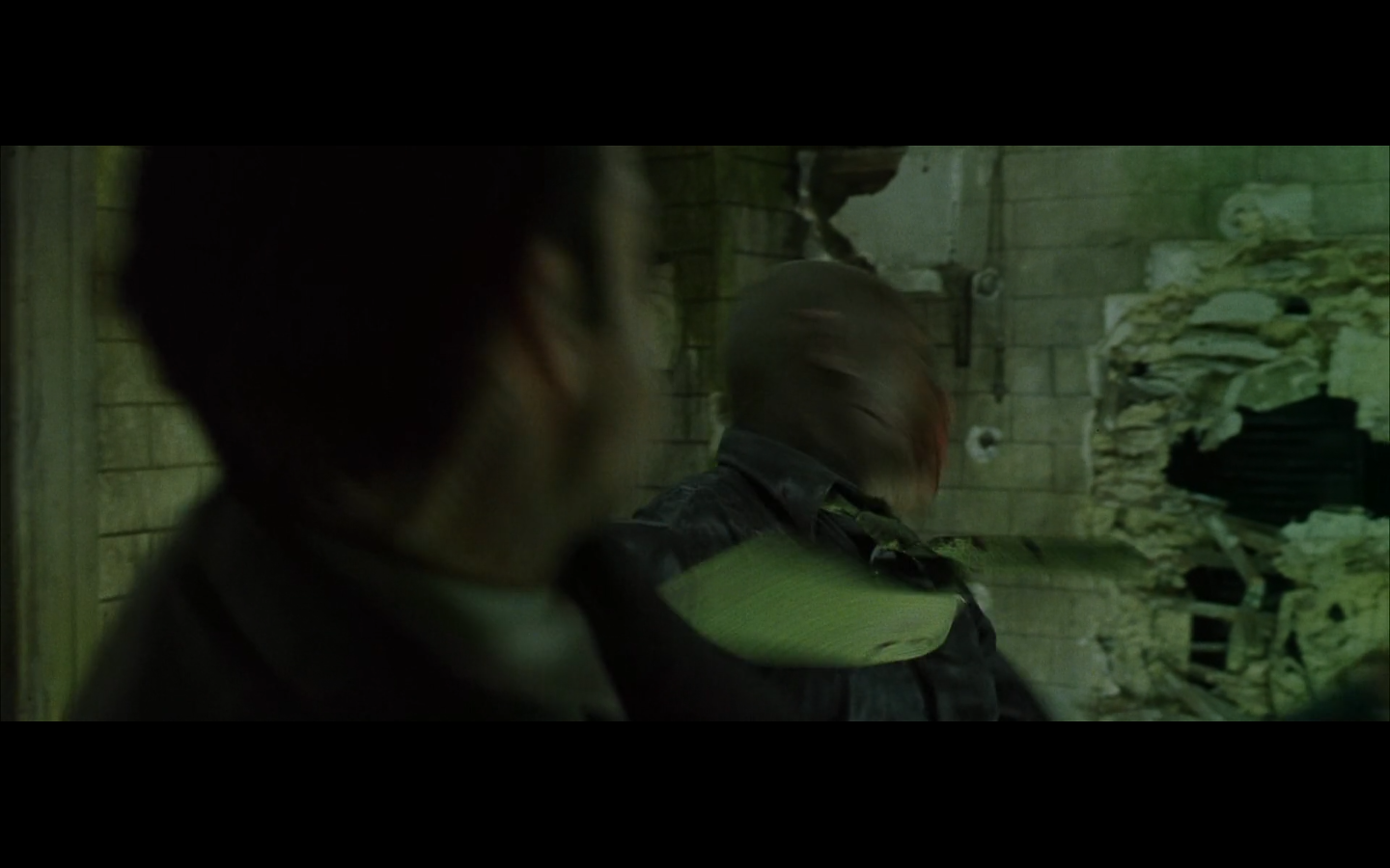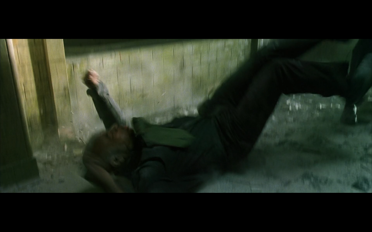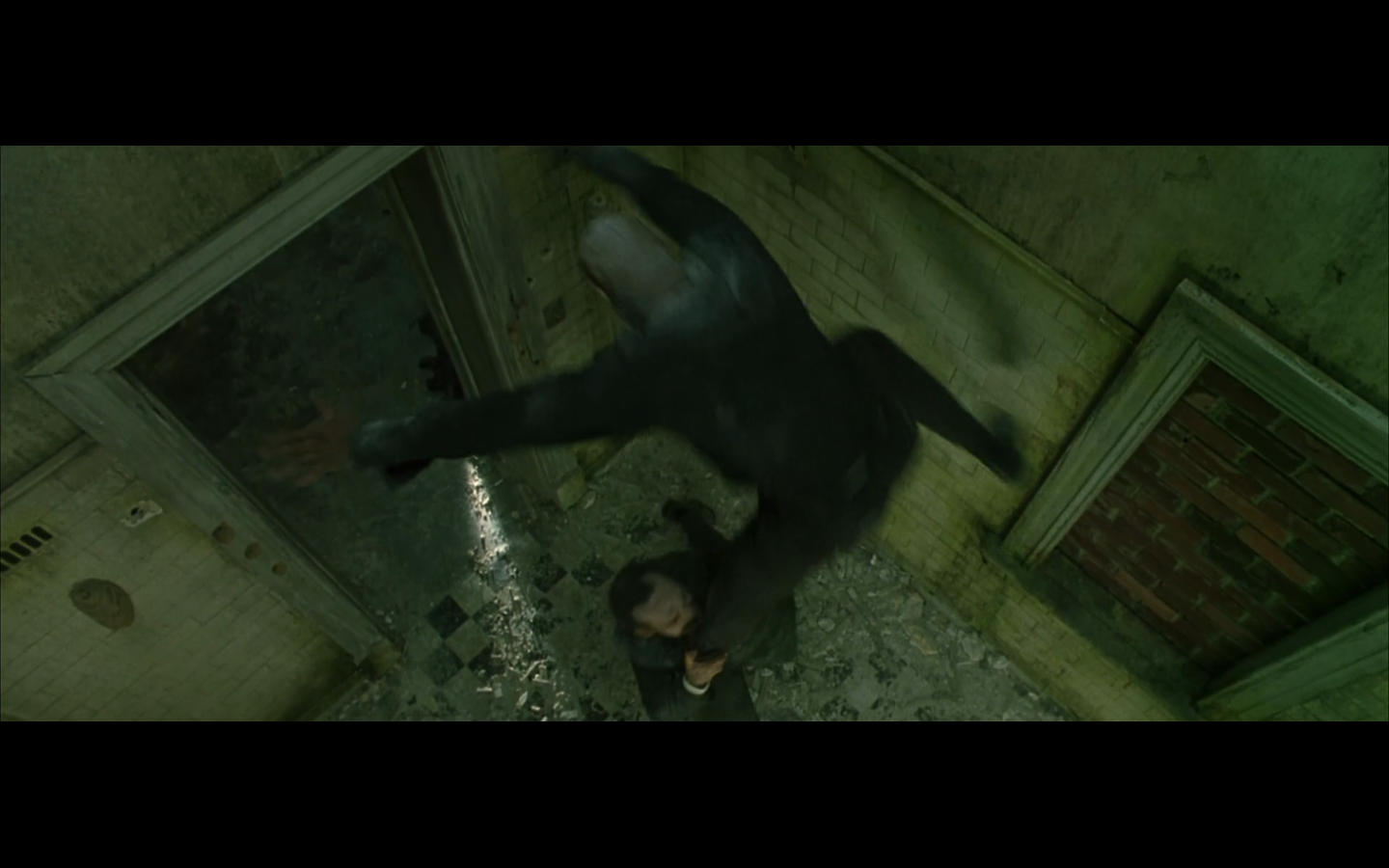 P.S. At the end of this shot, you can see Carrie Anne Moss fumbling with the door handle. They cut away right before badass became awkward.
