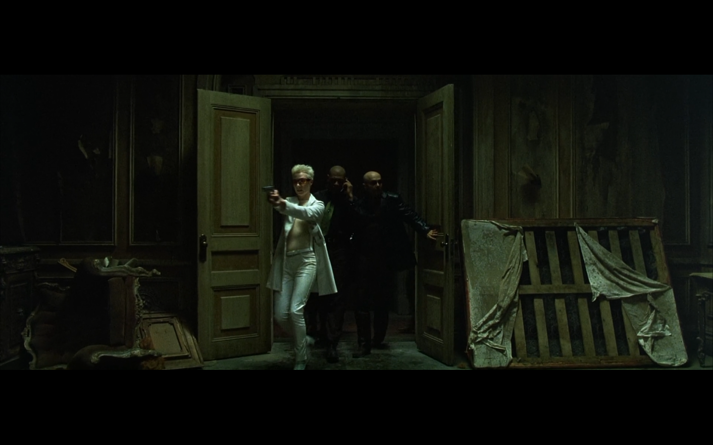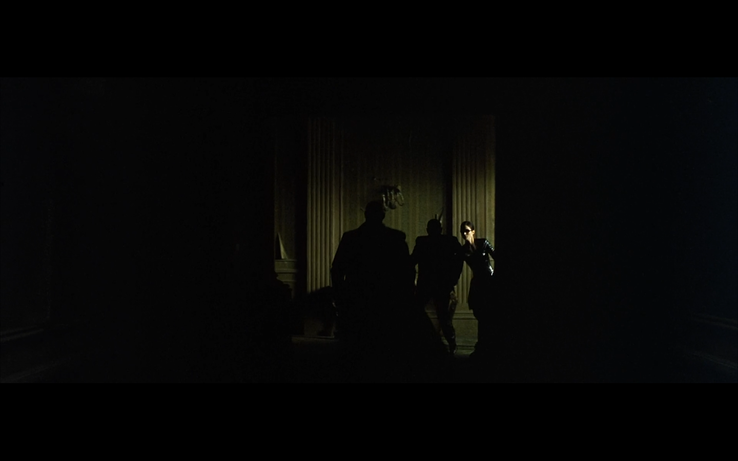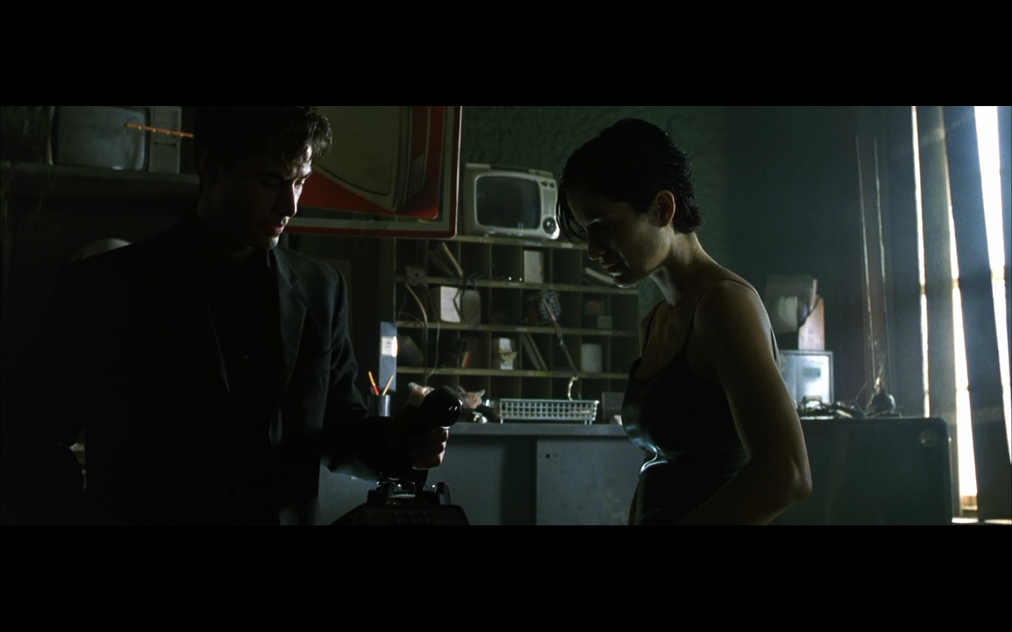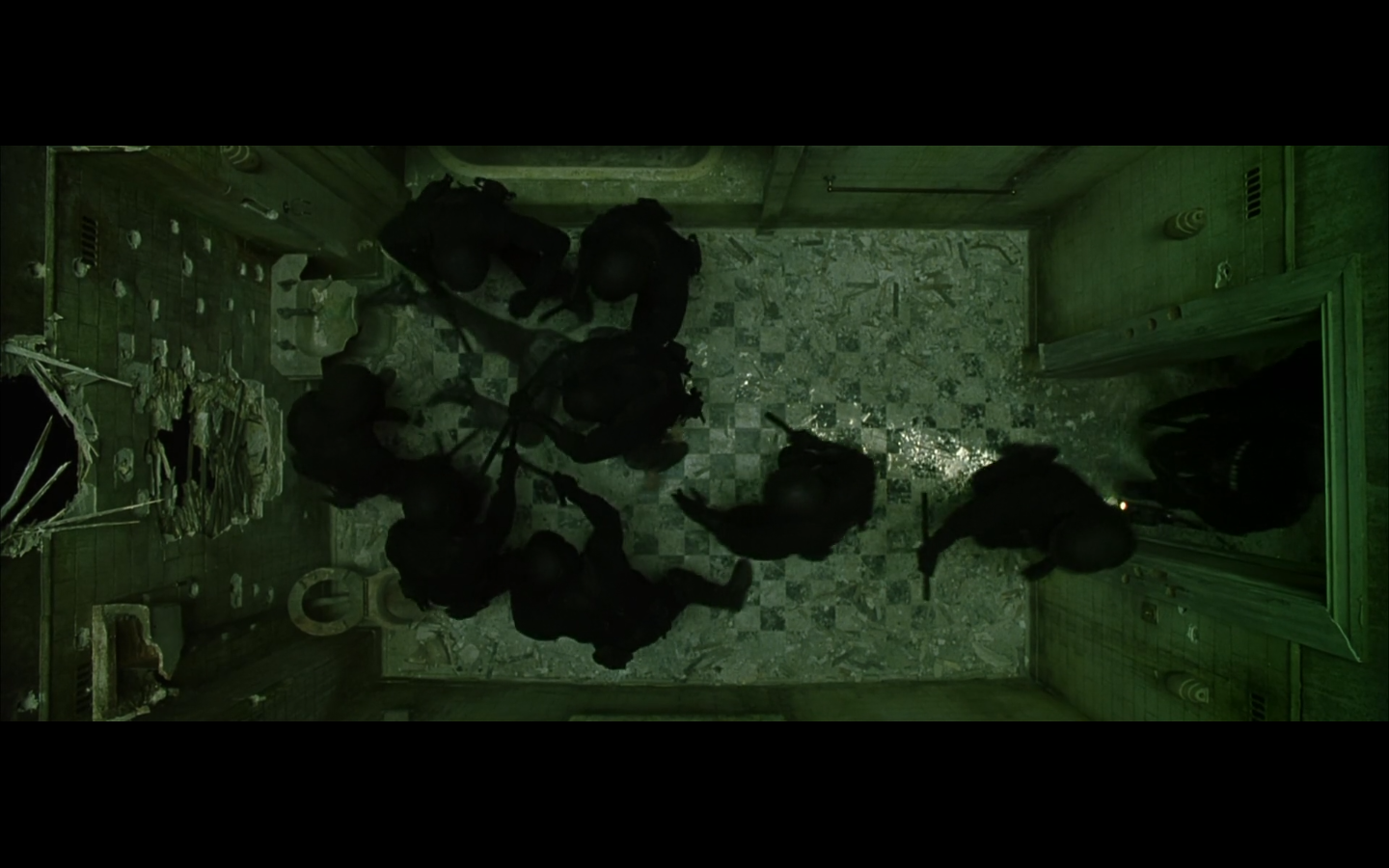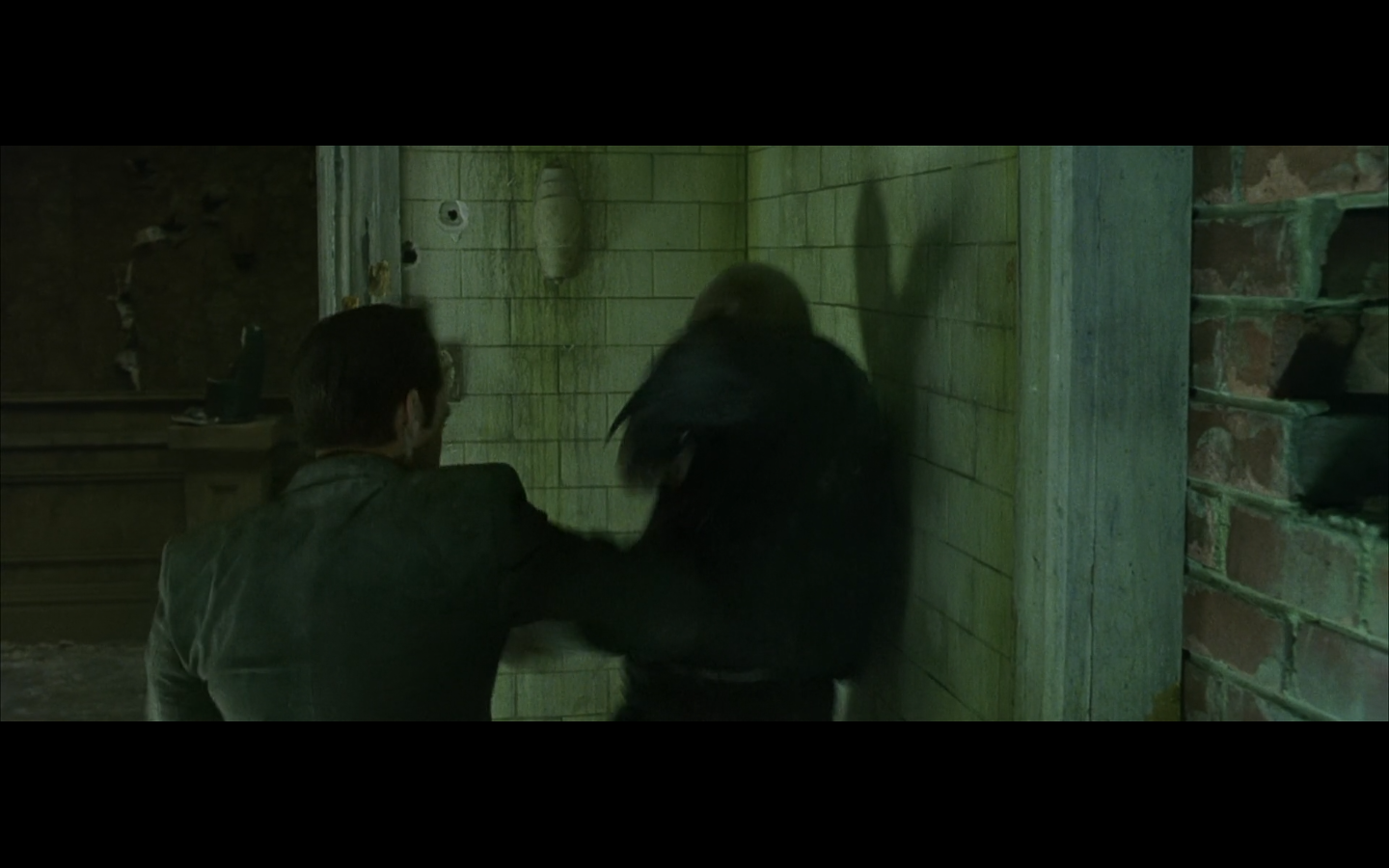 P.S. At the end of this shot, you can see Carrie Anne Moss fumbling with the door handle. They cut away right before badass became awkward.