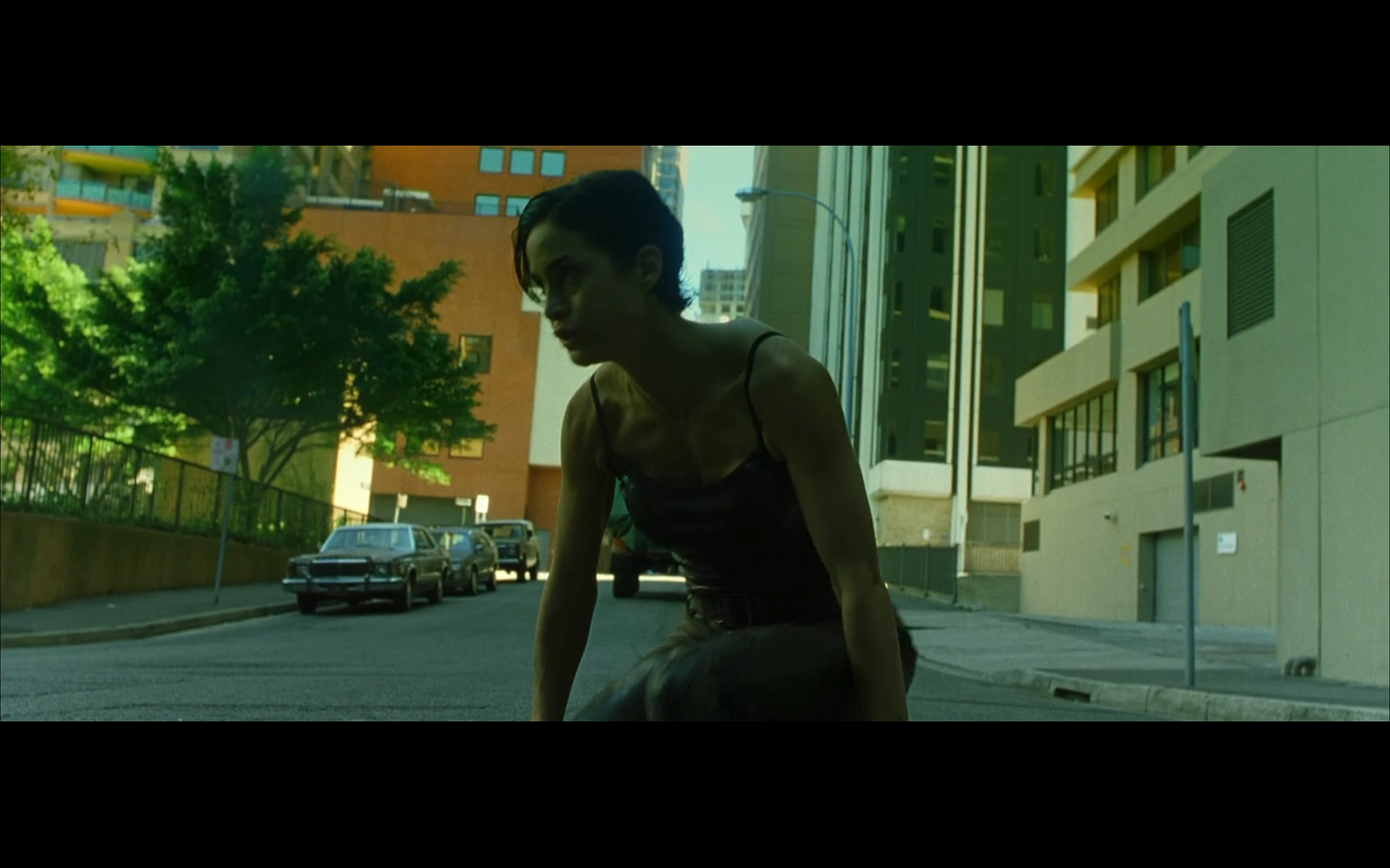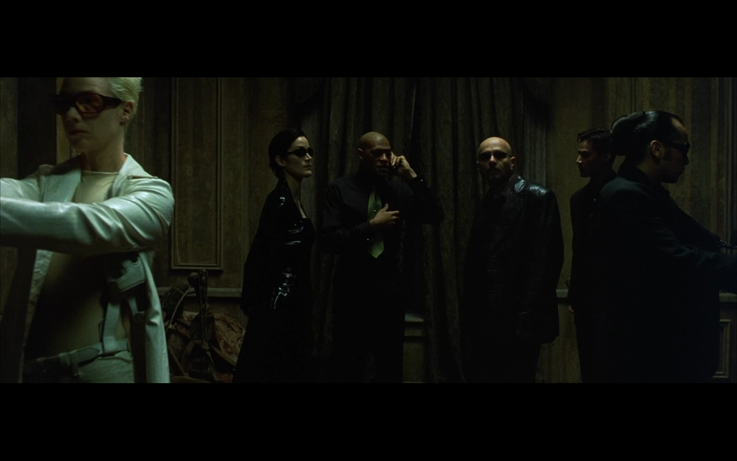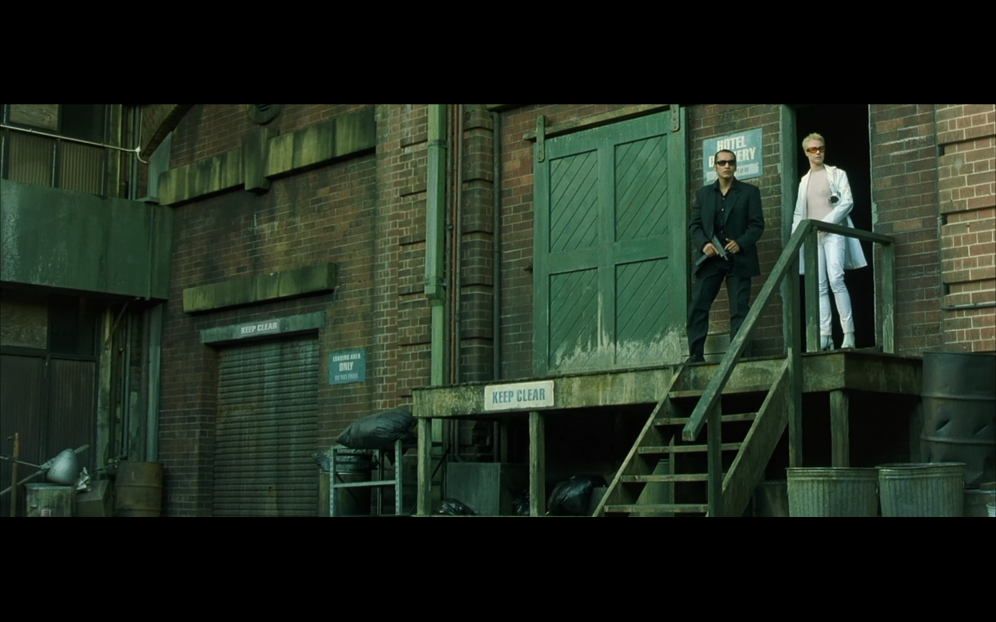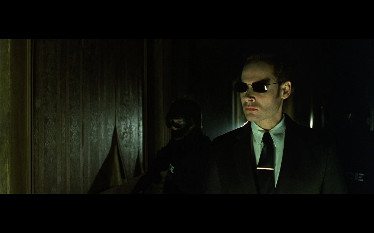 P.S. At the end of this shot, you can see Carrie Anne Moss fumbling with the door handle. They cut away right before badass became awkward.