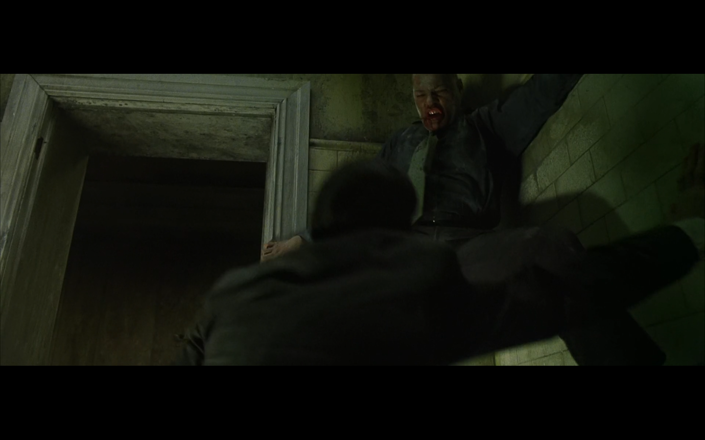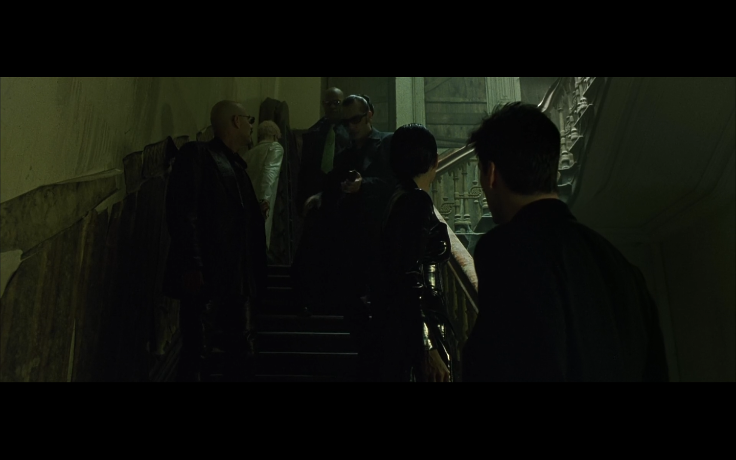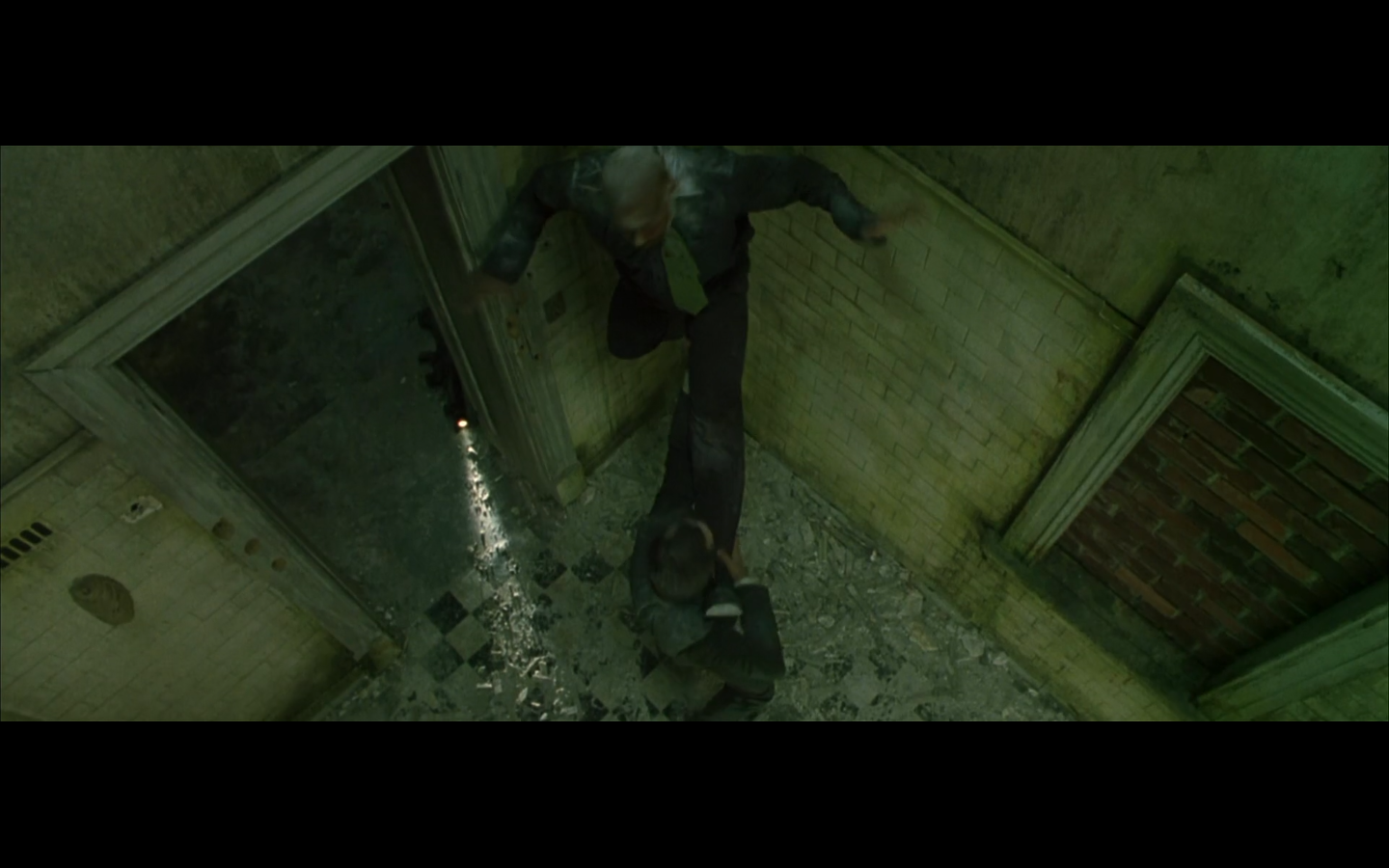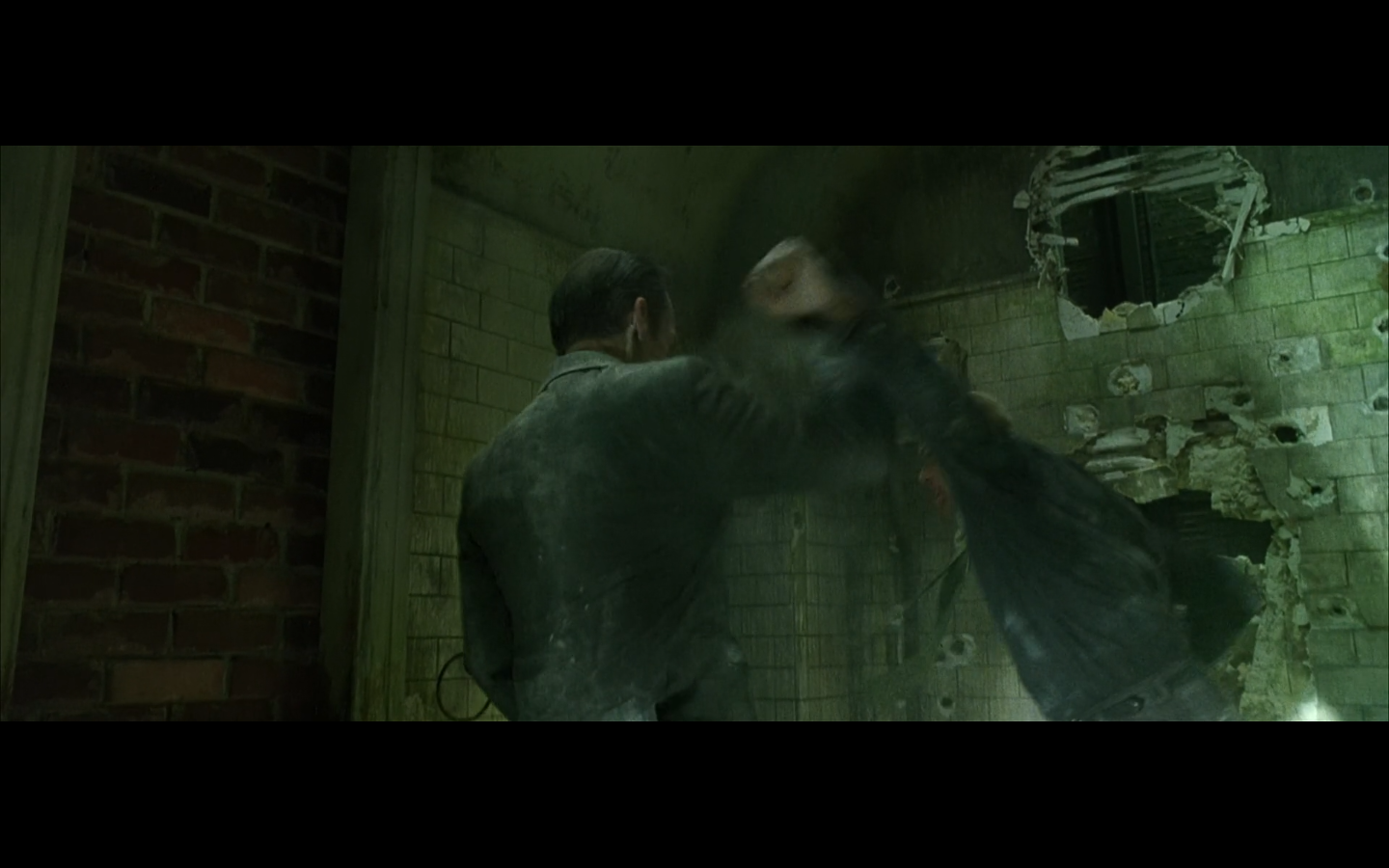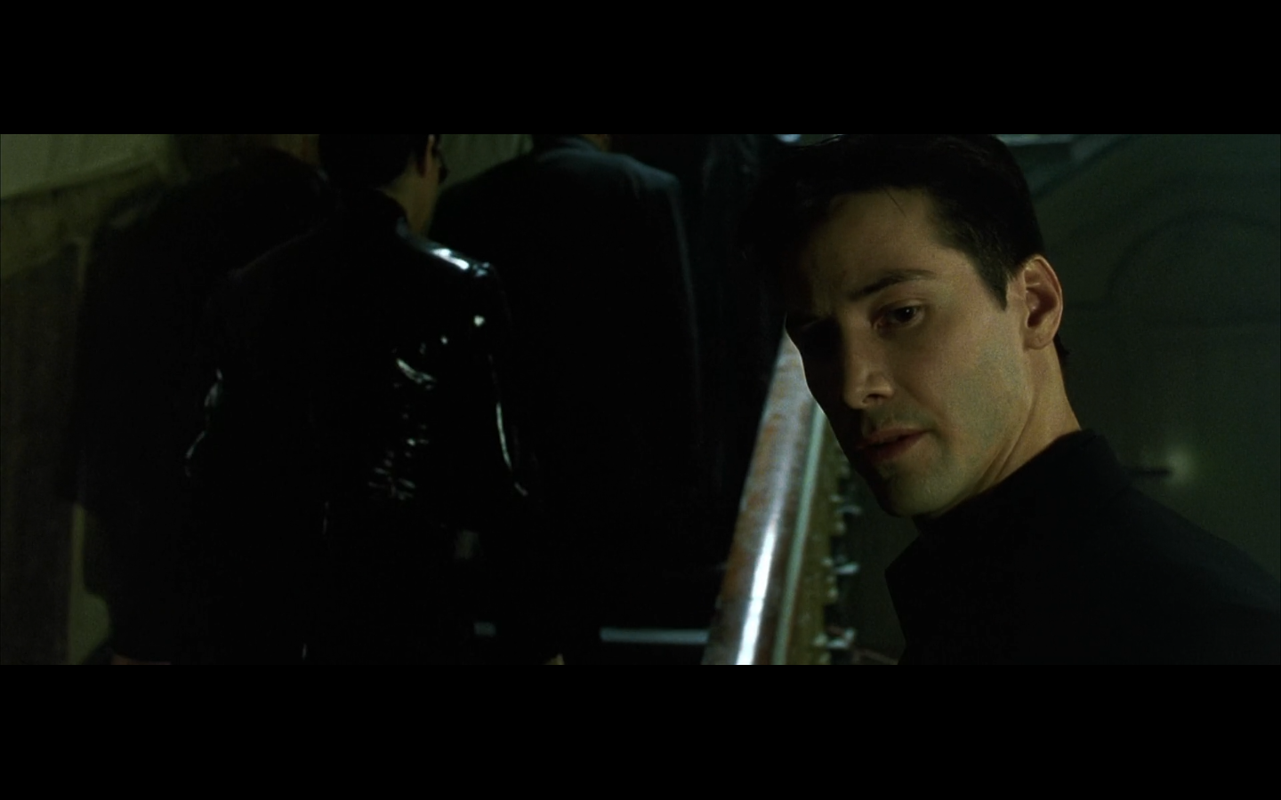 P.S. At the end of this shot, you can see Carrie Anne Moss fumbling with the door handle. They cut away right before badass became awkward.
