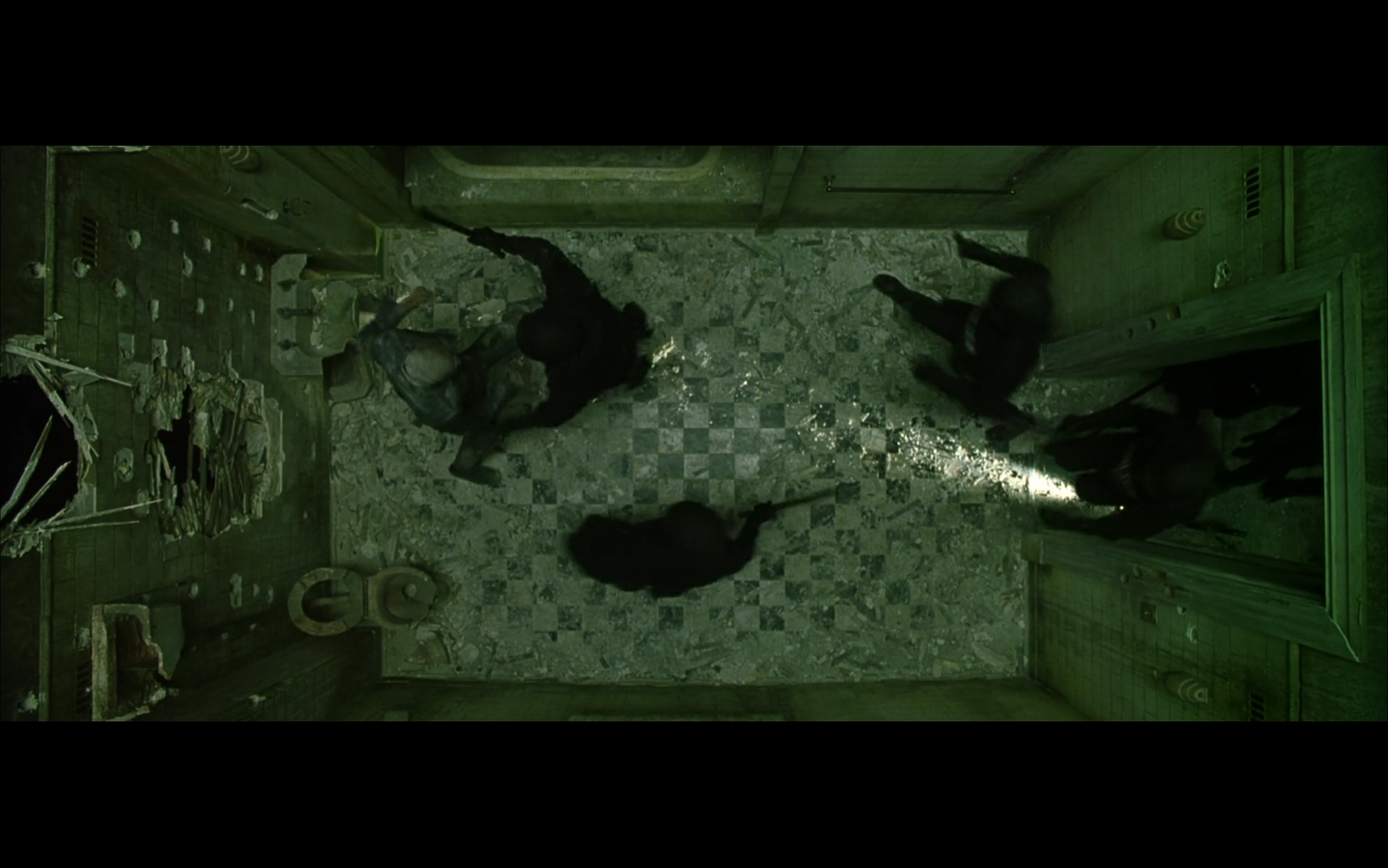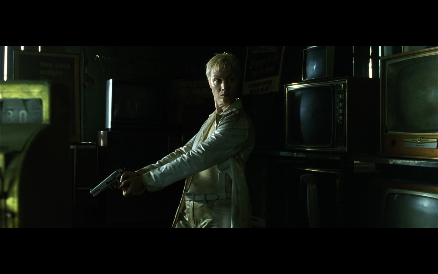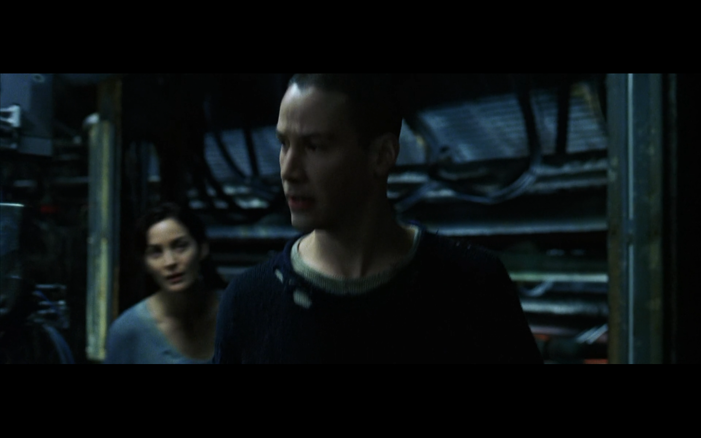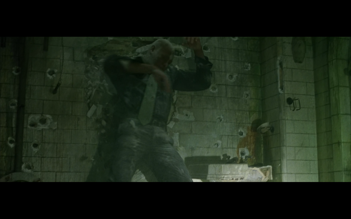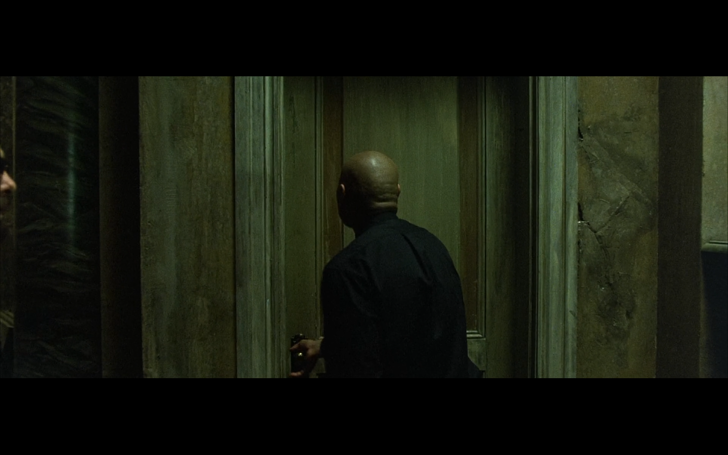 P.S. At the end of this shot, you can see Carrie Anne Moss fumbling with the door handle. They cut away right before badass became awkward.