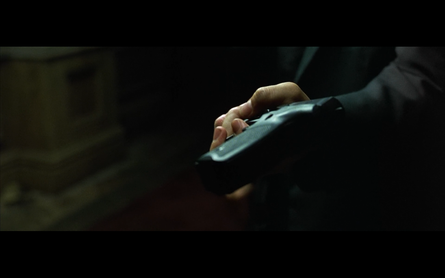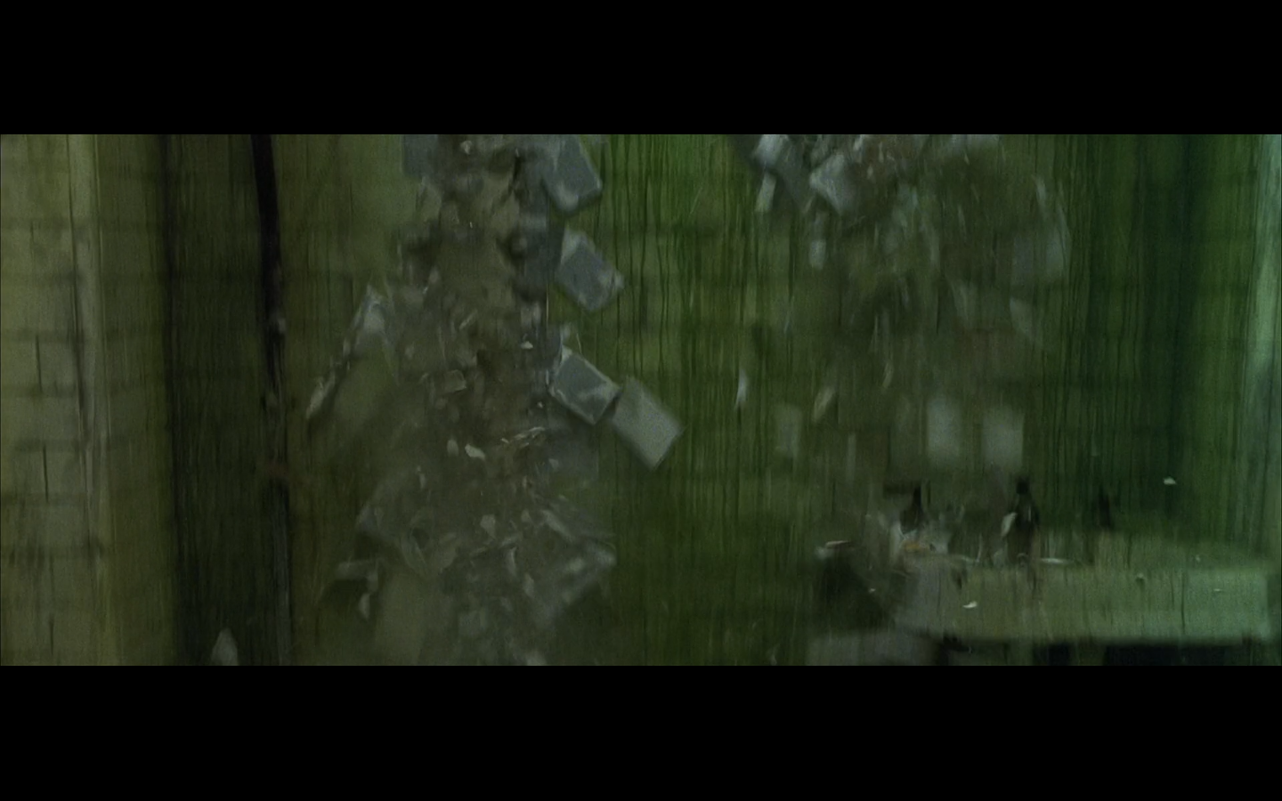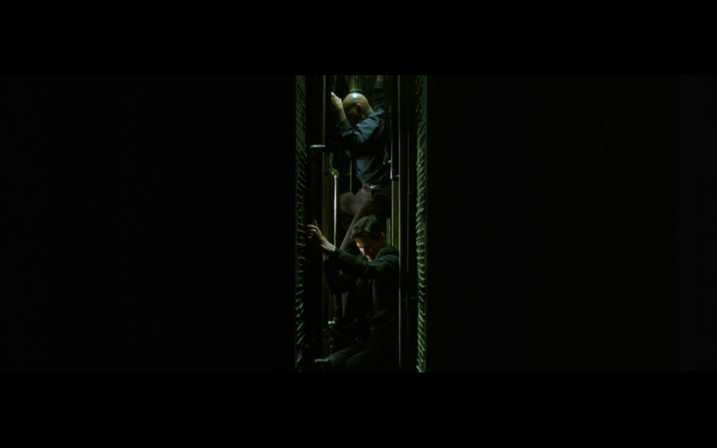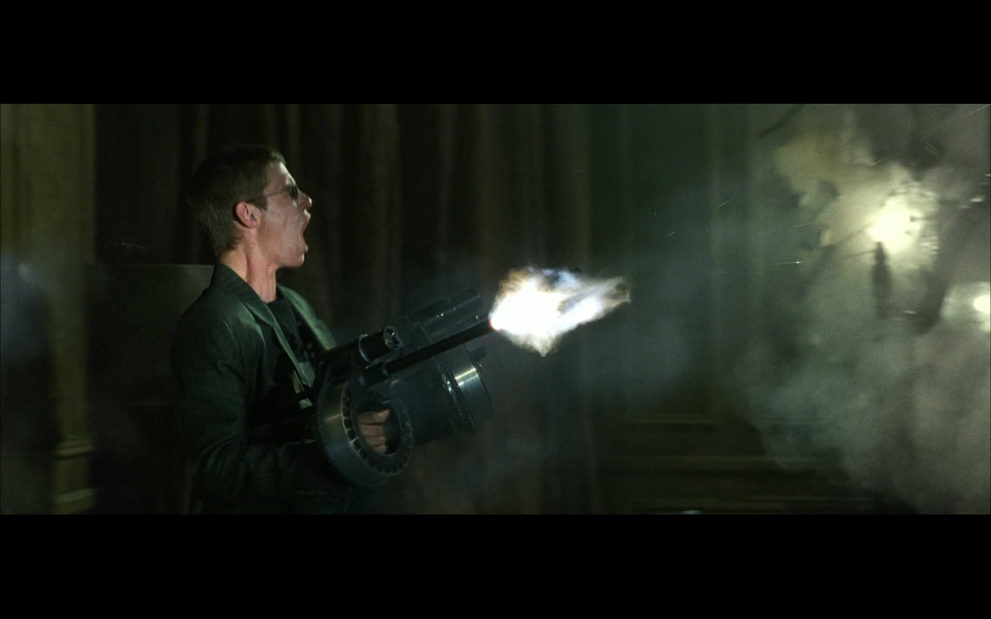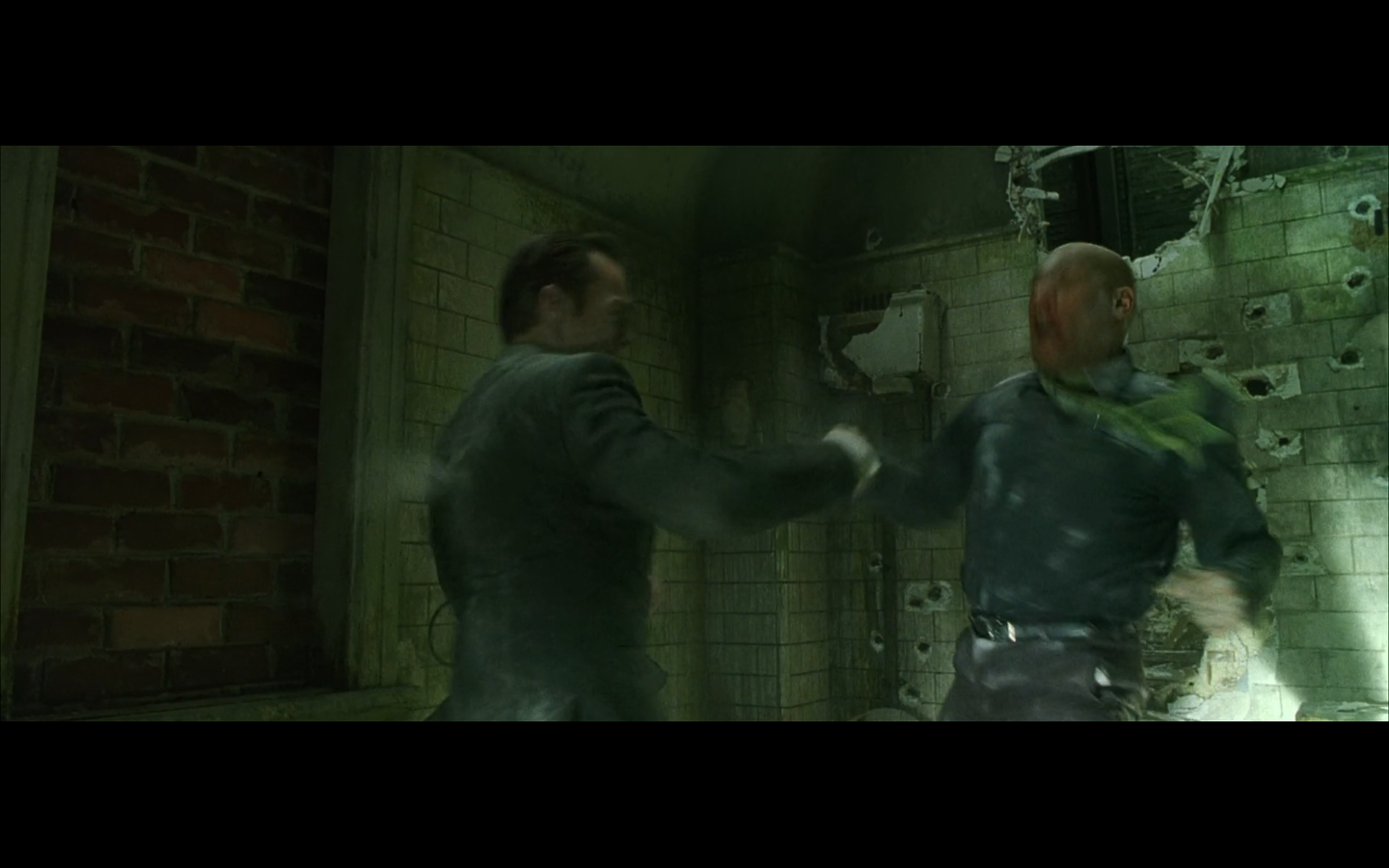 P.S. At the end of this shot, you can see Carrie Anne Moss fumbling with the door handle. They cut away right before badass became awkward.