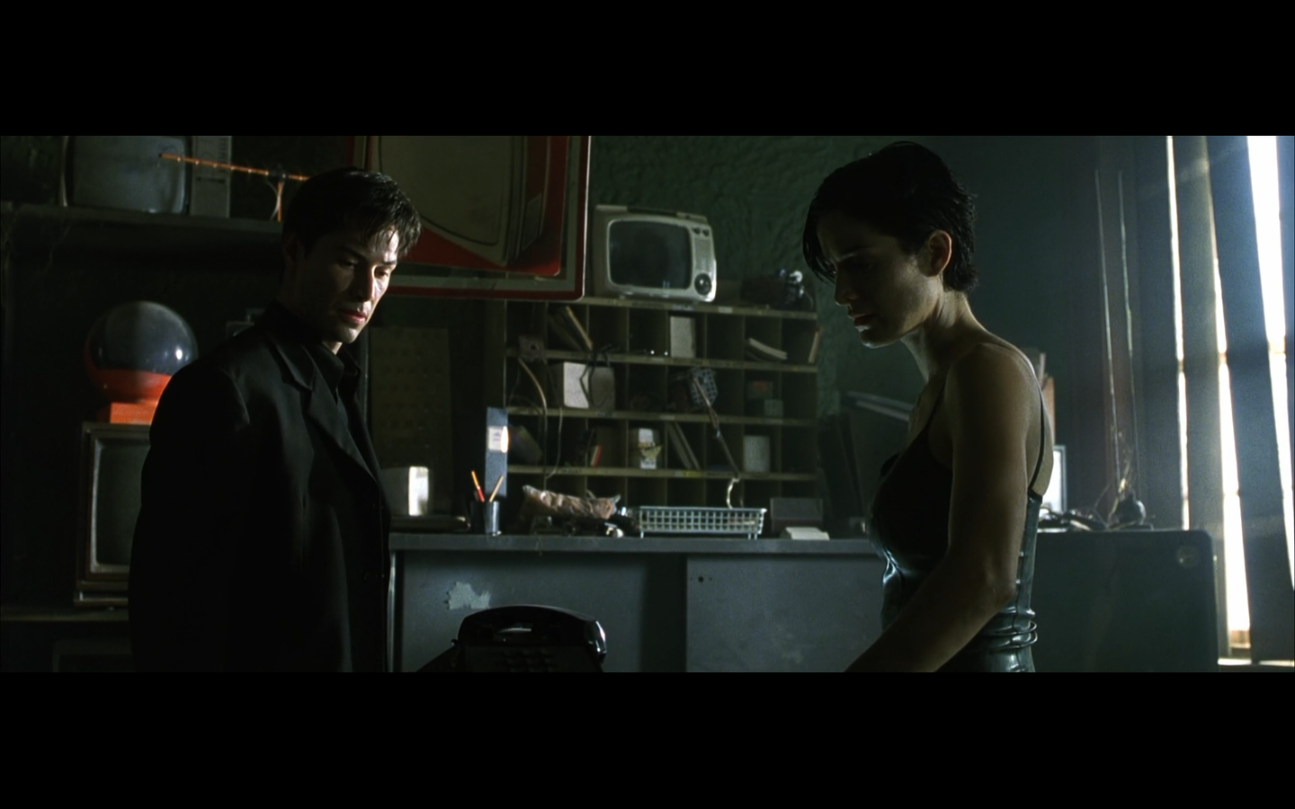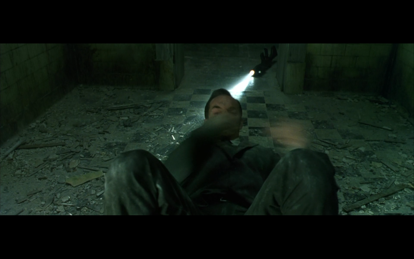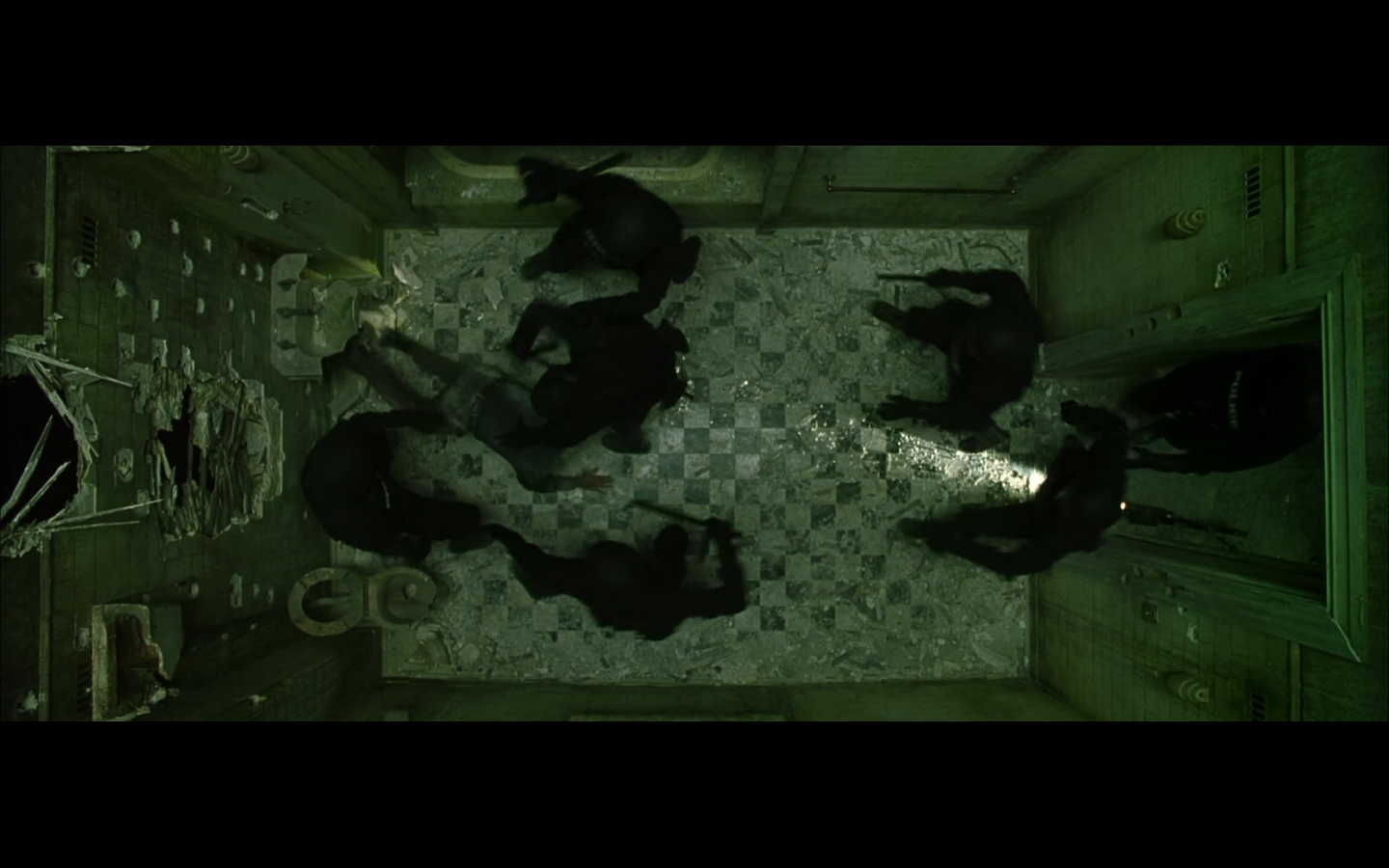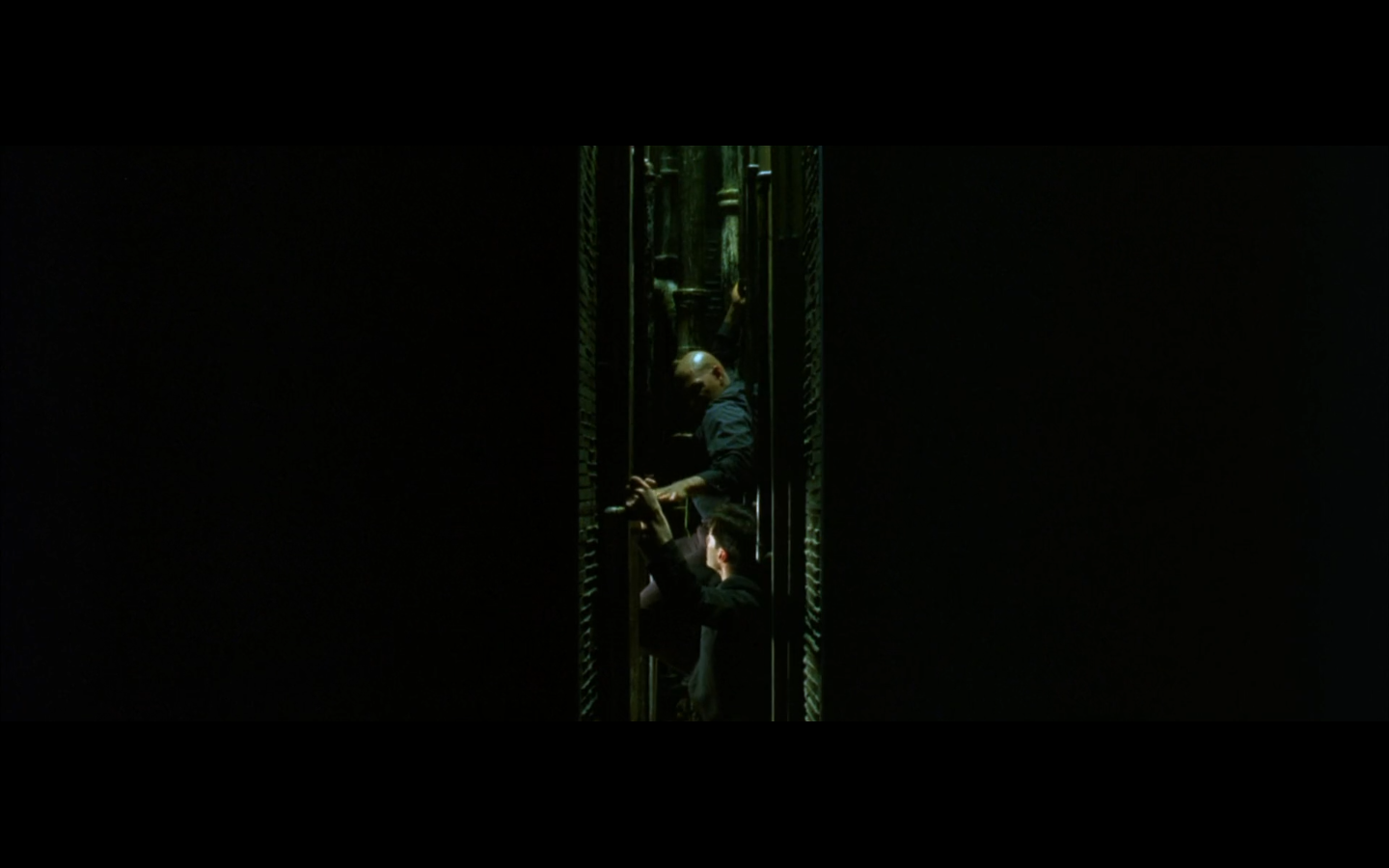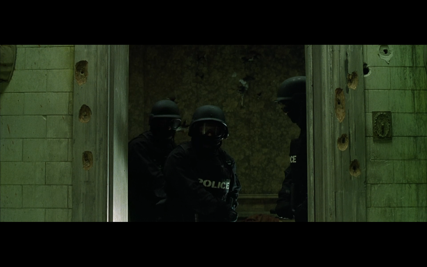 P.S. At the end of this shot, you can see Carrie Anne Moss fumbling with the door handle. They cut away right before badass became awkward.