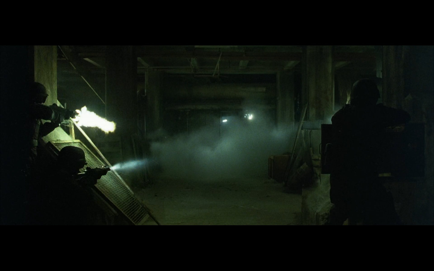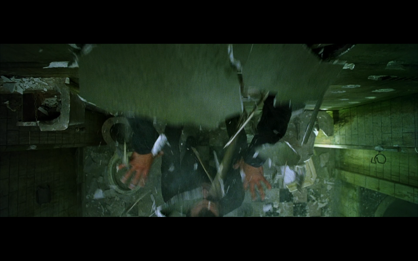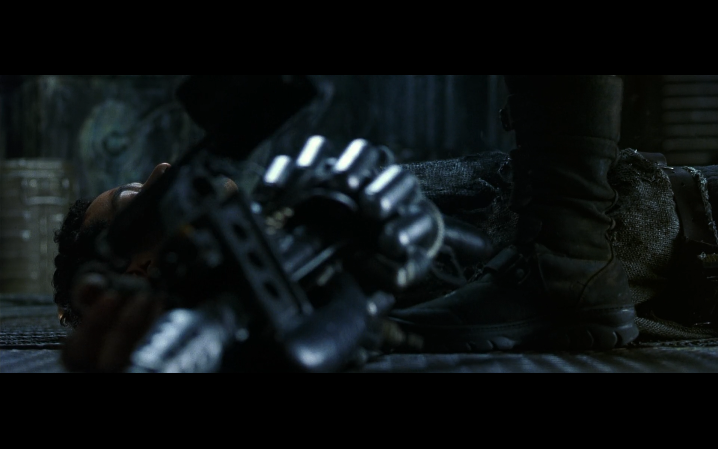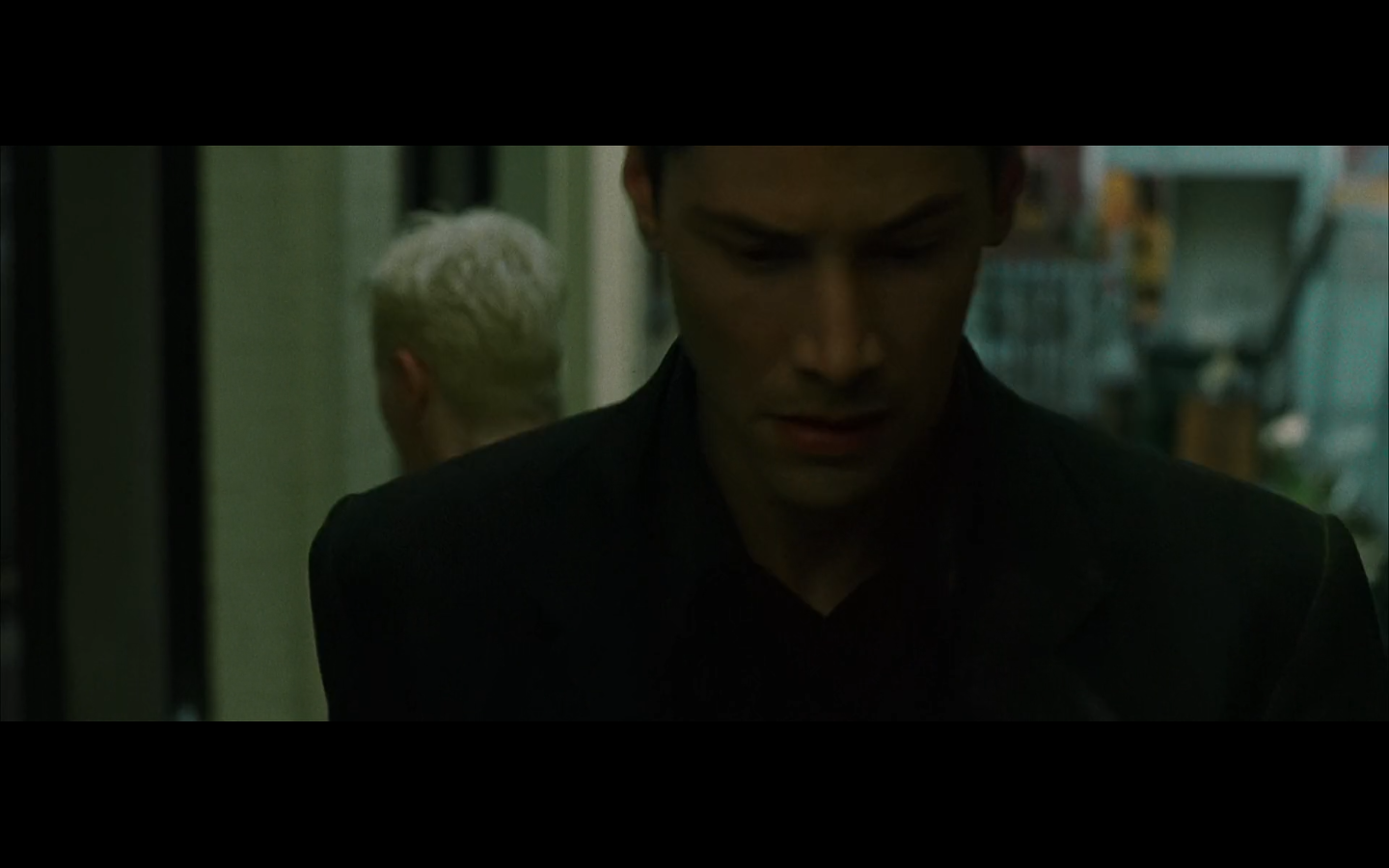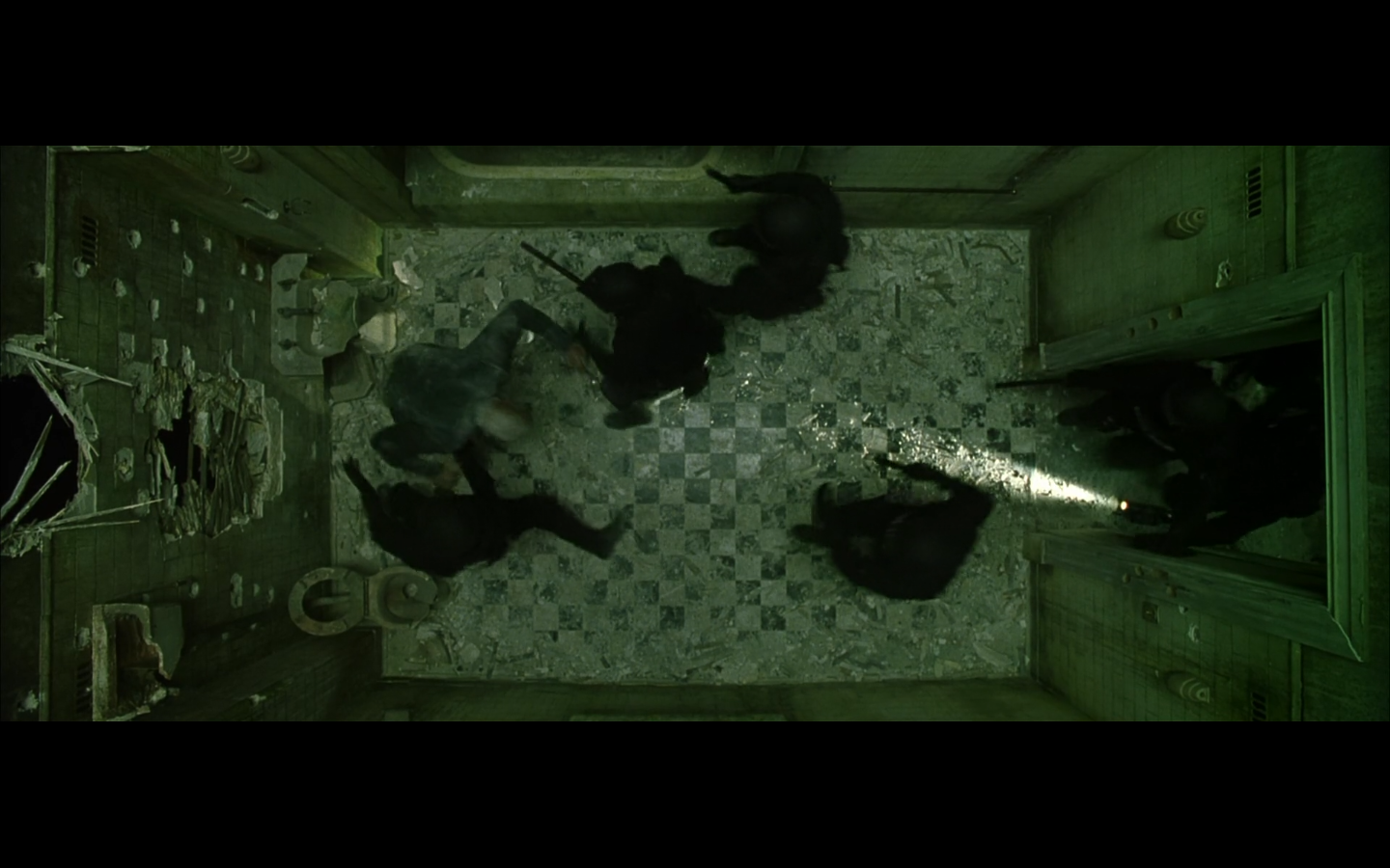 P.S. At the end of this shot, you can see Carrie Anne Moss fumbling with the door handle. They cut away right before badass became awkward.