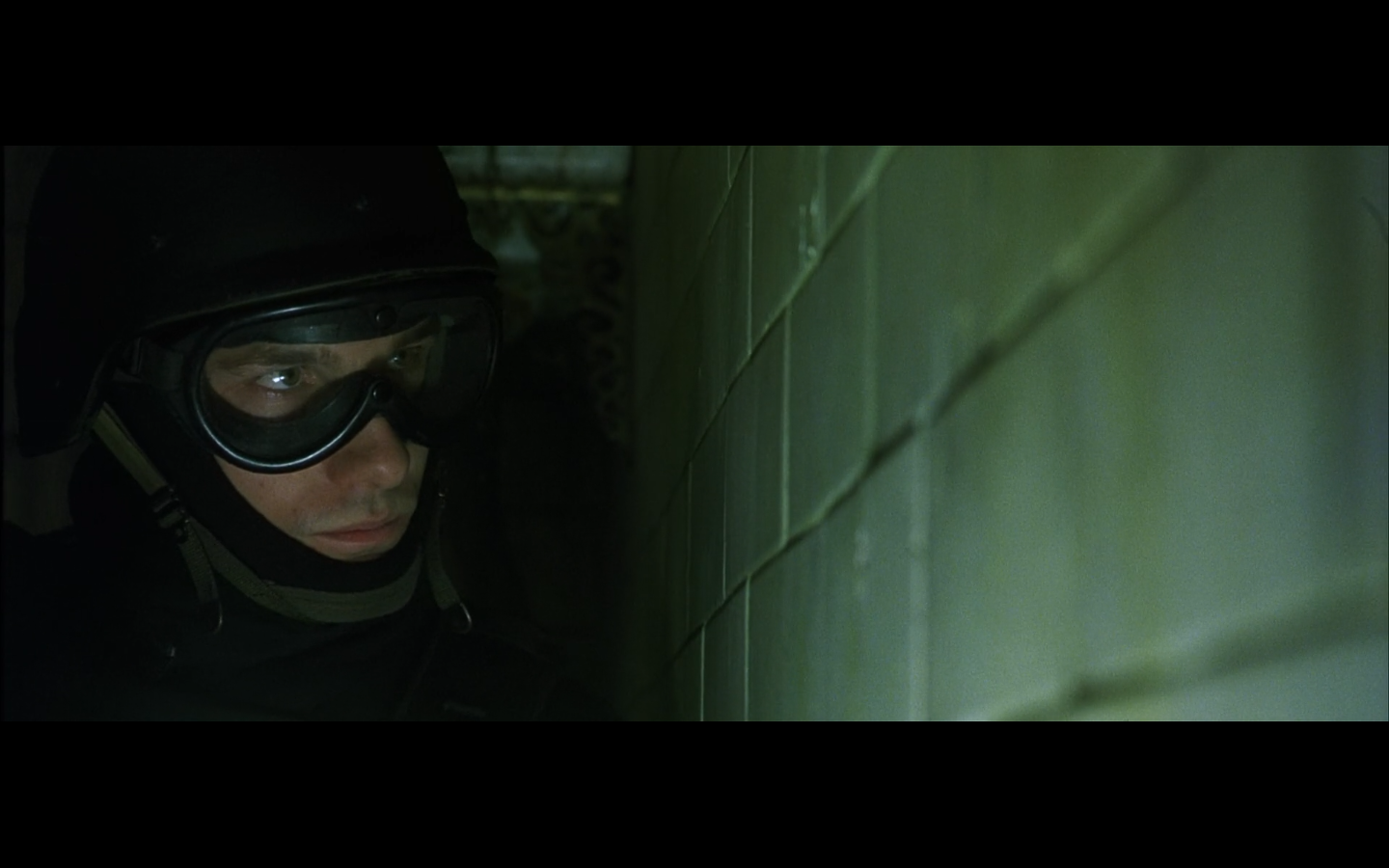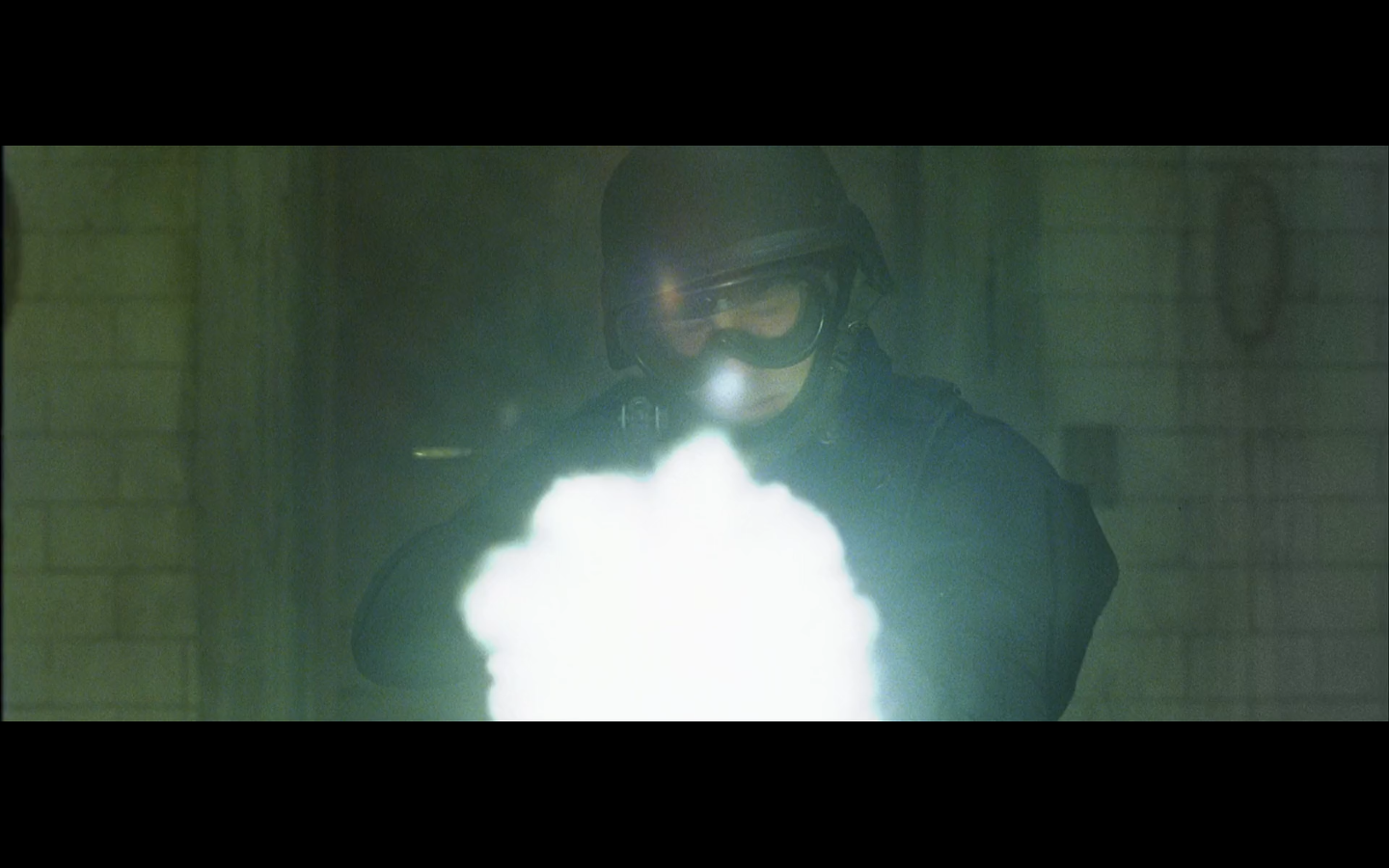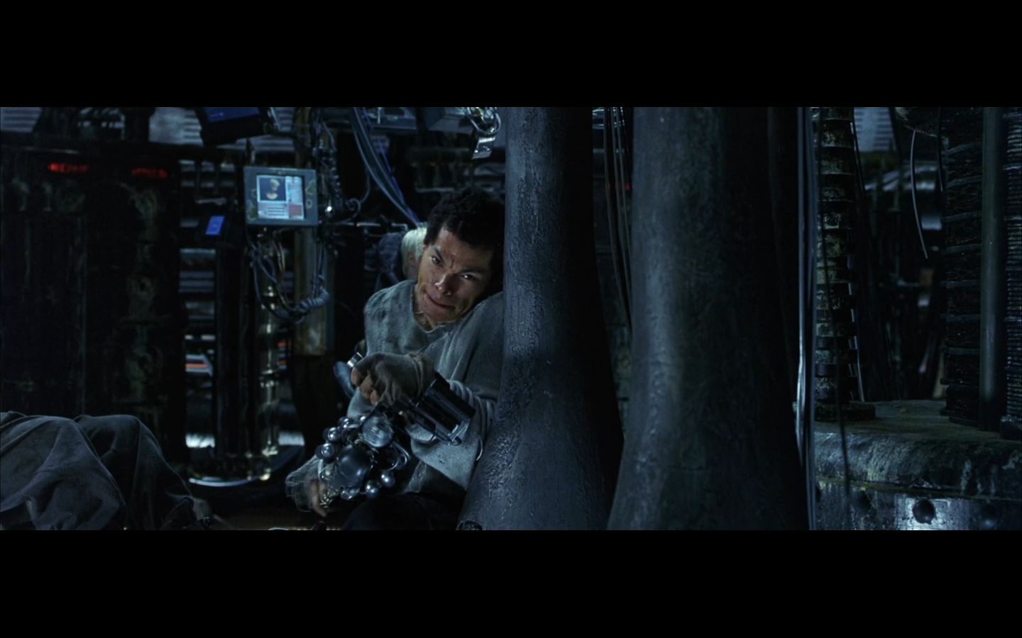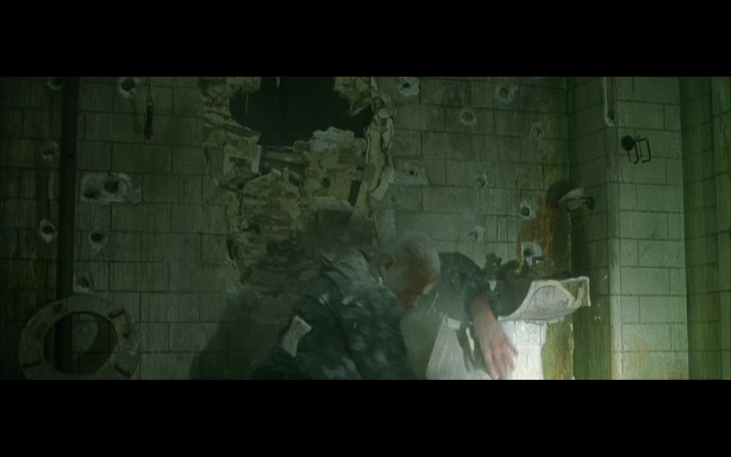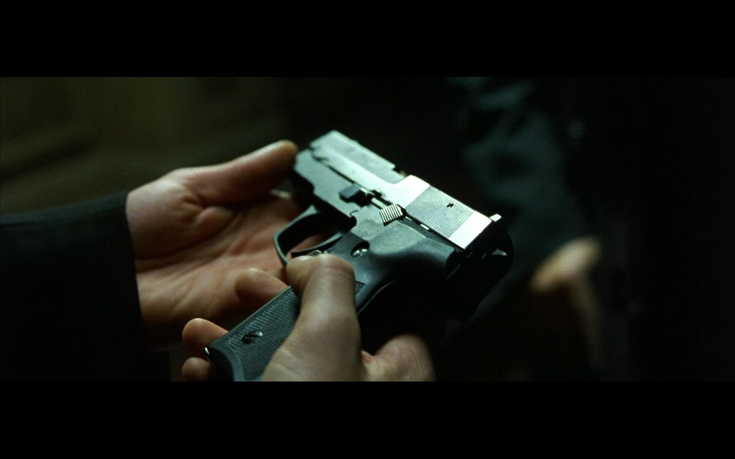 P.S. At the end of this shot, you can see Carrie Anne Moss fumbling with the door handle. They cut away right before badass became awkward.