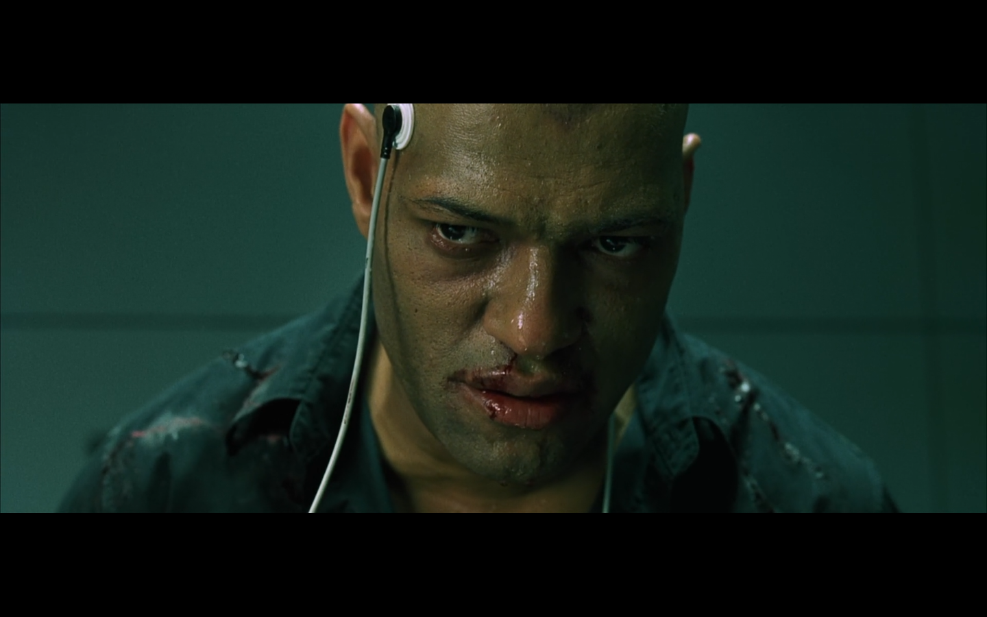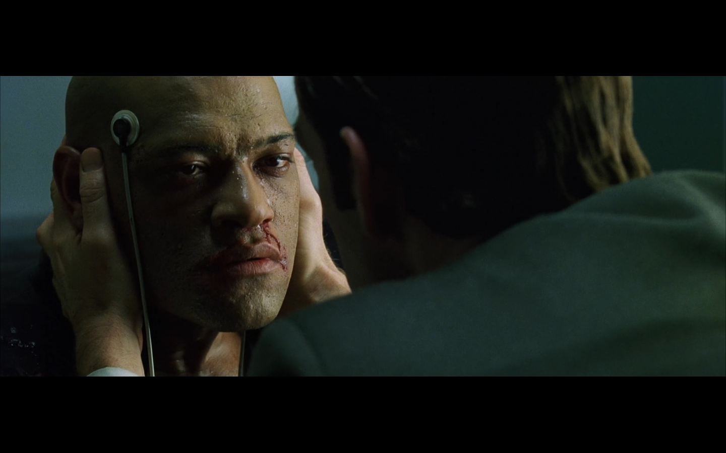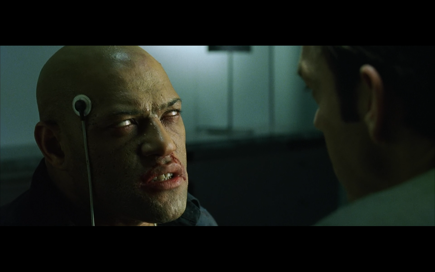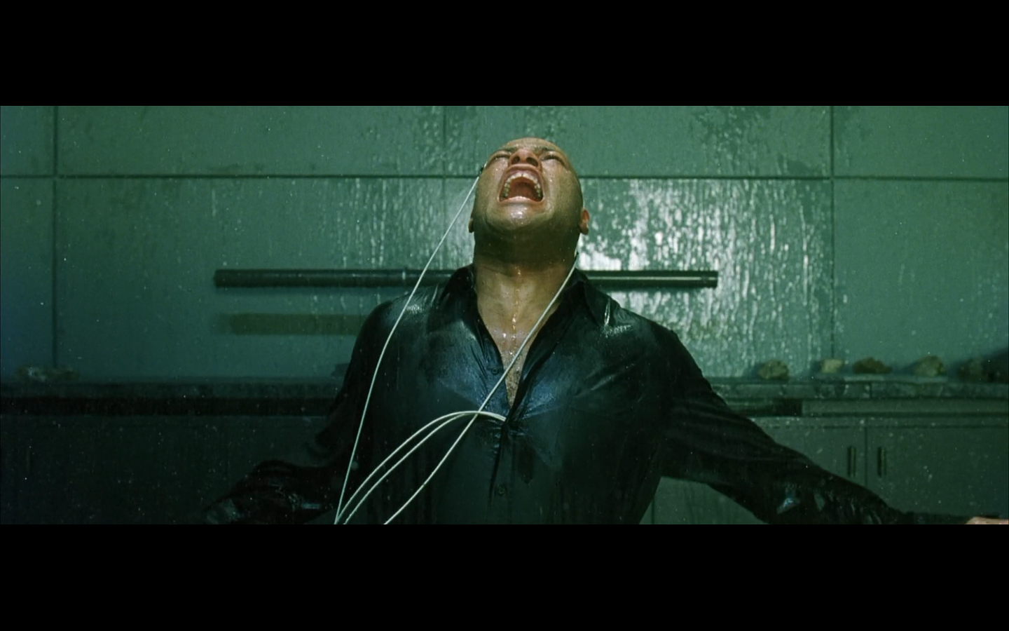 These scenes are probably my favorite in the franchise. Morpheus sitting there silently and Hugo Weaving just talks at him joyously.