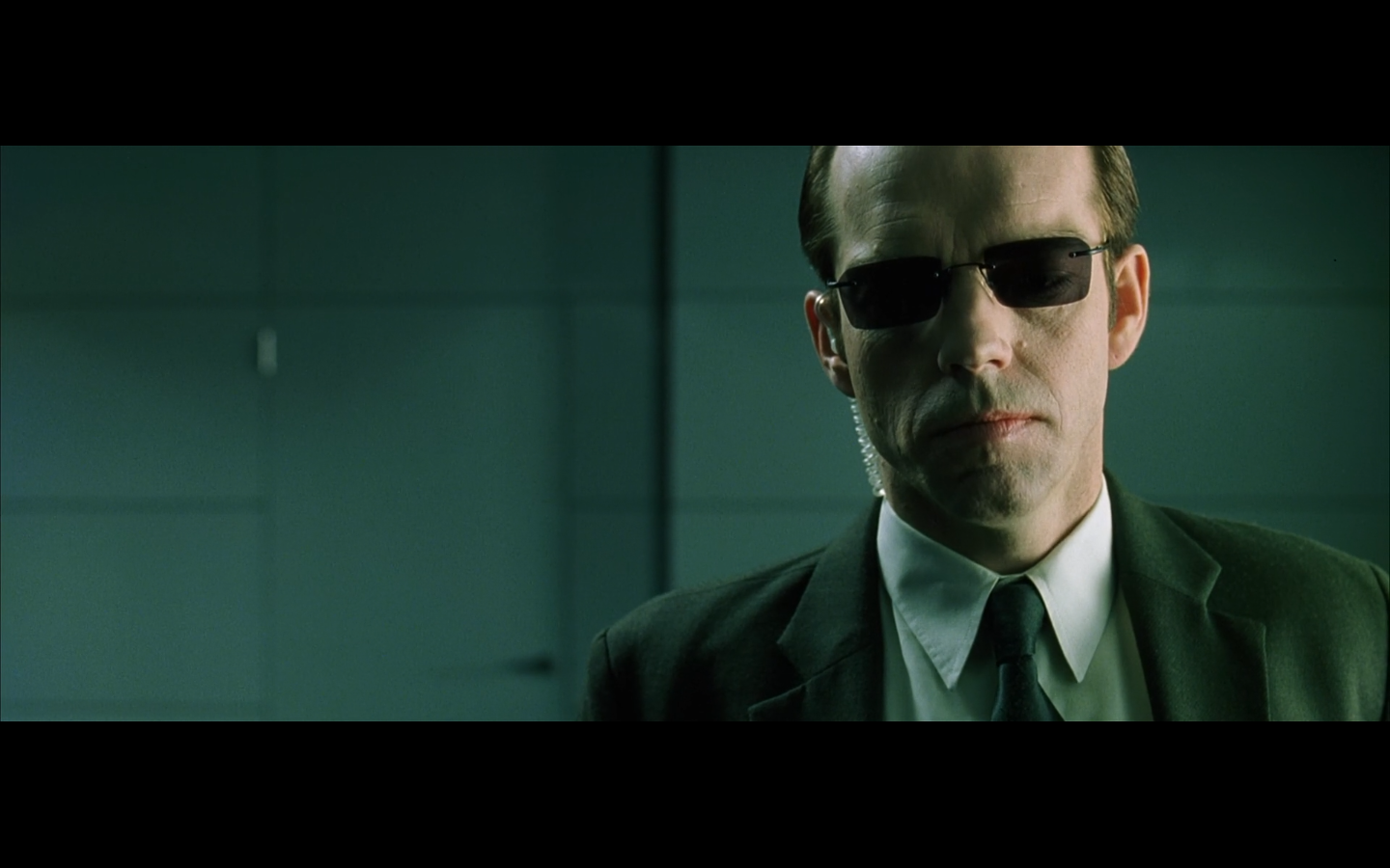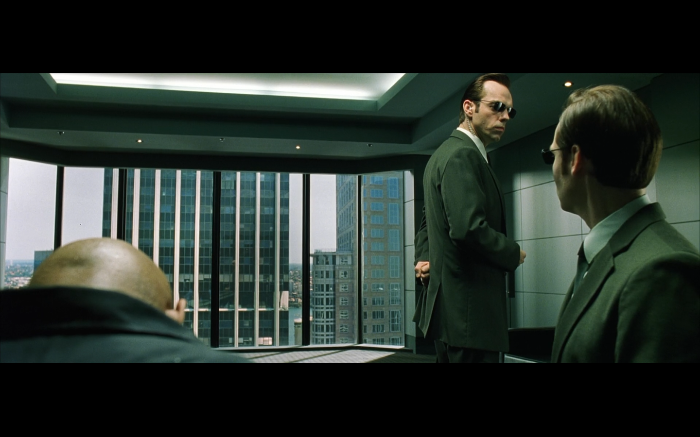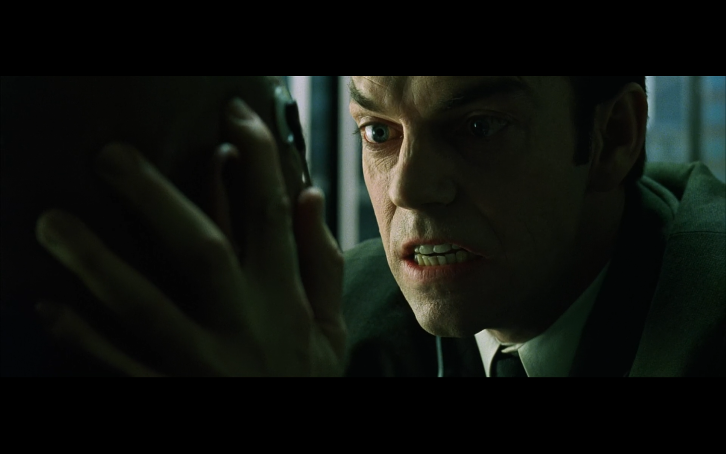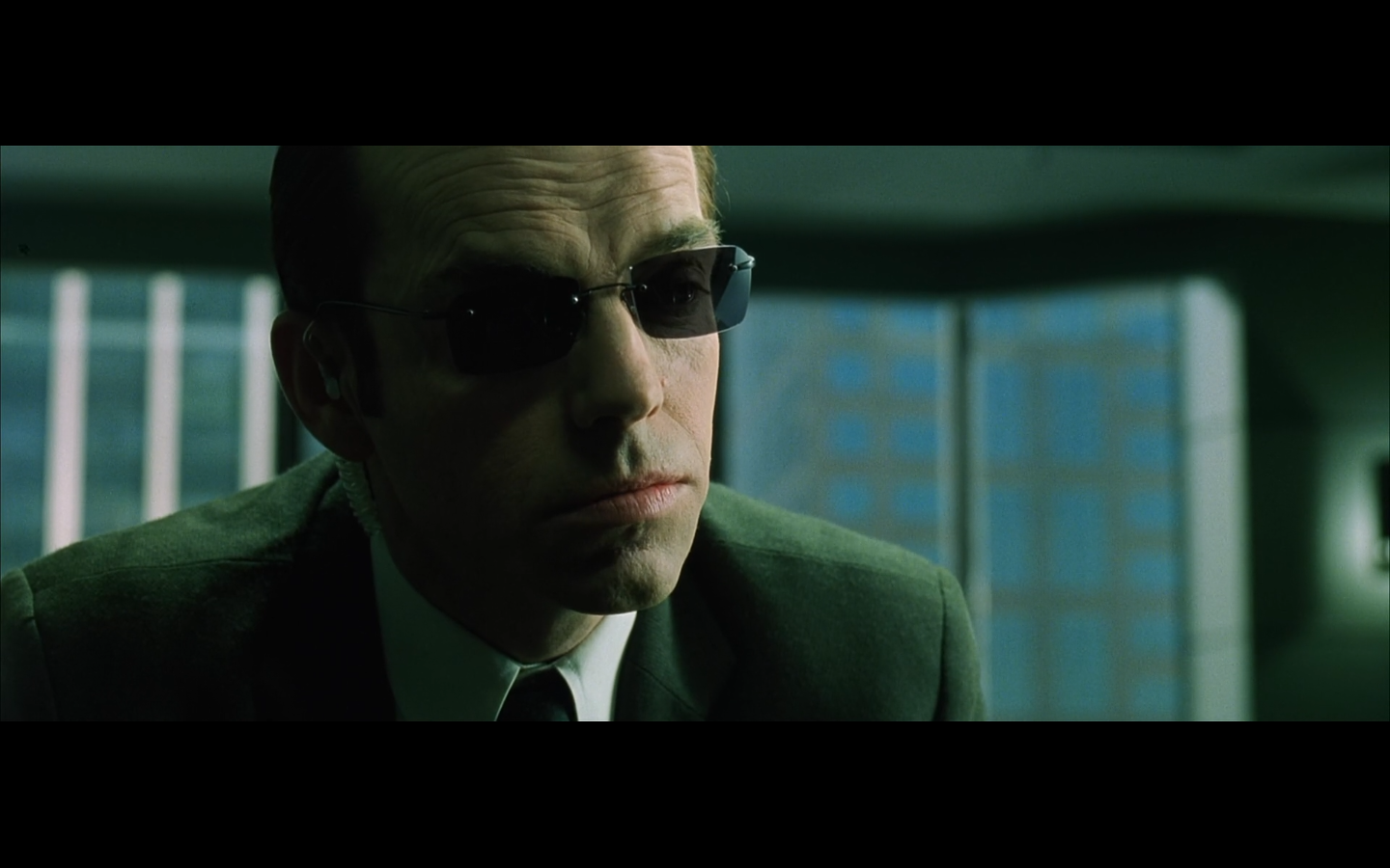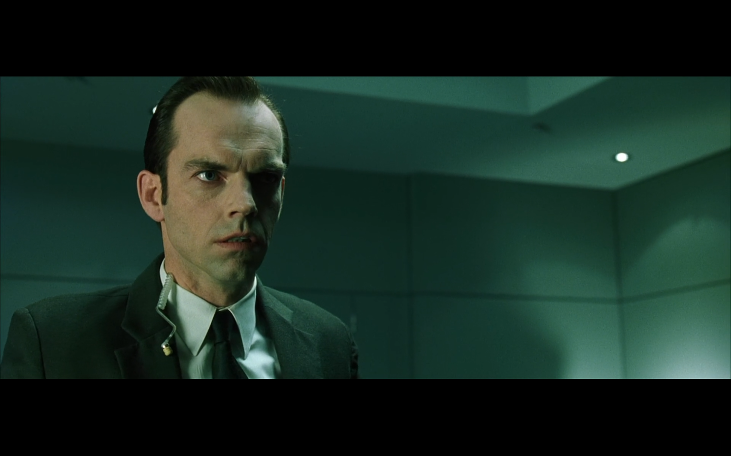 These scenes are probably my favorite in the franchise. Morpheus sitting there silently and Hugo Weaving just talks at him joyously.
