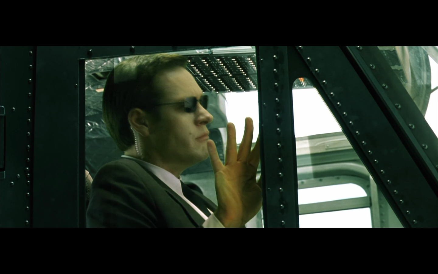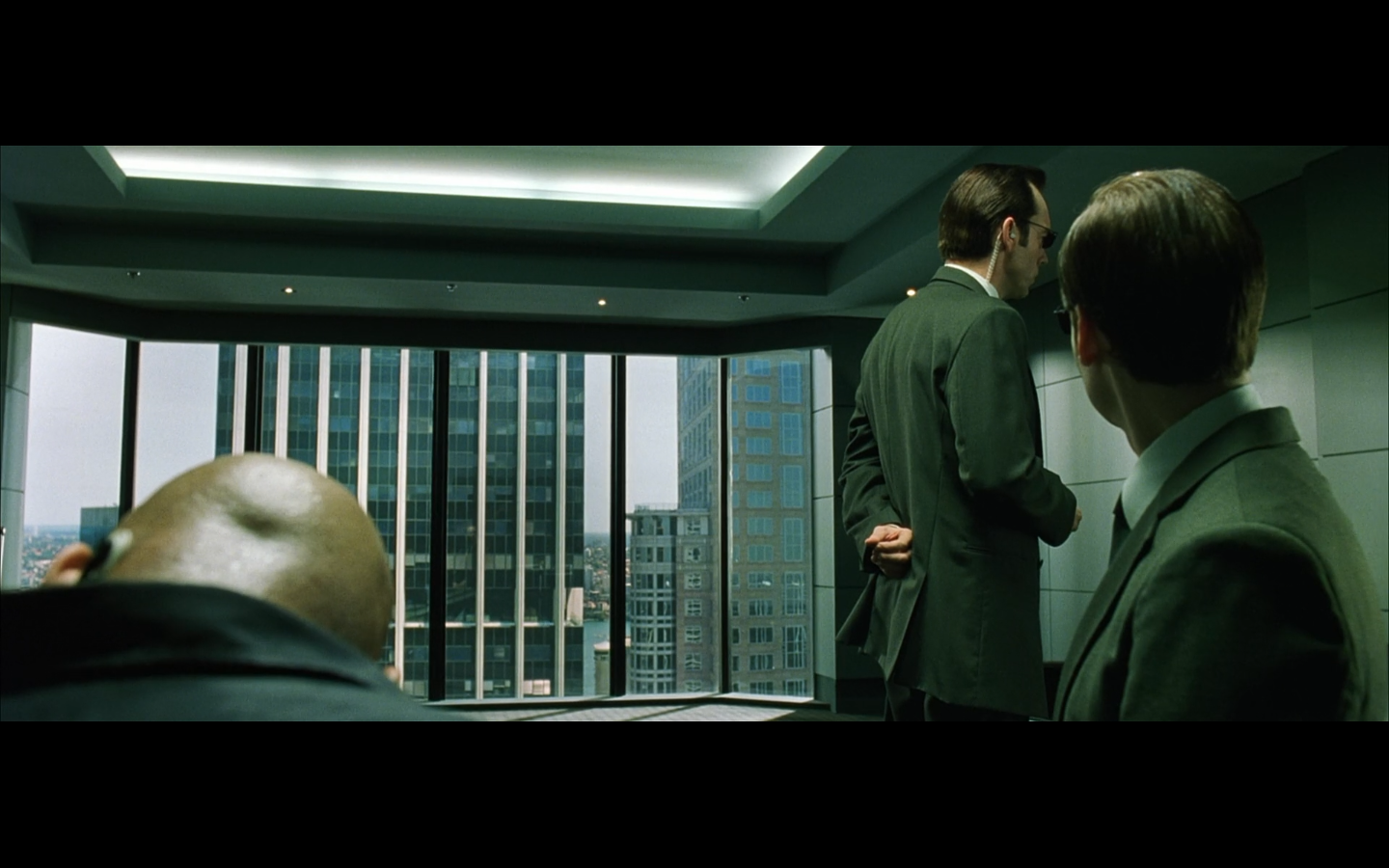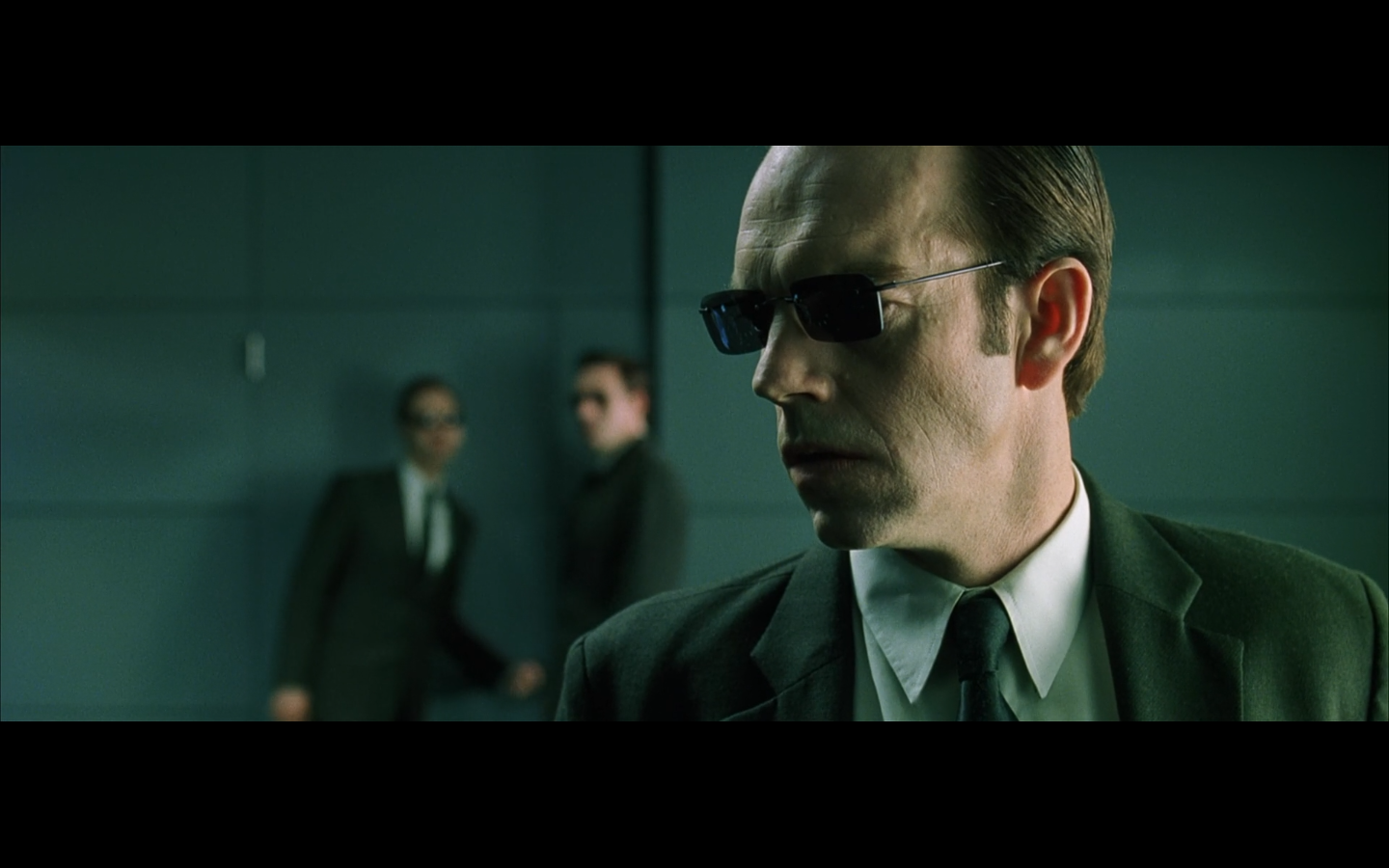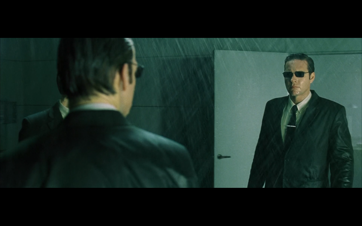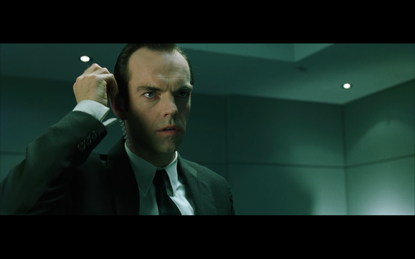 These scenes are probably my favorite in the franchise. Morpheus sitting there silently and Hugo Weaving just talks at him joyously.