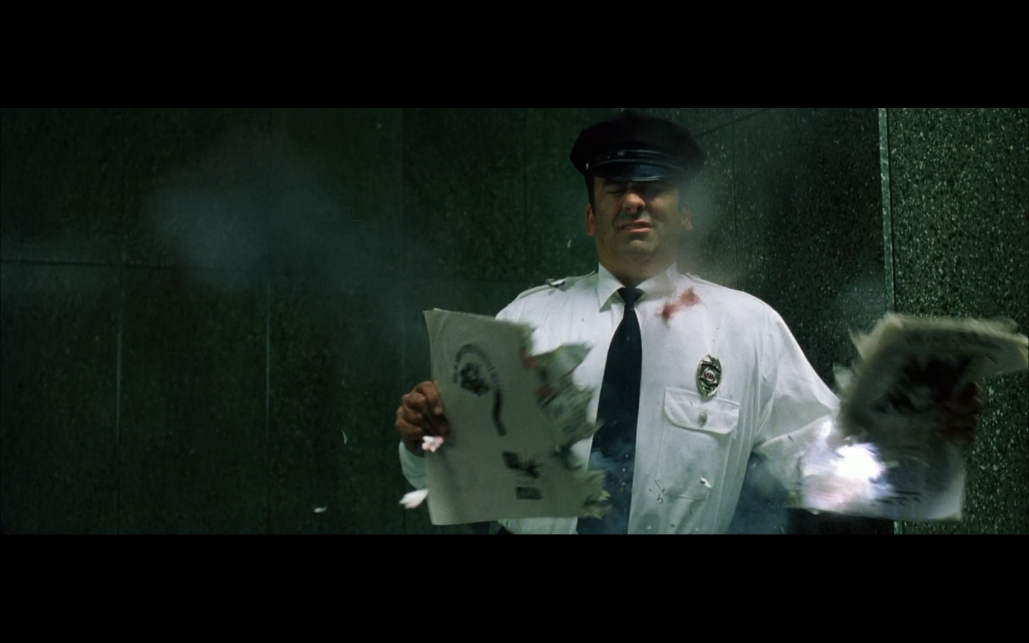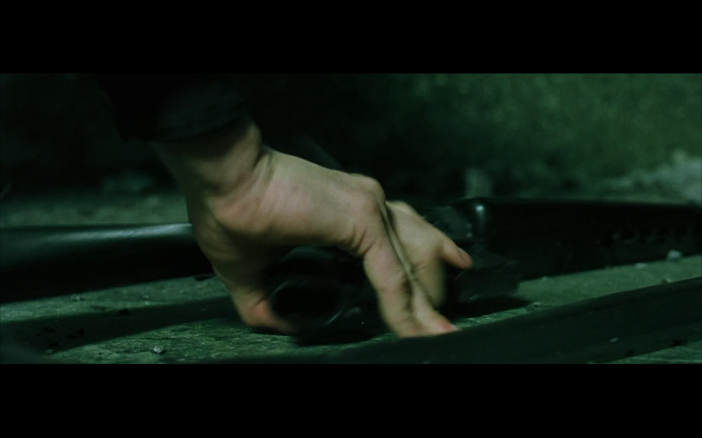 Bam. Favorite shot in the film. To me, no shot is more memorable than this one. This is 1a for the shots list for me. There is no better shot in this entire movie.