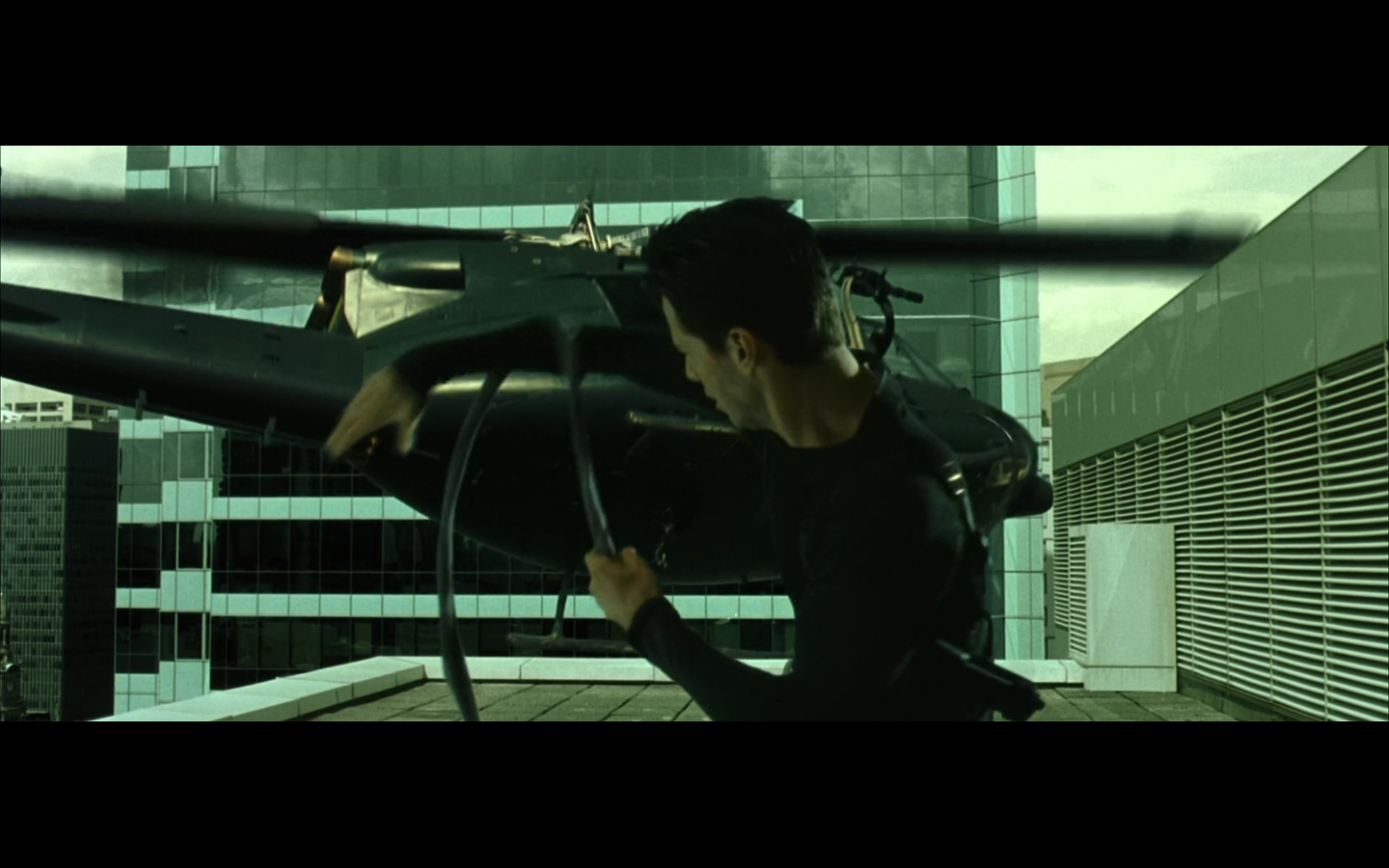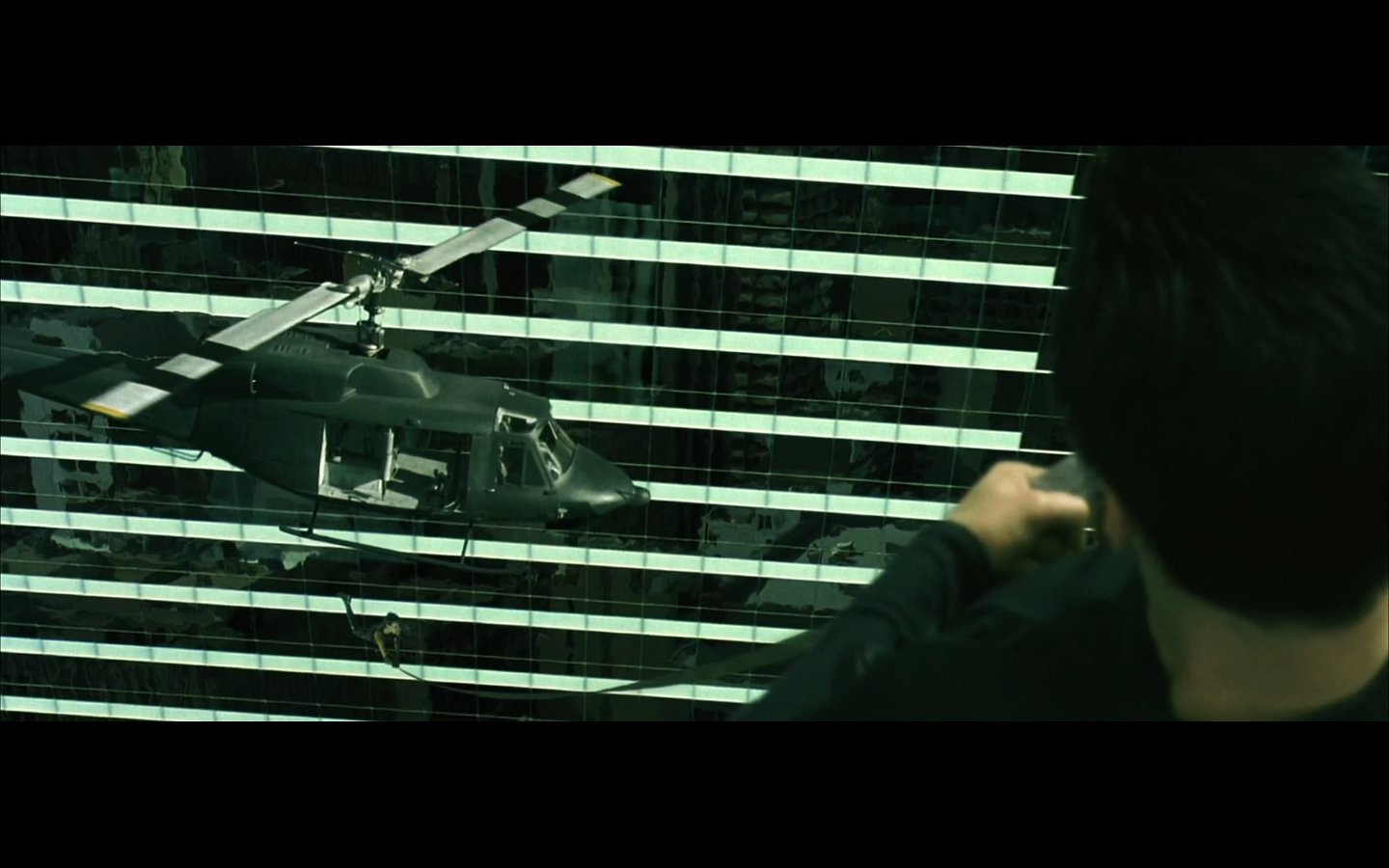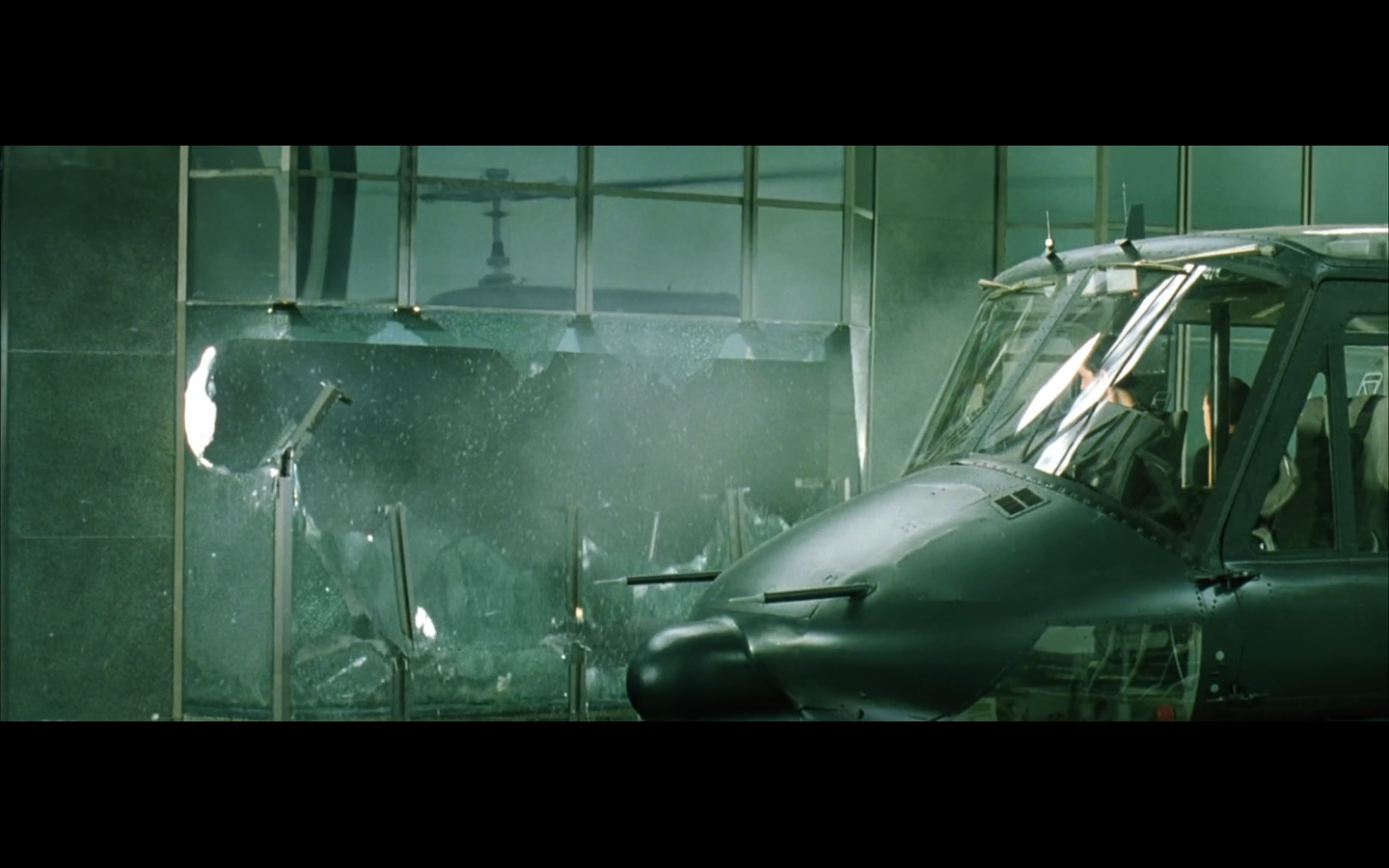 That’s a crazy fast movement. He twirled that shit so fast in comparison with the helicopter rotors as it’s going down. And still, no reflection in the building?