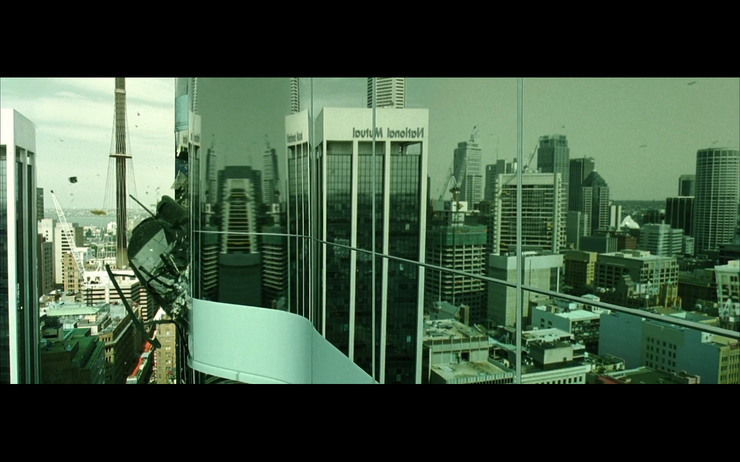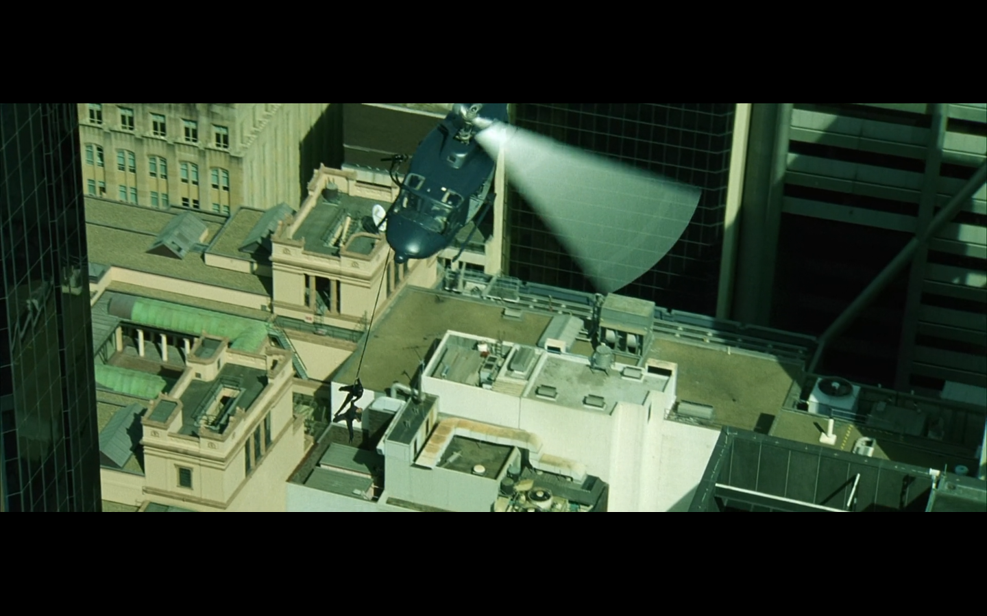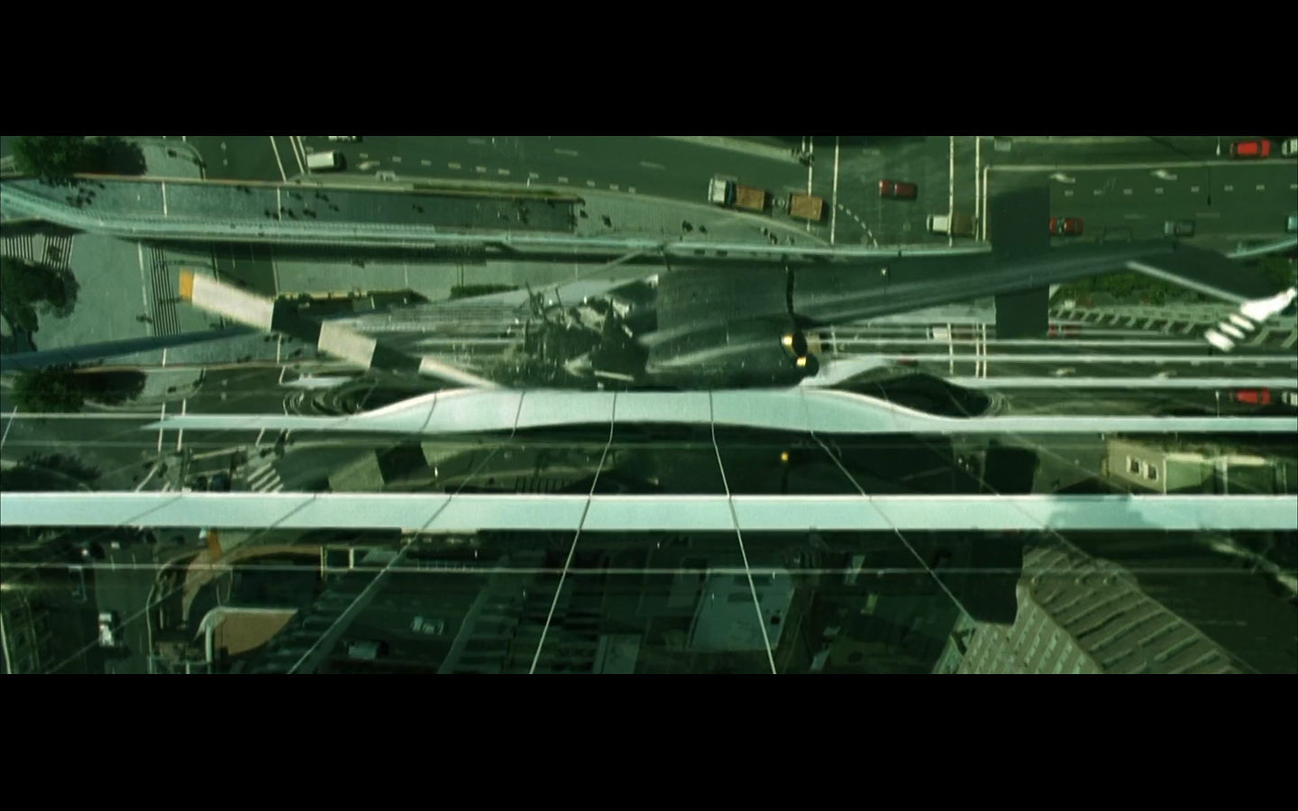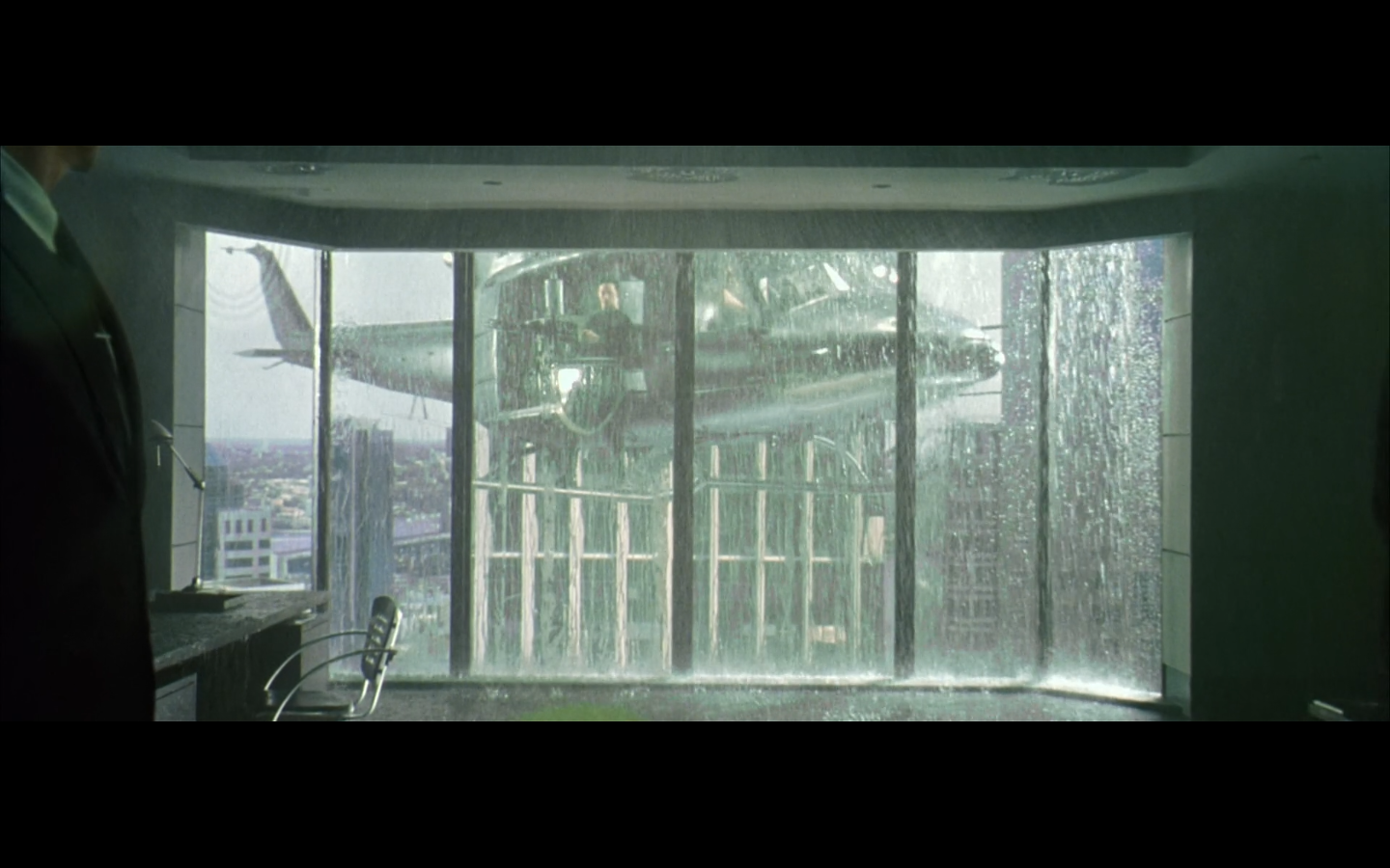That’s a crazy fast movement. He twirled that shit so fast in comparison with the helicopter rotors as it’s going down. And still, no reflection in the building?