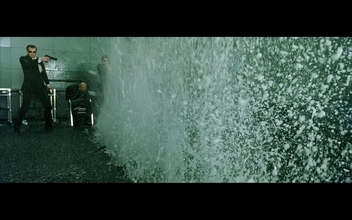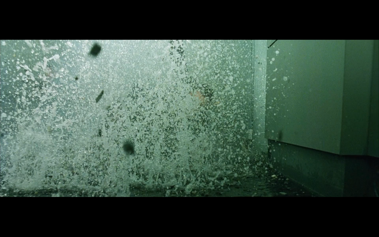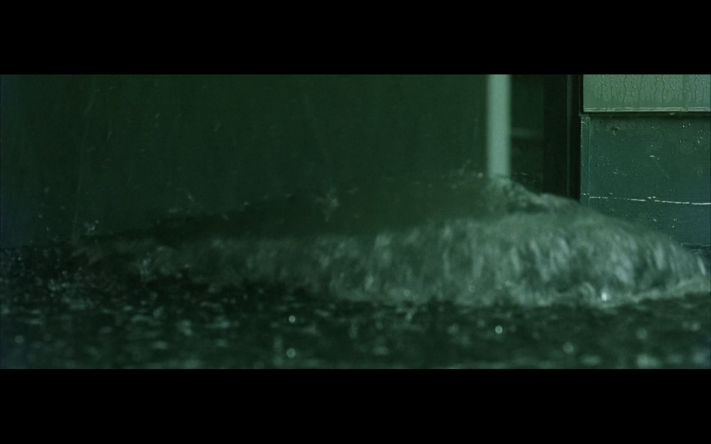 Another great shot. The door opening and pushing all the water, which somehow just accumulated on the floor like that.