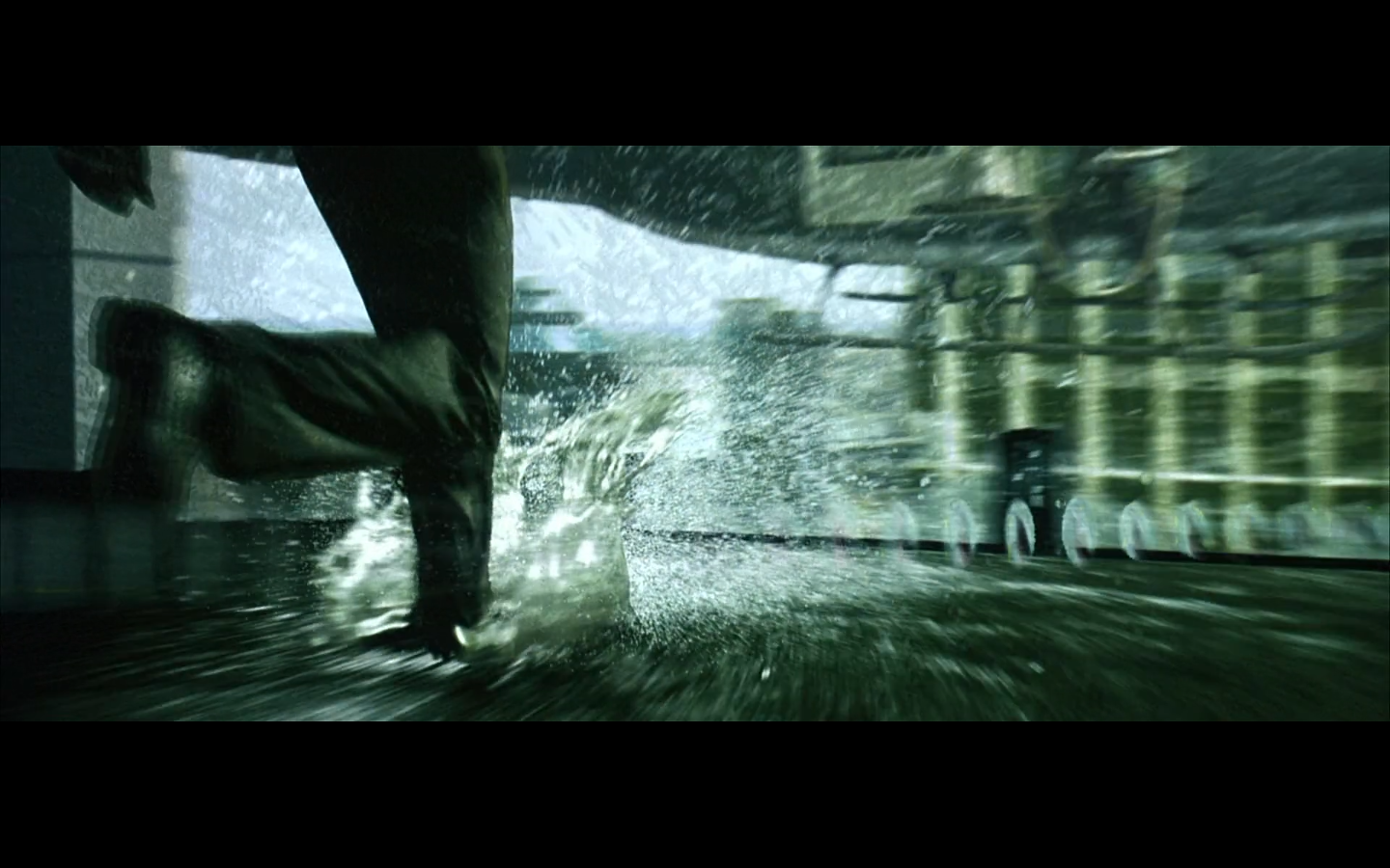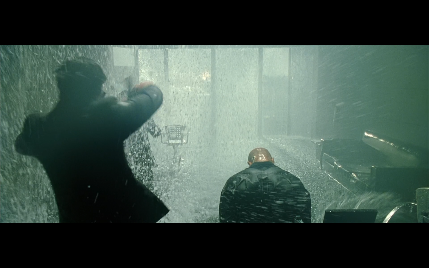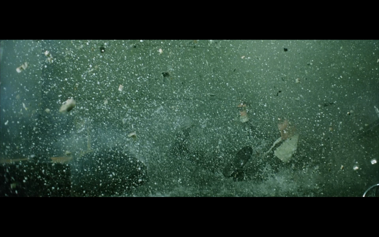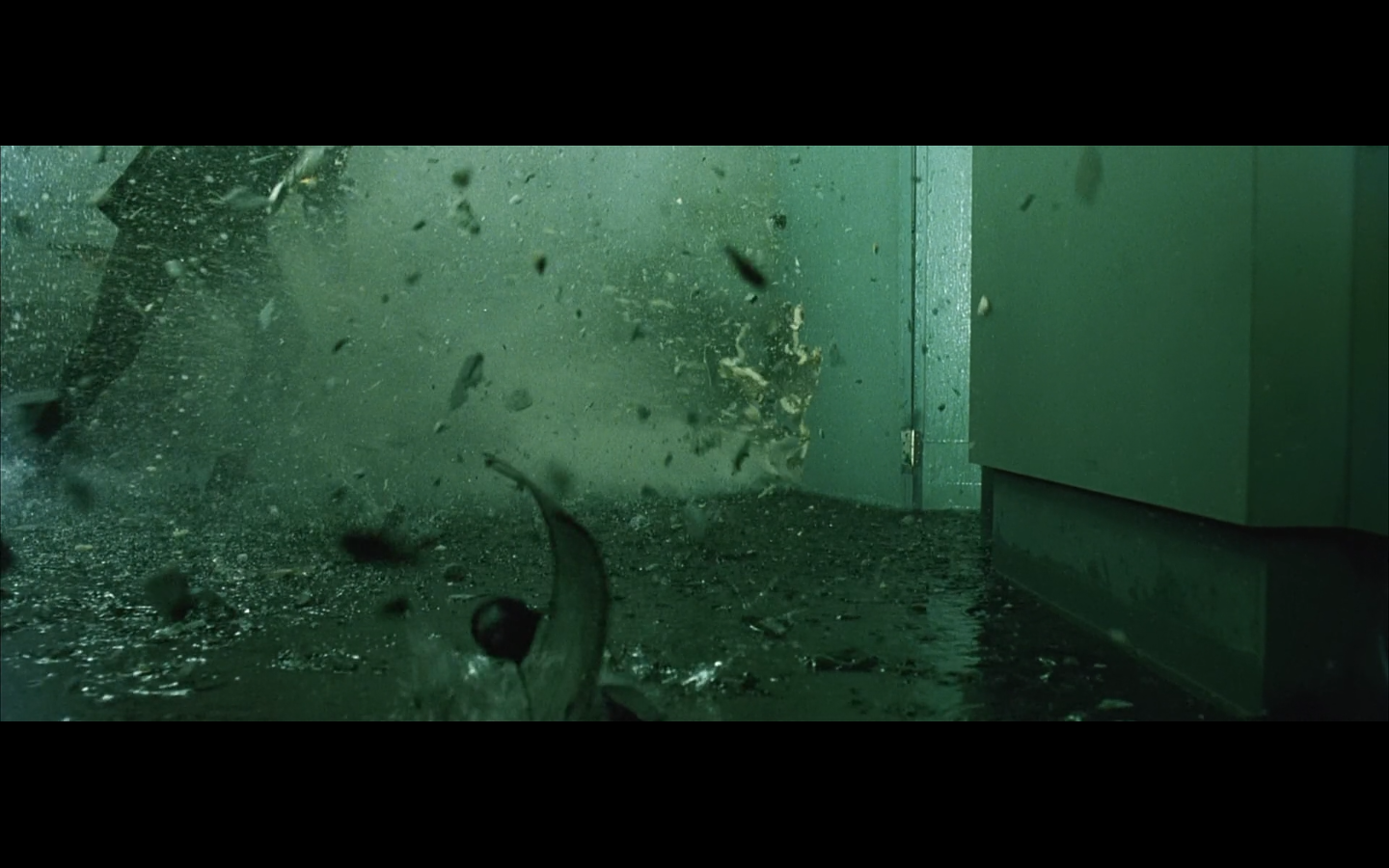 Another great shot. The door opening and pushing all the water, which somehow just accumulated on the floor like that.