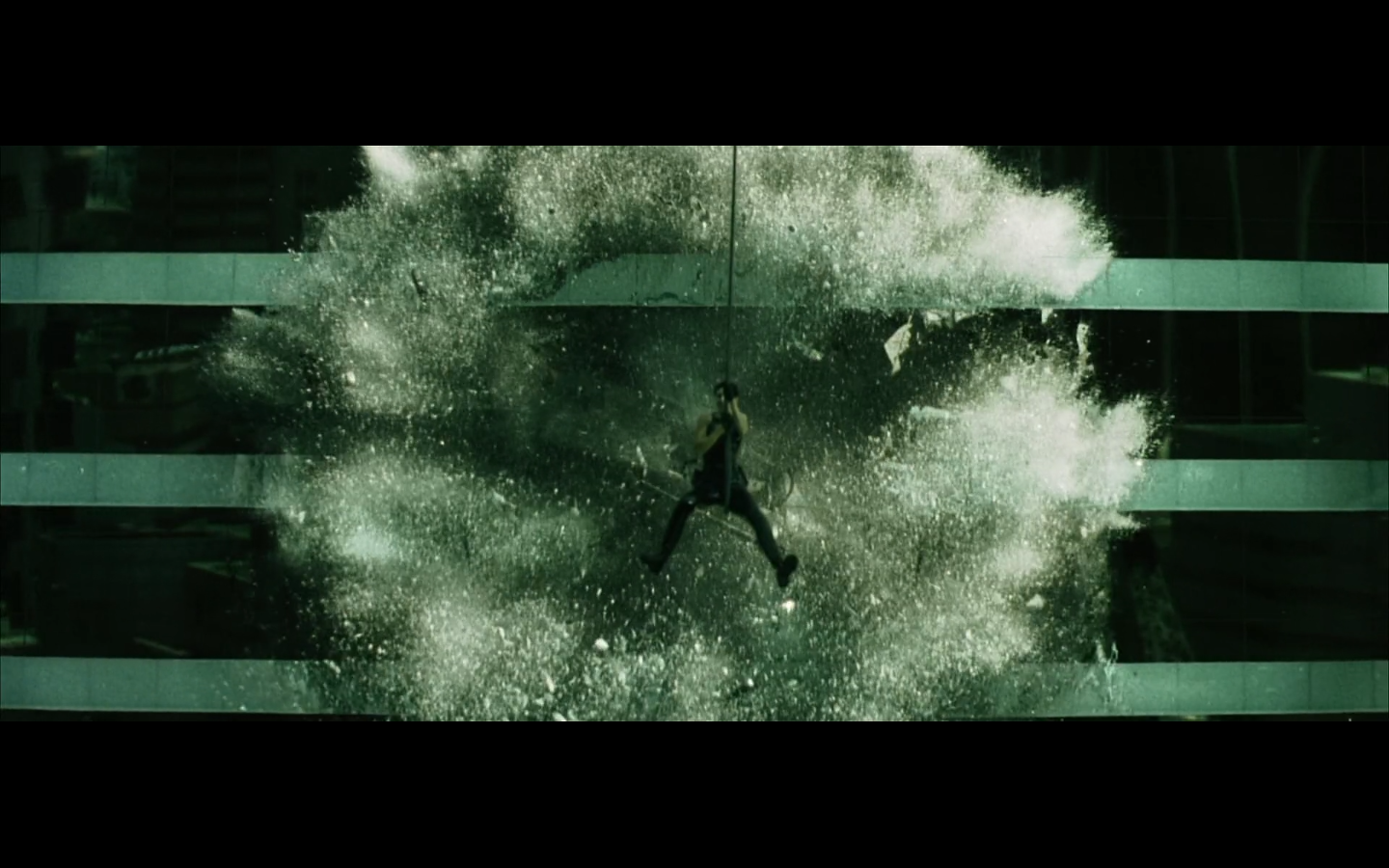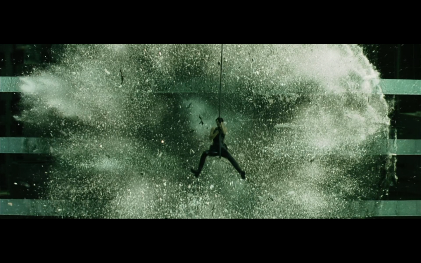 Love this shot. Her coming toward the building and the glass breaking in front of the camera. This is real filmmaking.